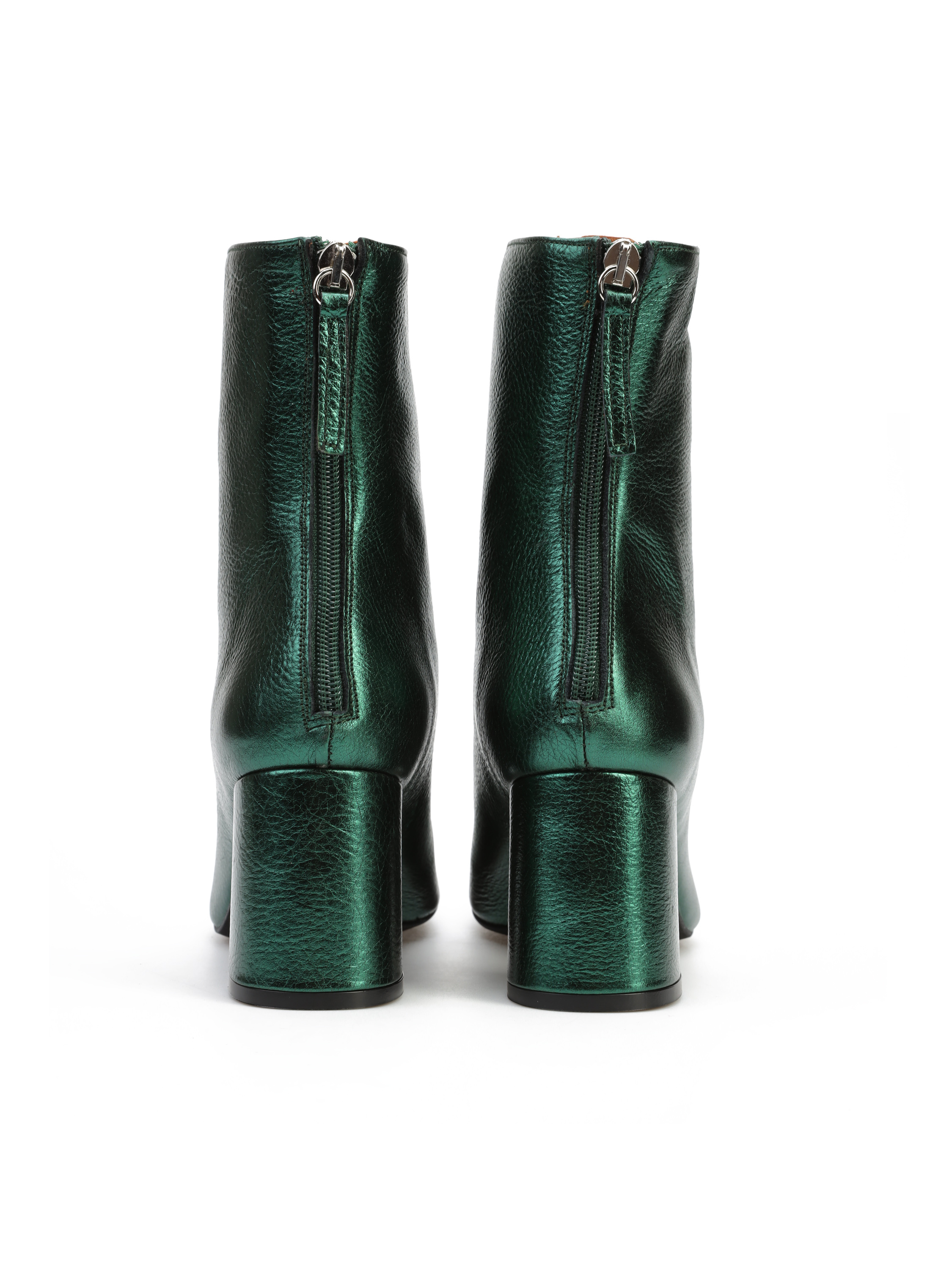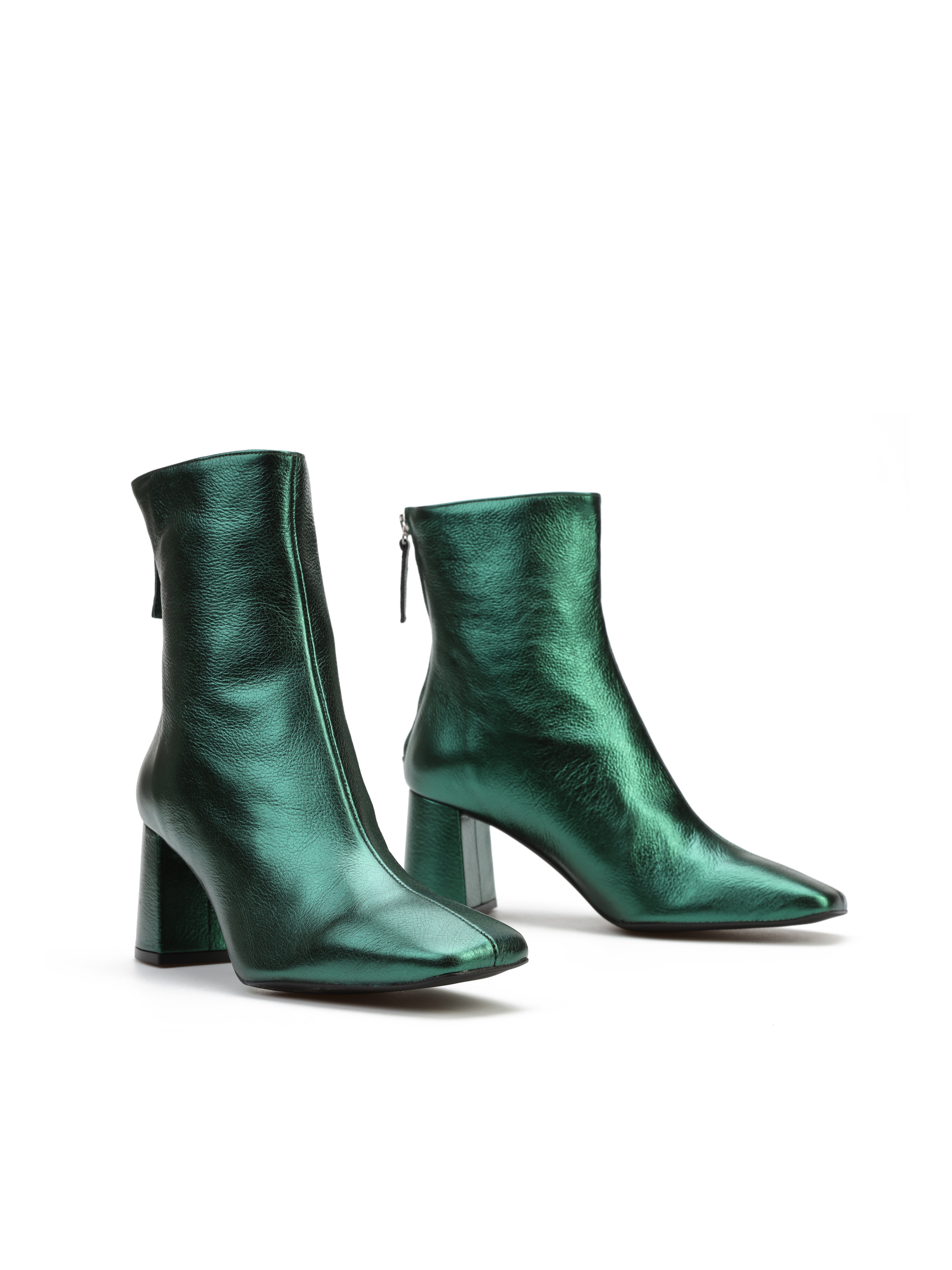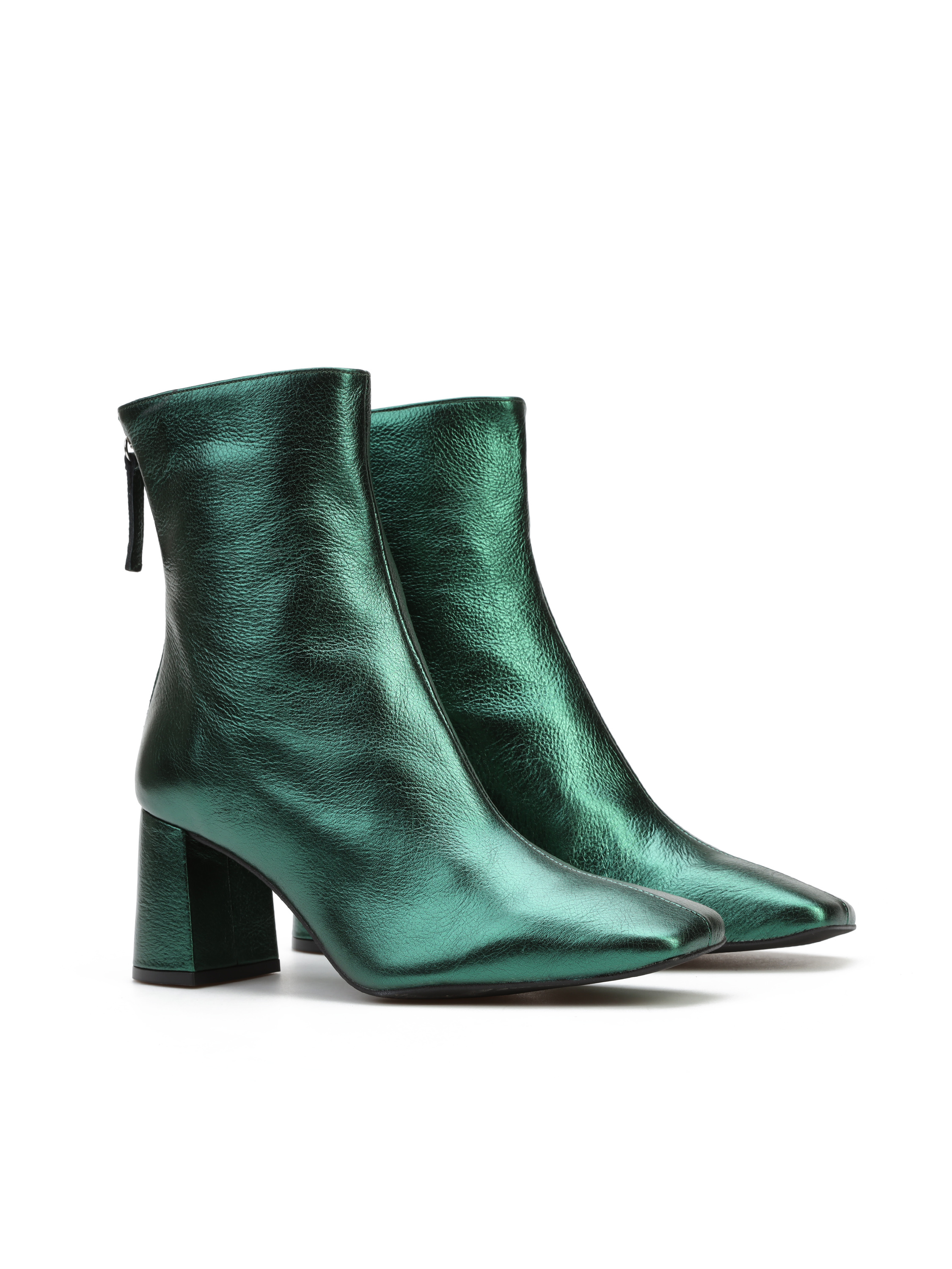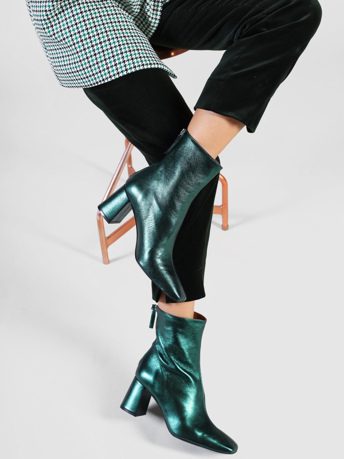 Botki na słupku wykonane z metalizowanej skóry to gorący Trend sezonu. Cholewka za kostkę zapinana jest na zamek błyskwiczny, który ułatwia zakładanie i zdejmowanie obuwia. Model osadzony na wygodnym, stabilnym obcasie na słupku. Dostępny w trzech modnych kolorach.