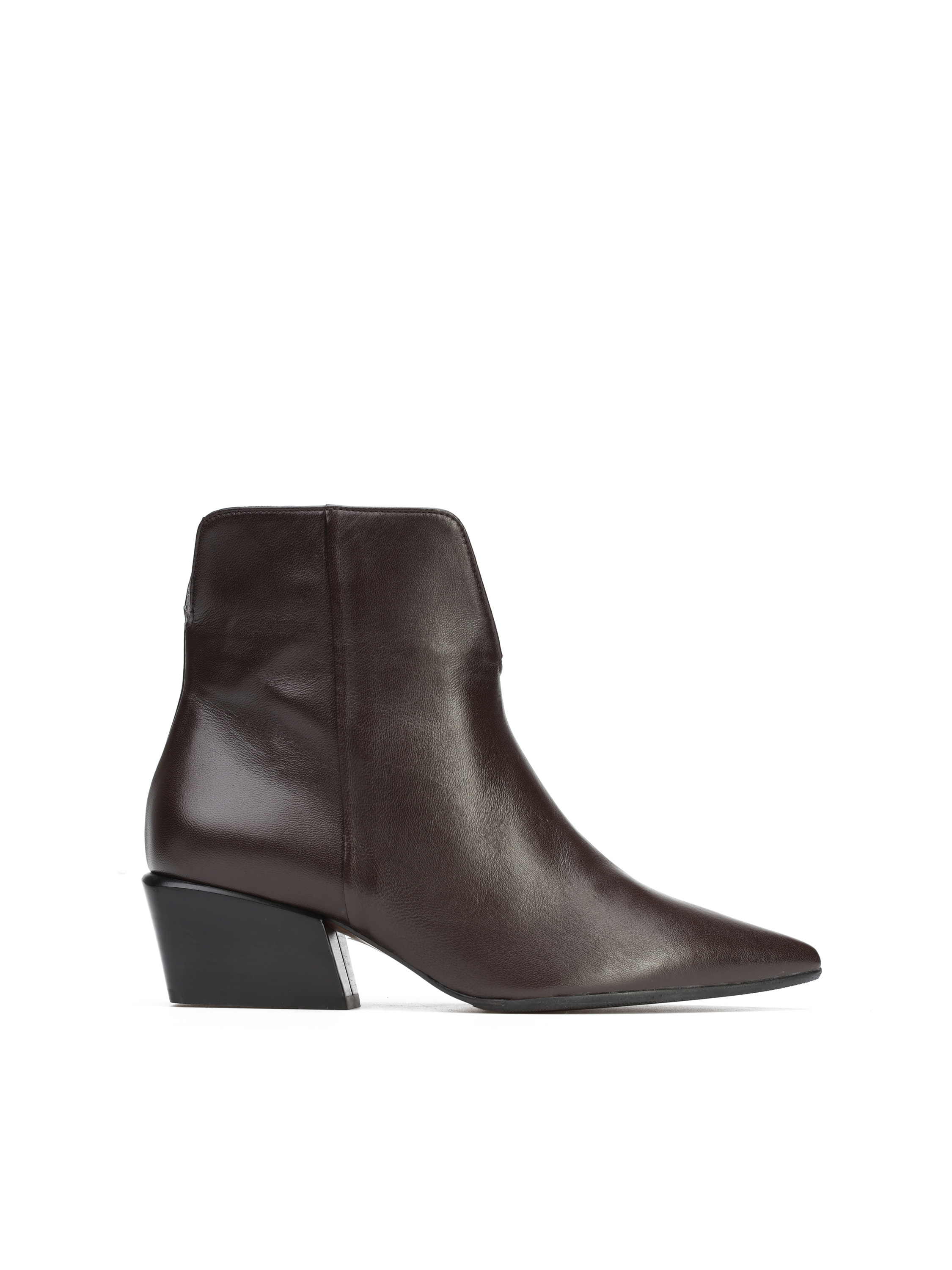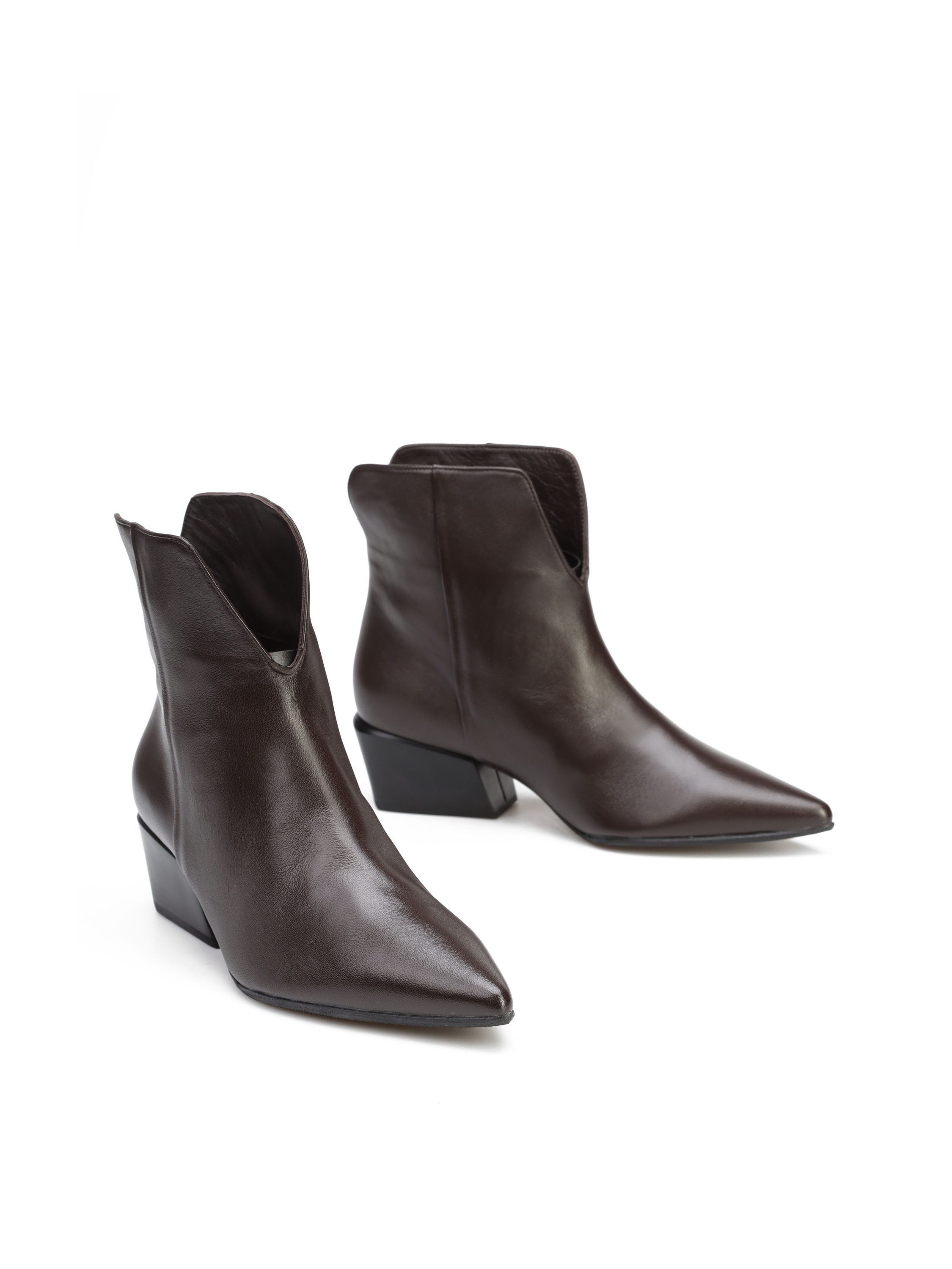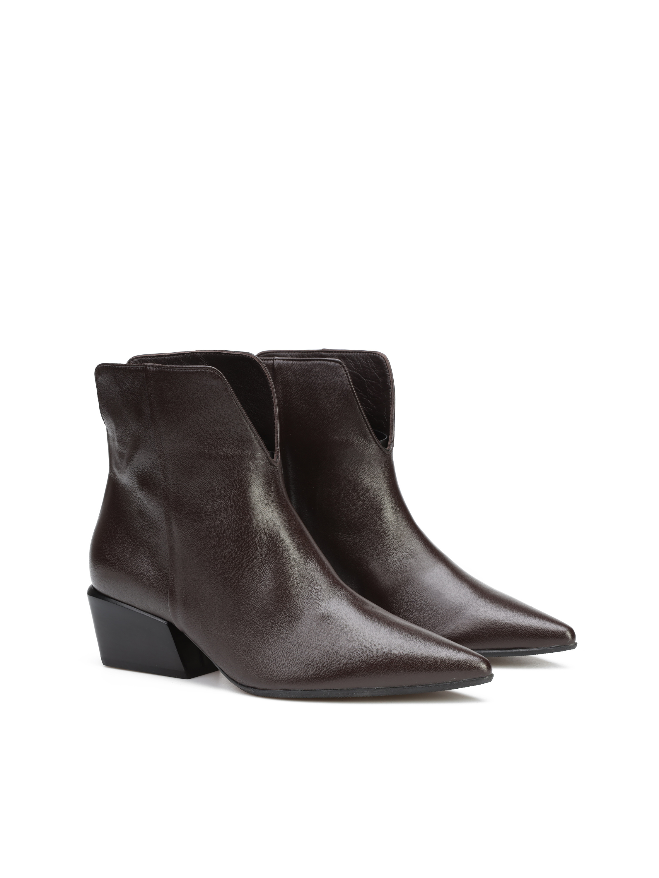 Botki na niskim obcasie to must have modnej garderoby kobiety. Profilowana, wsuwana cholewka za kostkę wykonana jest z naturalnej skóry. Model w szpic na niskim obcasie na słupku. Dostępny w kilku modnych kolorach do wyboru.