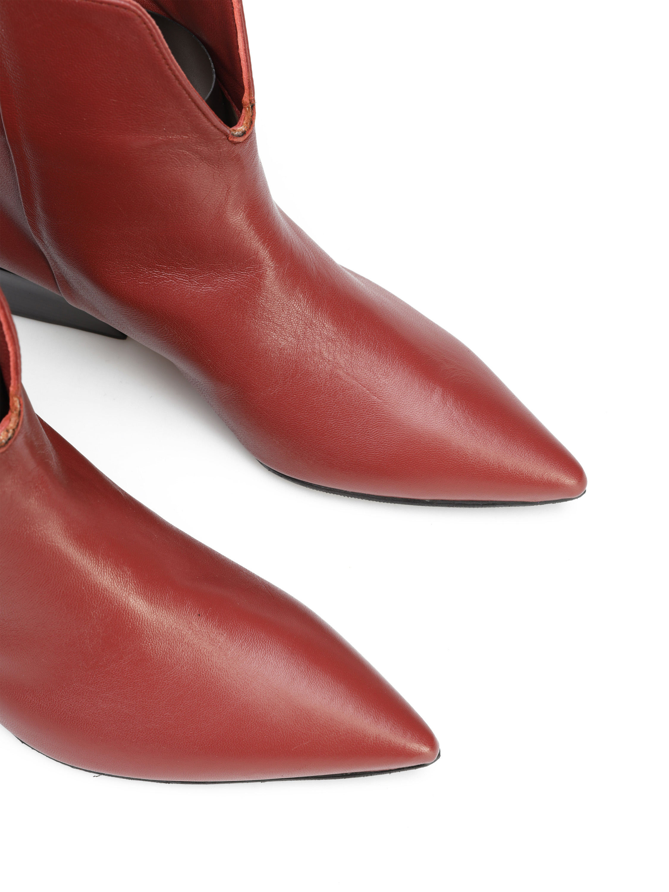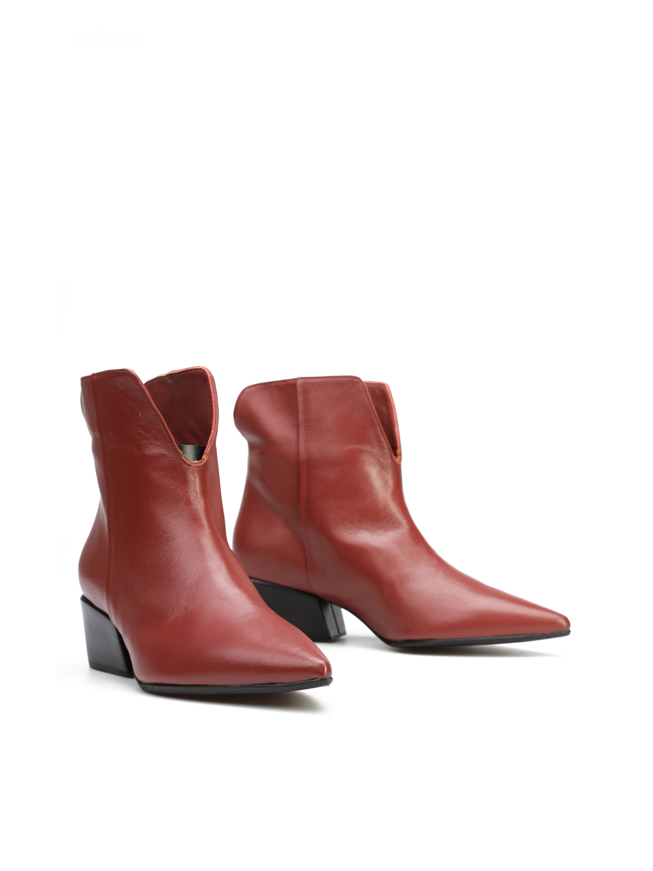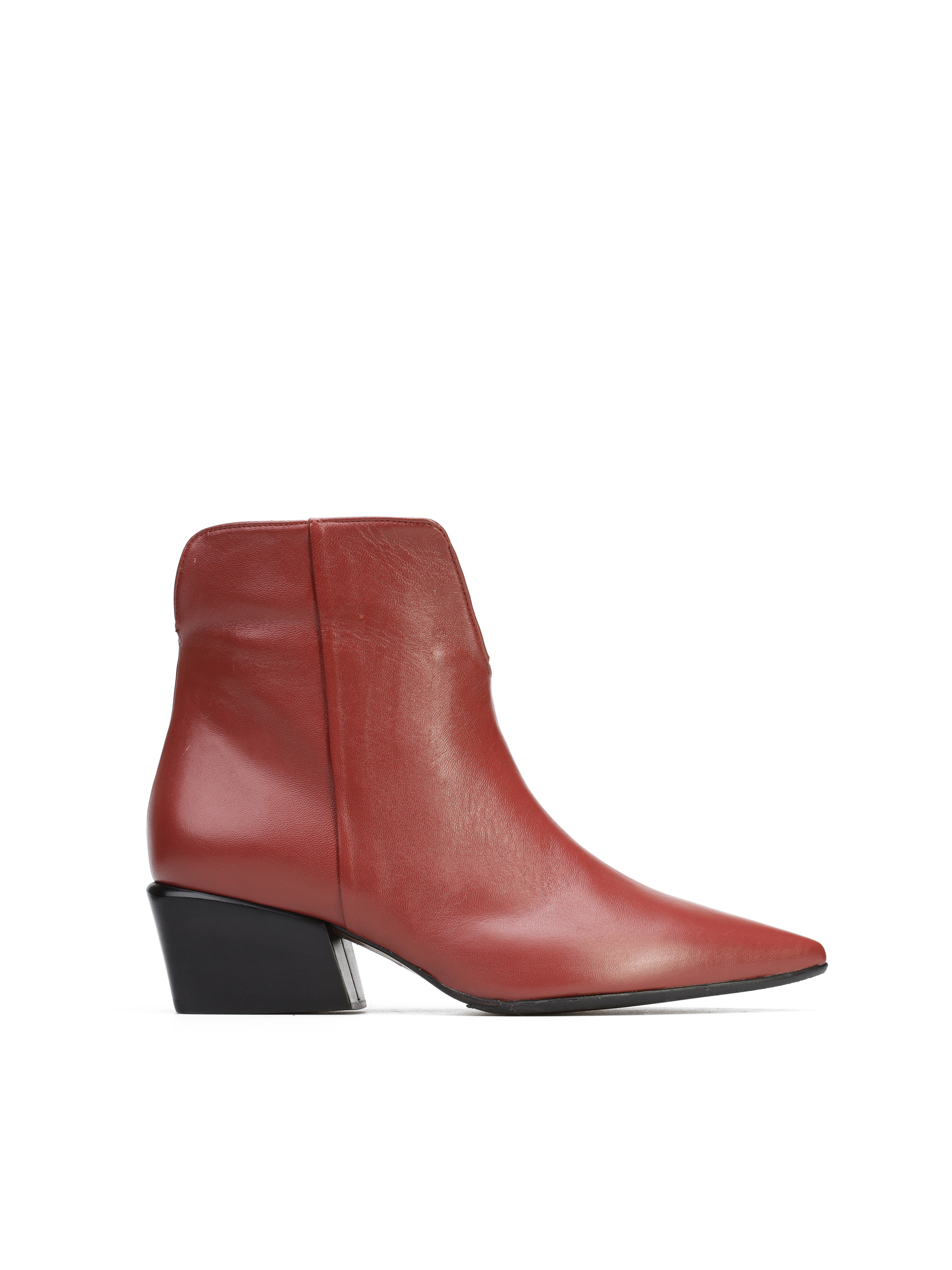 Botki na niskim obcasie to must have modnej garderoby kobiety. Profilowana, wsuwana cholewka za kostkę wykonana jest z naturalnej skóry. Model w szpic na niskim obcasie na słupku. Dostępny w kilku modnych kolorach do wyboru.