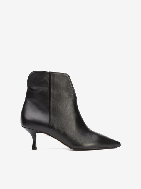 Botki na niskim obcasie to minimalistczny model dla eleganckich kobiet. Wsuwana cholewka w cyarnzm kolorze wykonana jest z naturalnej skóry. Model z noskiem w szpic oraz wygodnym obcasem na szpilce. Botki damskie będą uzupełnieniem nie tylko casualowych stylizacji.