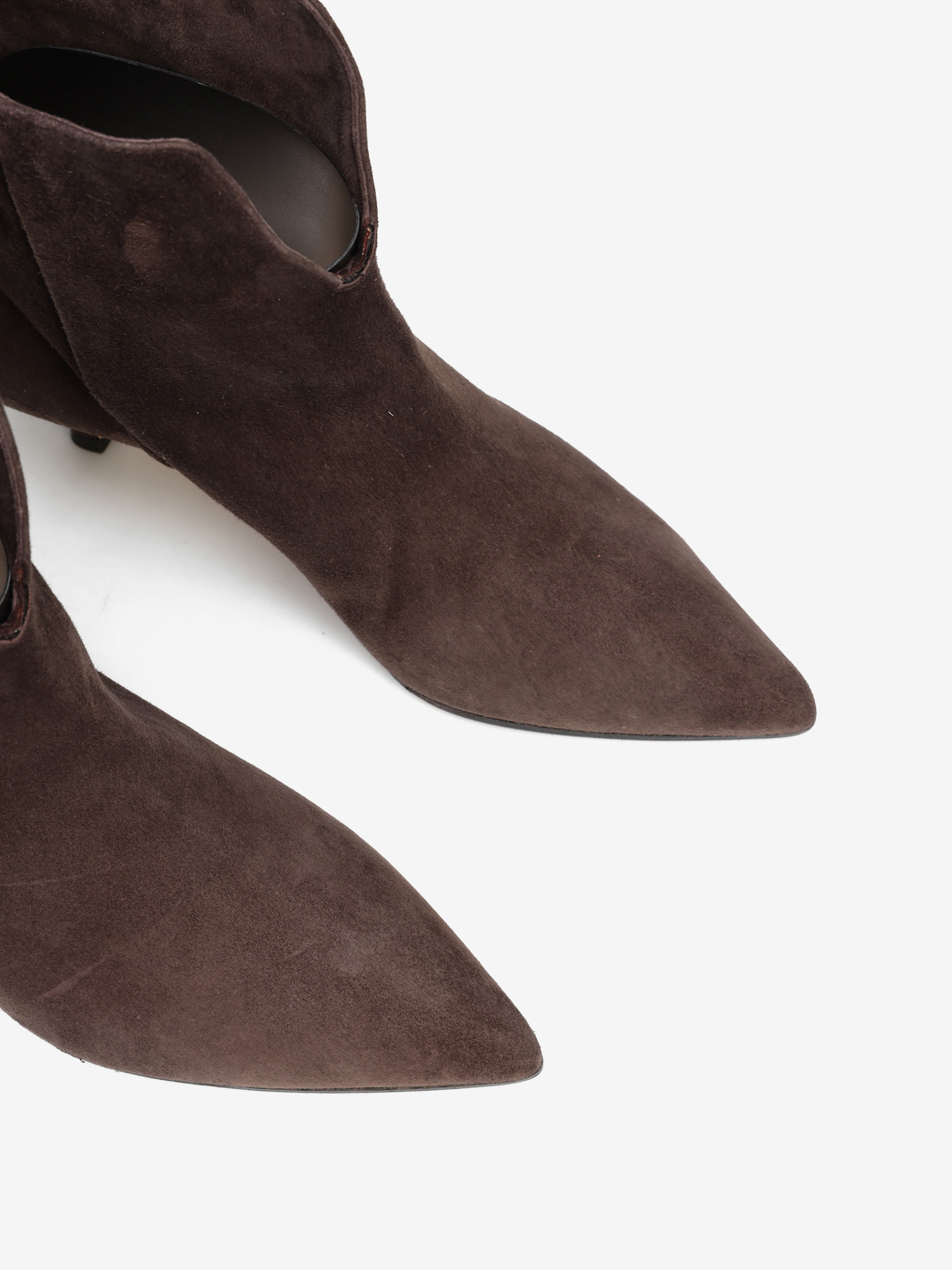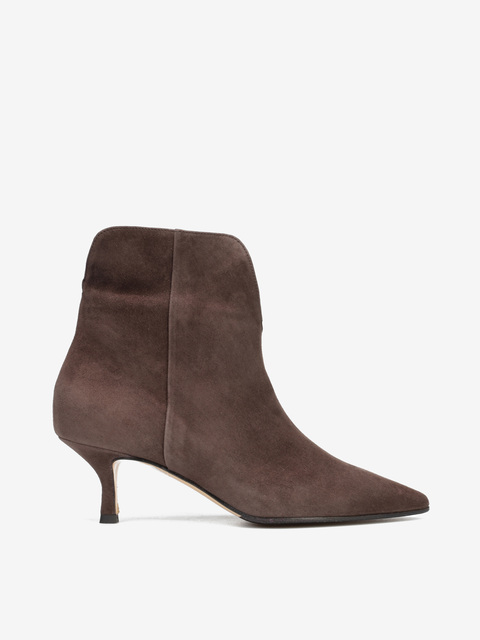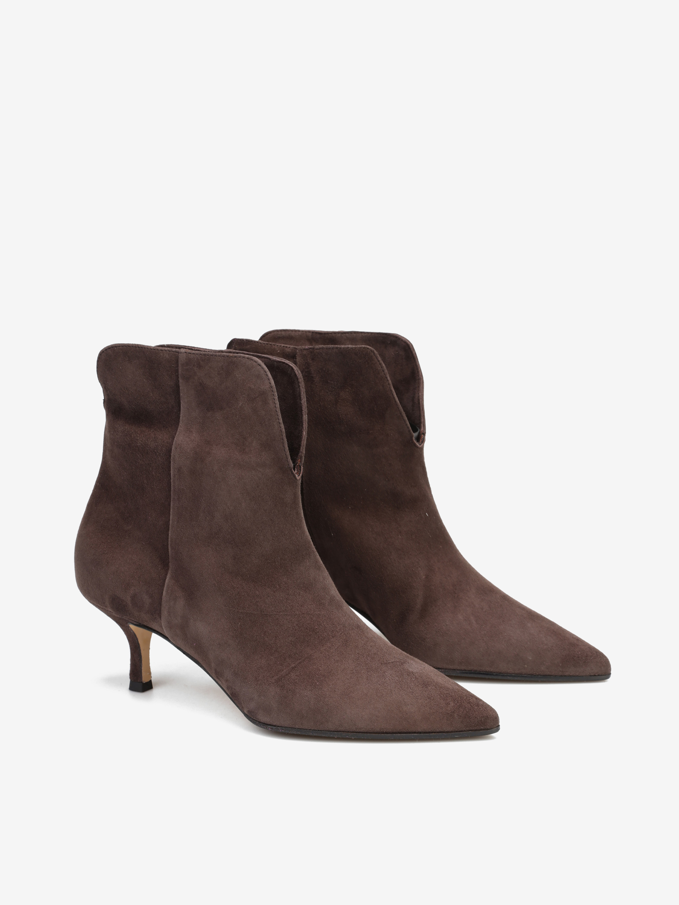 Botki na niskim obcasie to minimalistczny model dla eleganckich kobiet. Wsuwana cholewka w brązowym kolorze wykonana jest z zamszowej skóry. Model z noskiem w szpic oraz wygodnym obcasem na szpilce. Botki damskie będą uzupełnieniem nie tylko casualowych stylizacji.