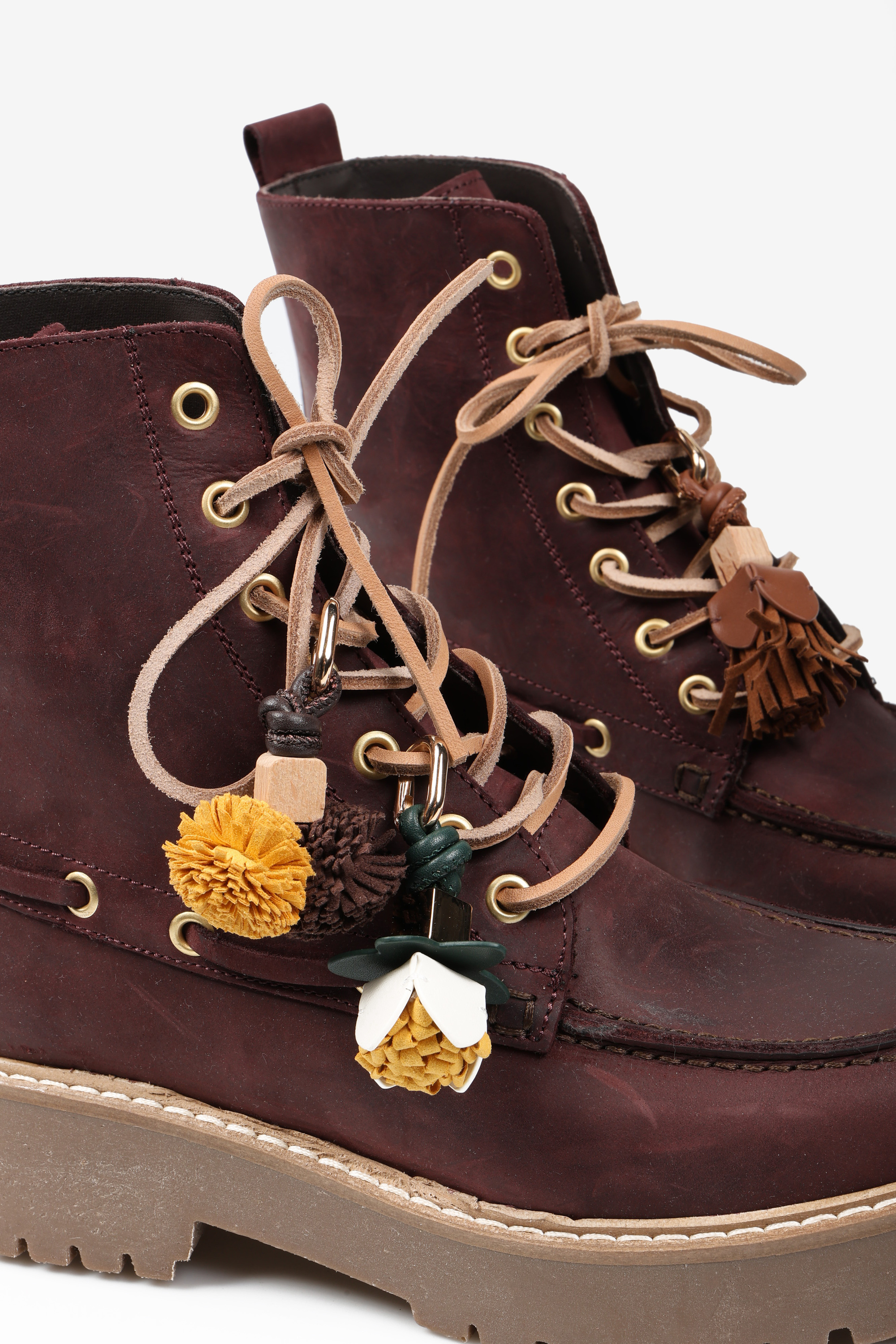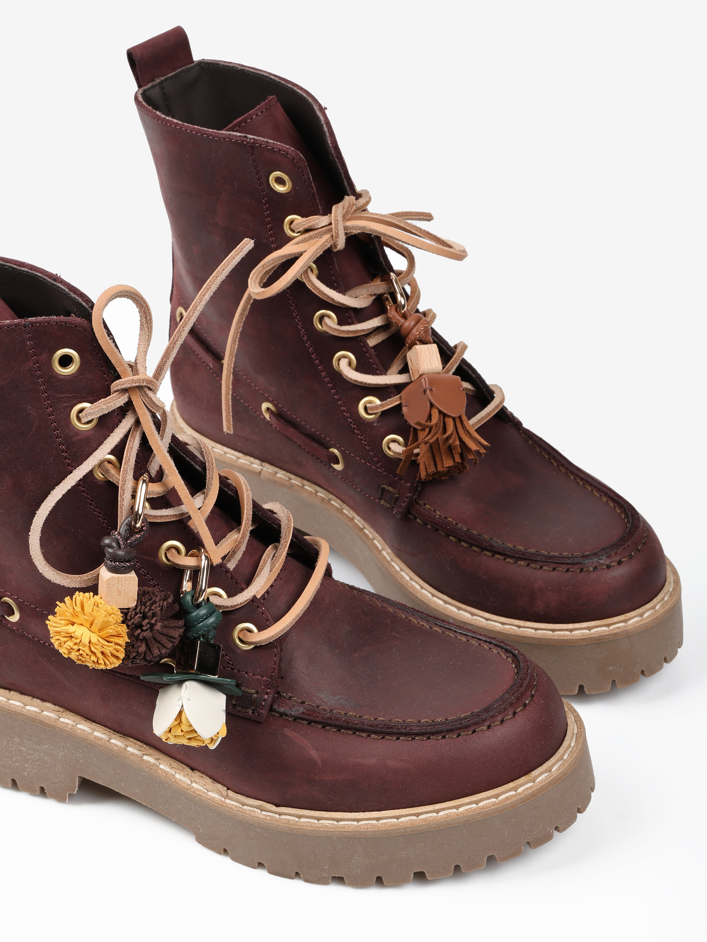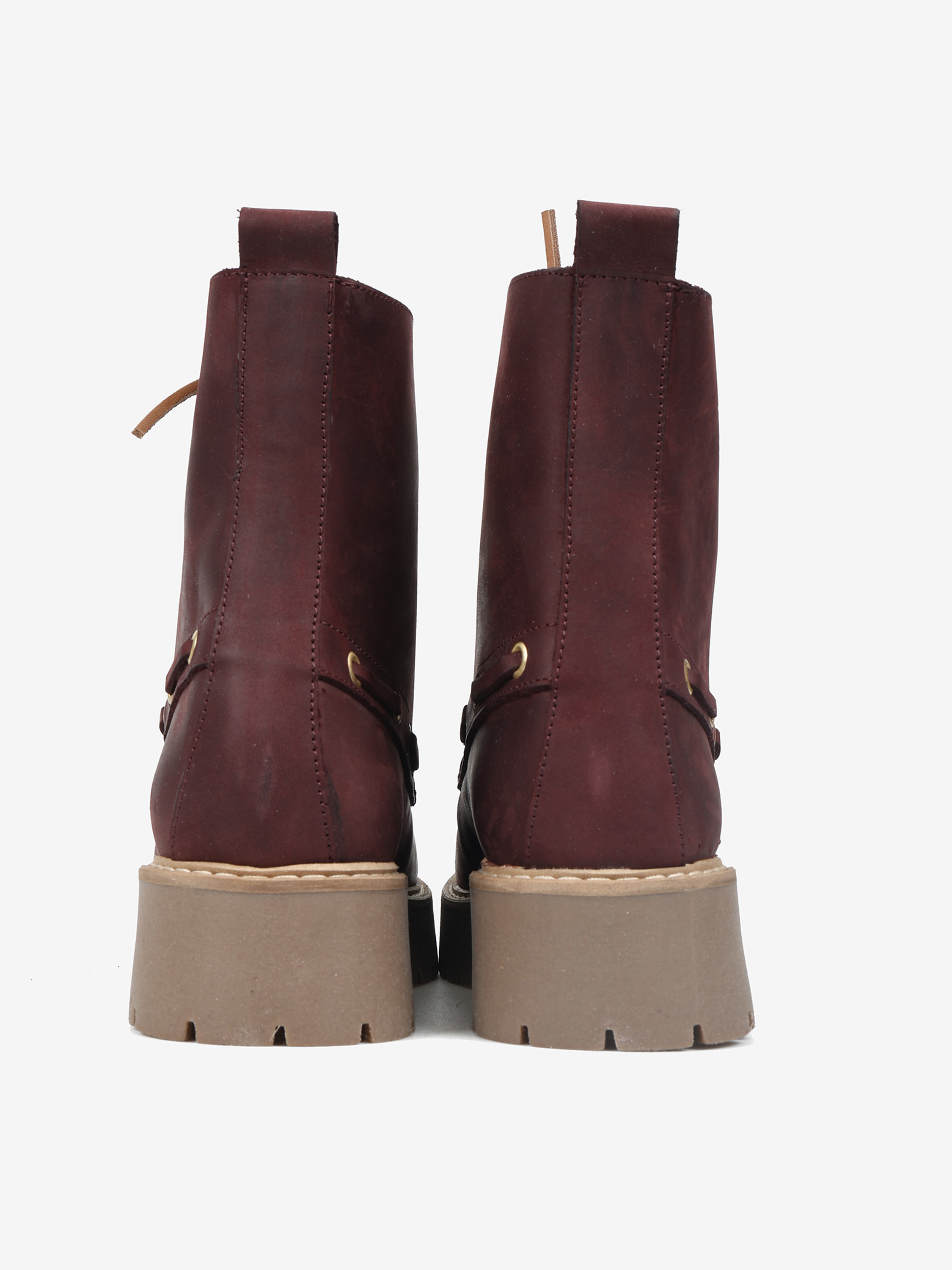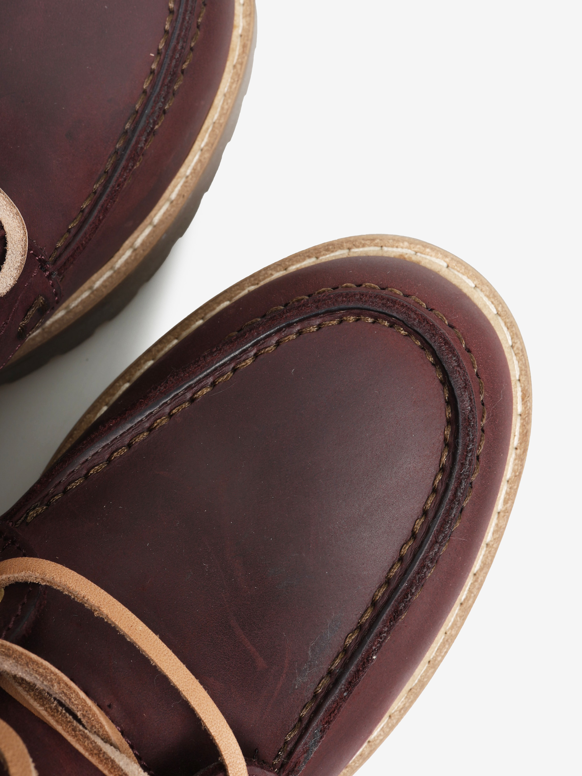 Botki na platformie w stylu boat shoe. Wykonane z bordowego nubuku i szurowane na rzemyk.