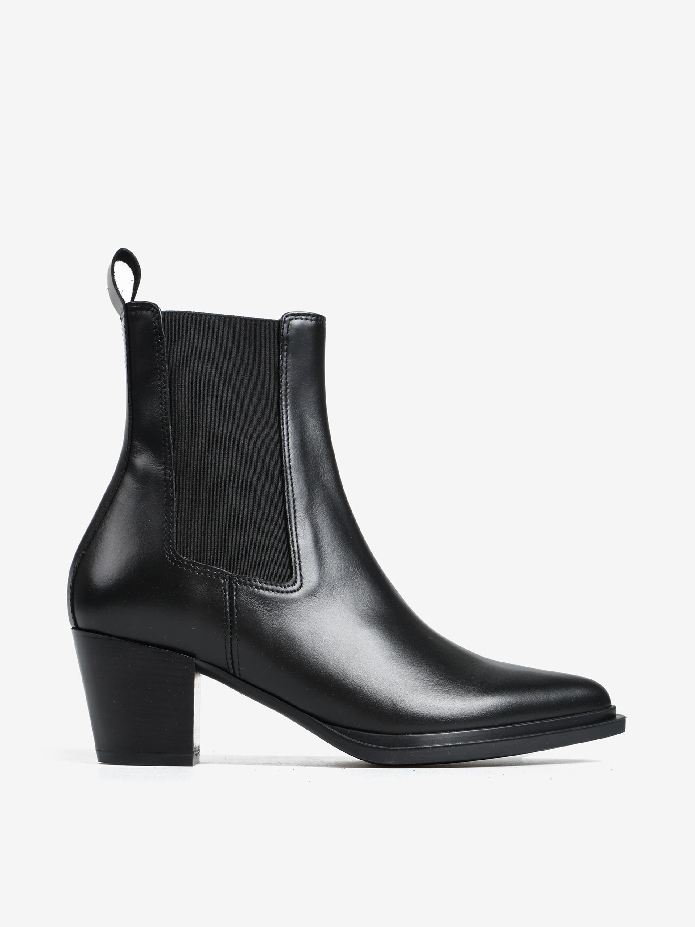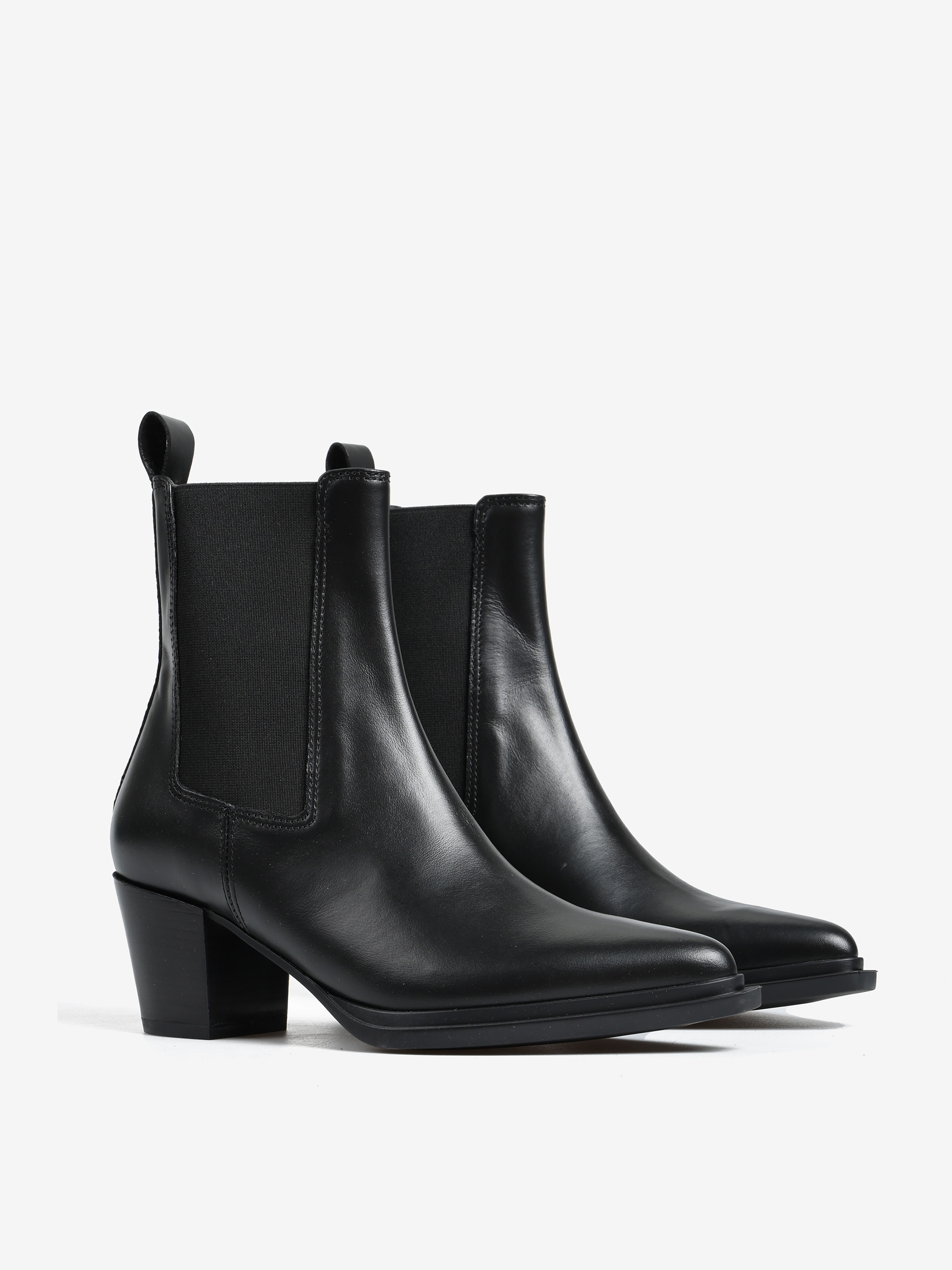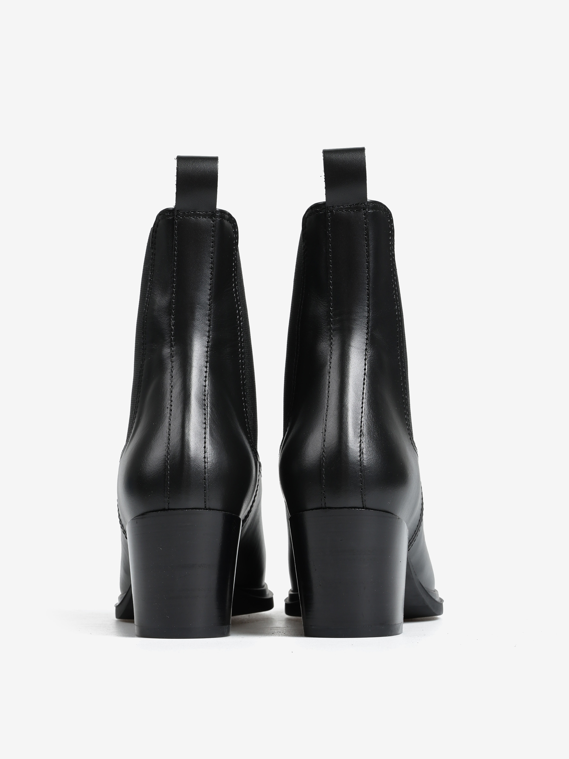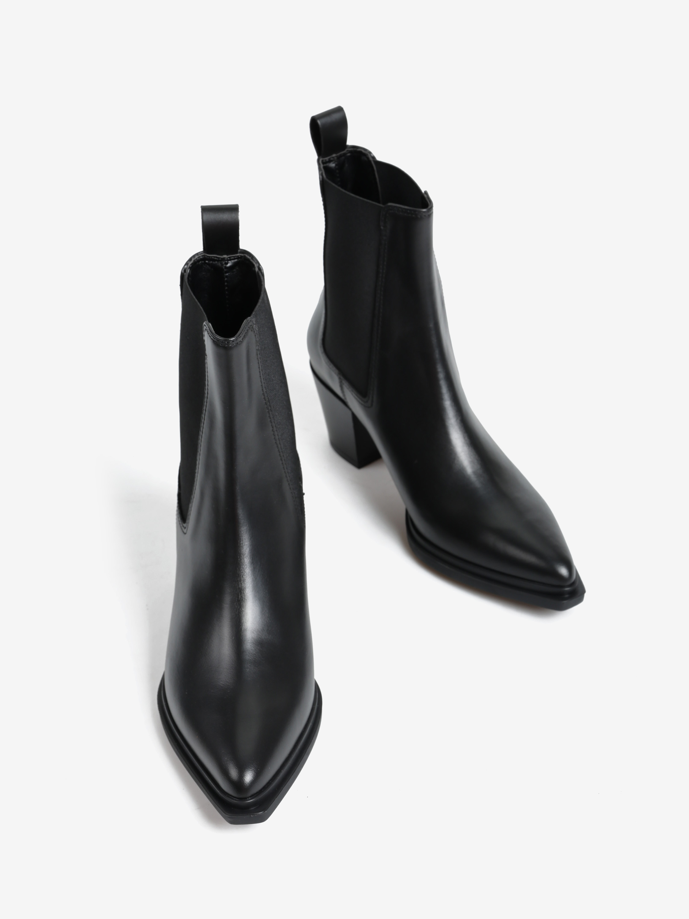 Wsuwane botki na słupku wykonane z naturalnej skóry. Noski w szpic.