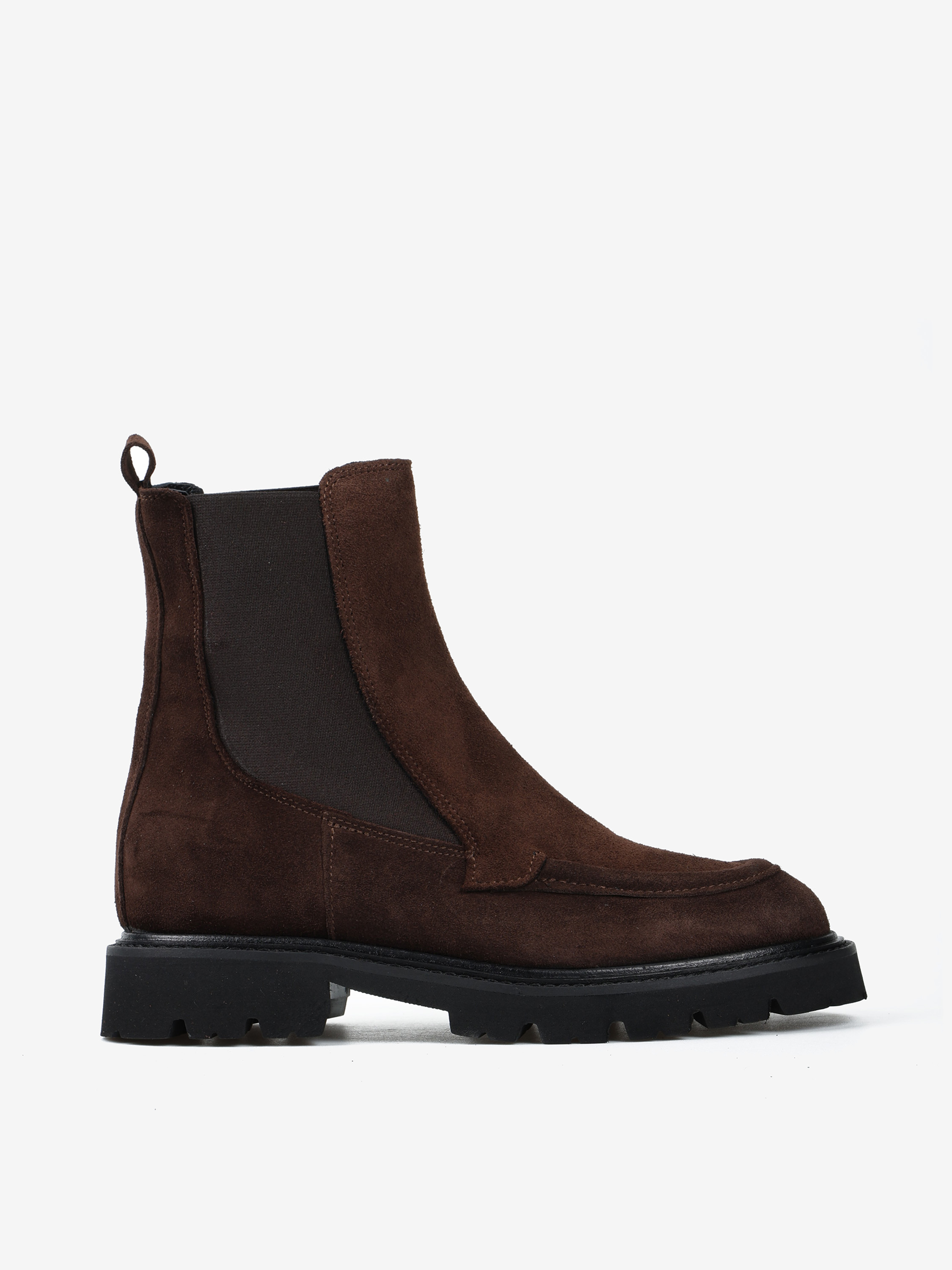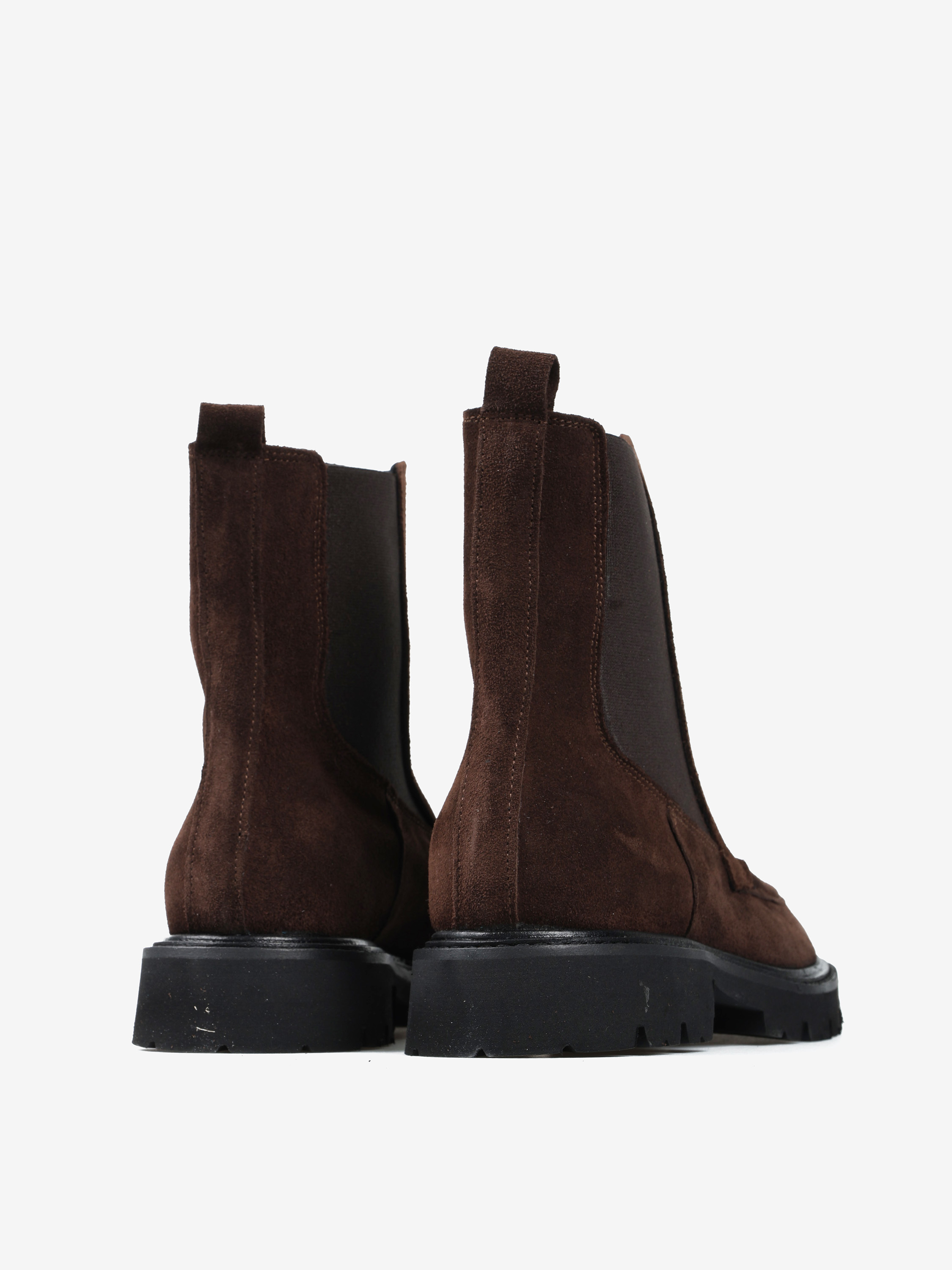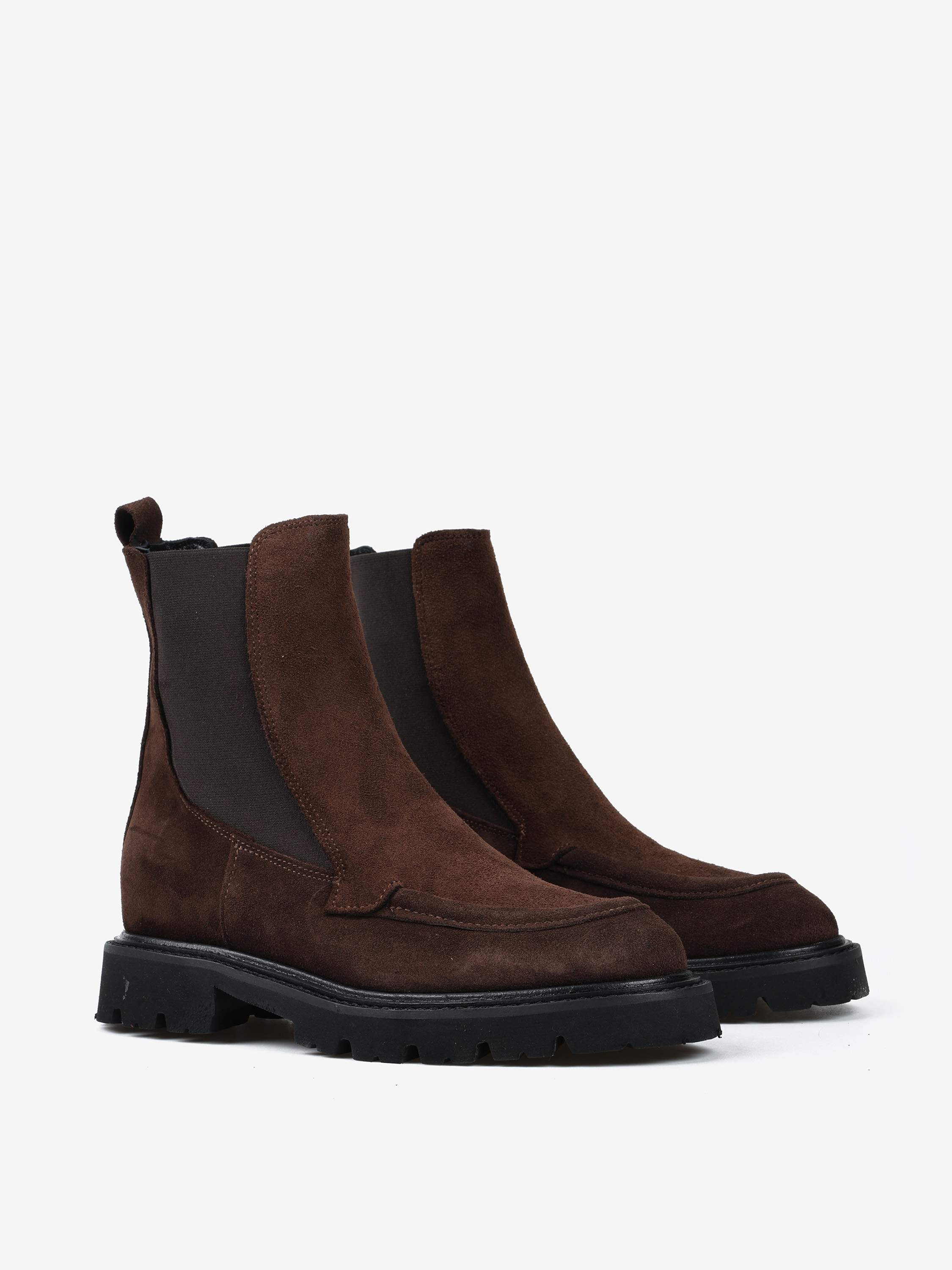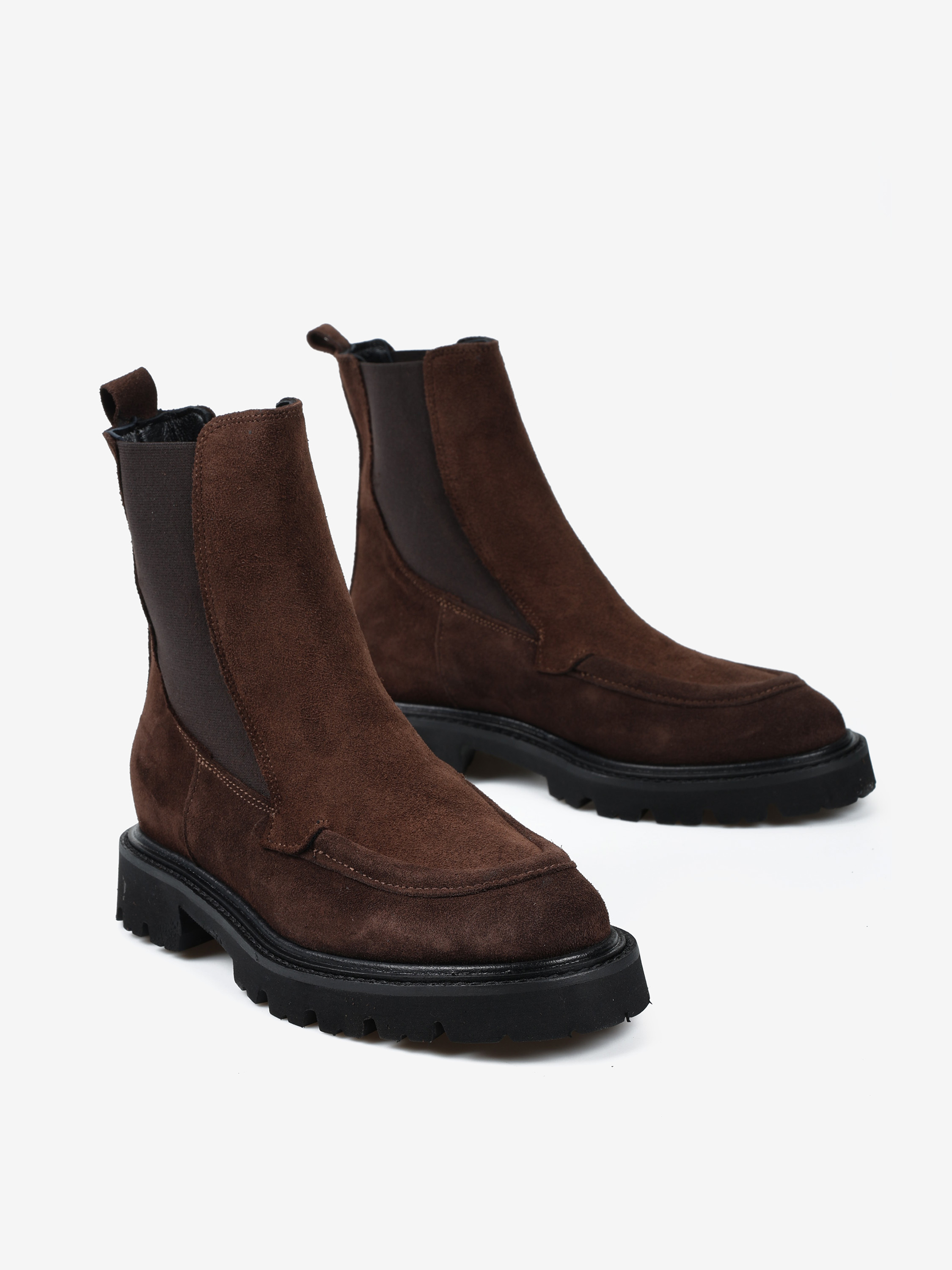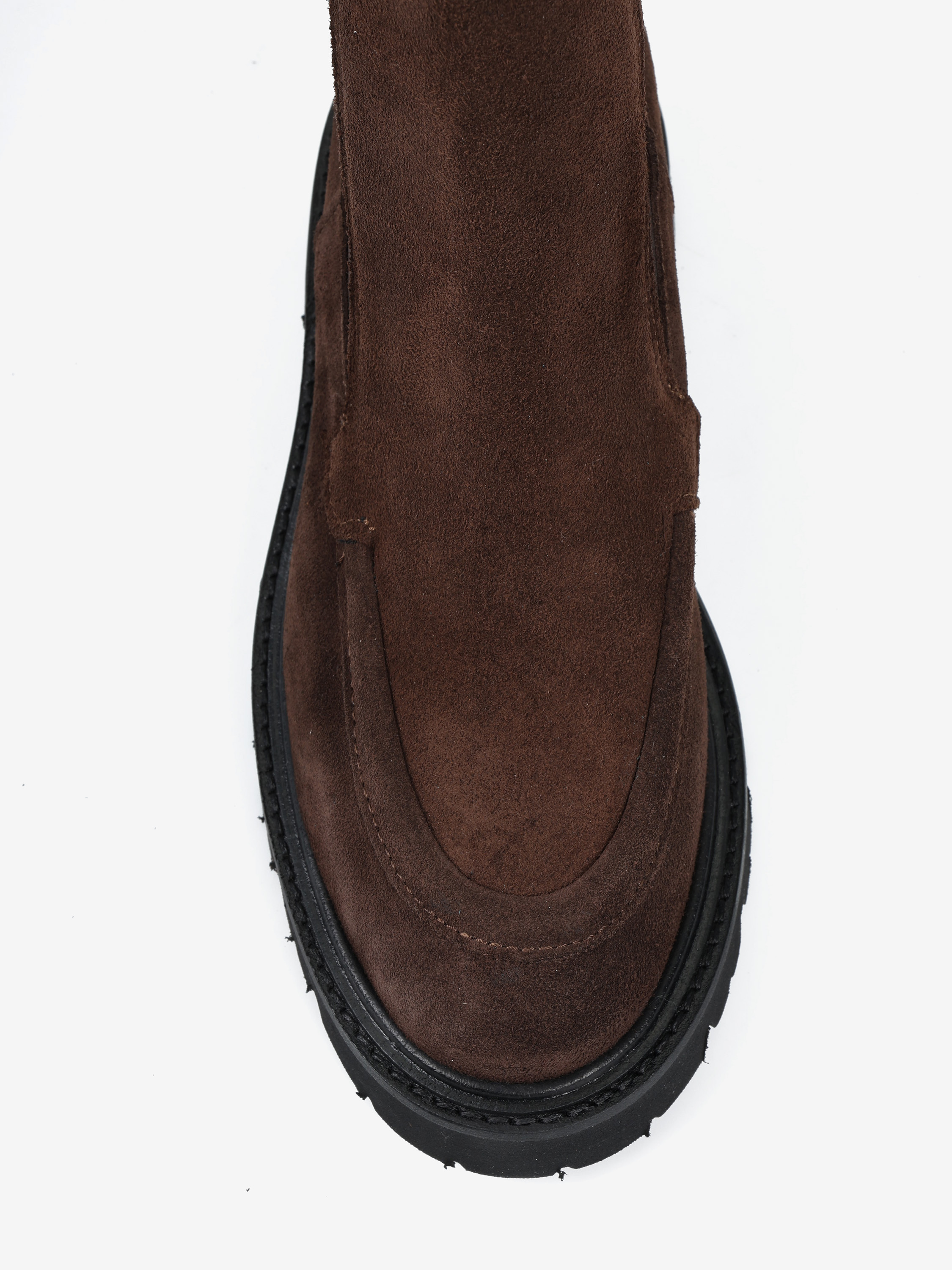 Klasyczne sztyblety na grubszej podeszwie wykonane z brązowego zamszu.