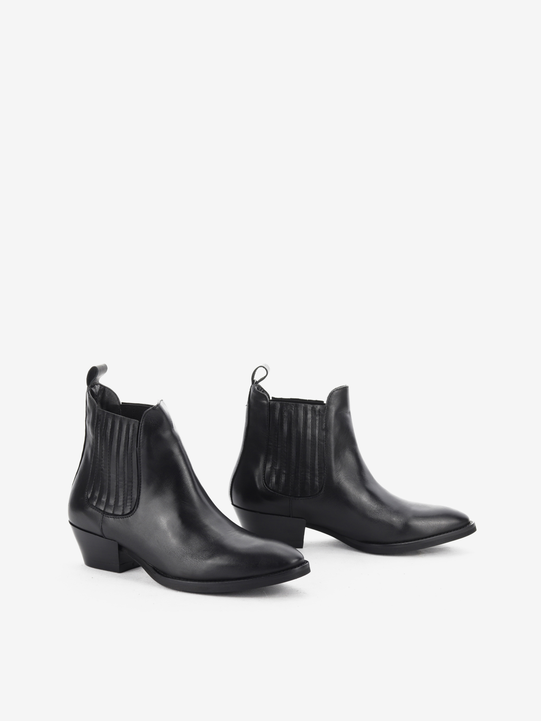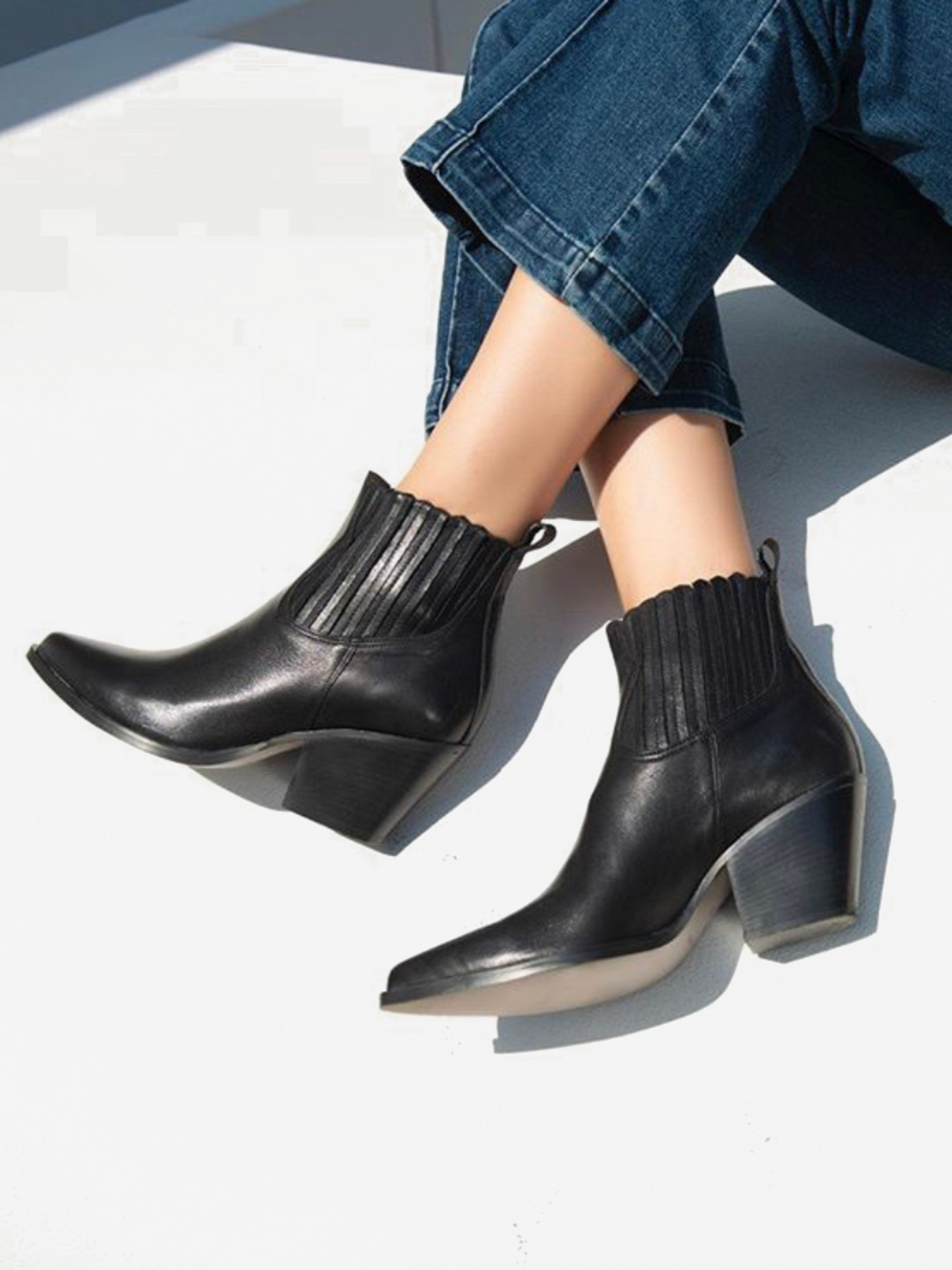 Klasyka nigdy nie wychodzi z mody! Ponadczasowe, czarne botki na 4 cm obcasie świetnie sprawdzą się w sezonie jesienno-zimowym. Skórzana cholewka oraz wnętrze gwarantują wygodę oraz wytrzymałość. Delikatnie ścięty obcas oraz nosek szpic sprawiają, że prezentują się bardzo nowocześnie. Gumka wszyta po obu stronach cholewki ułatwia zakładanie/ściąganie buta. To uniwersalna propozycja, pasująca do każdej stylizacji.