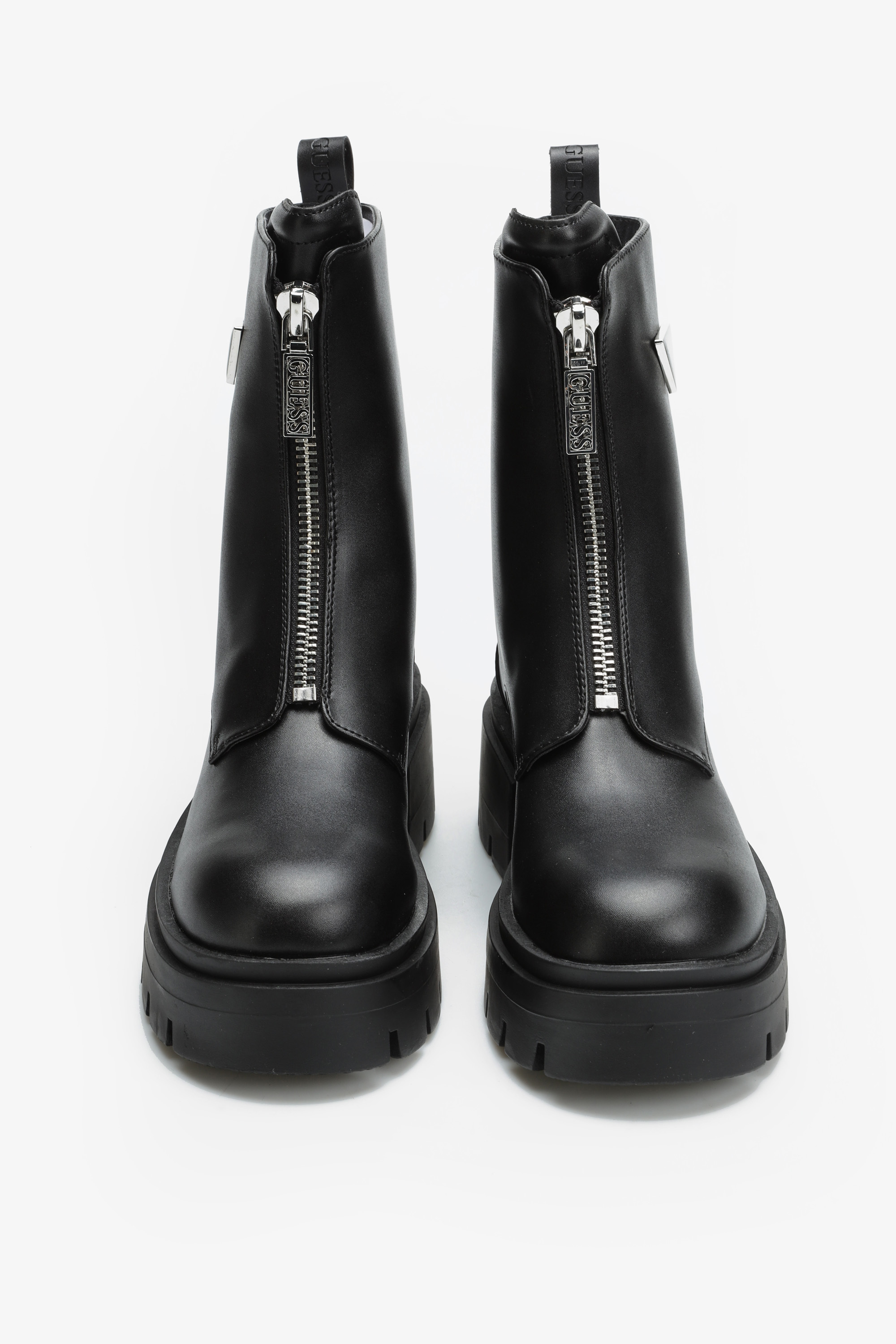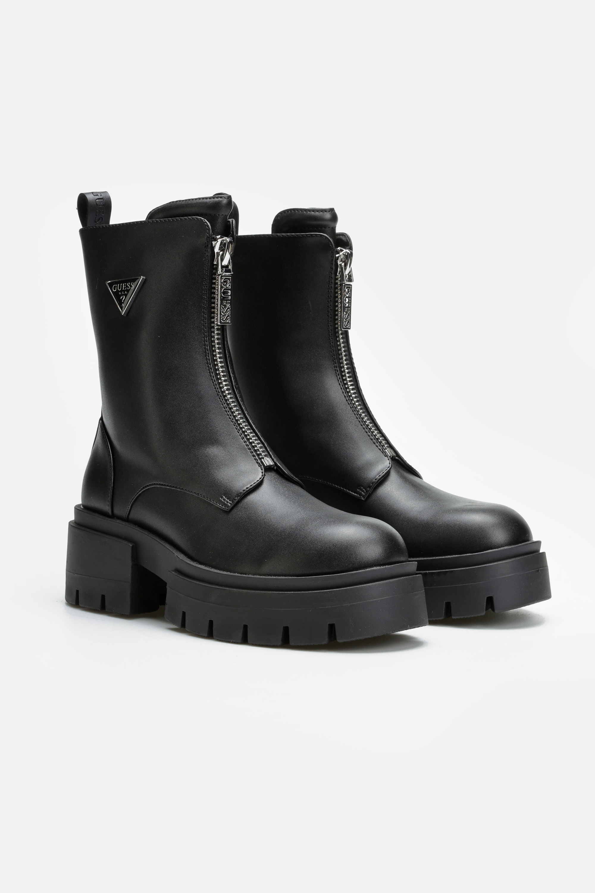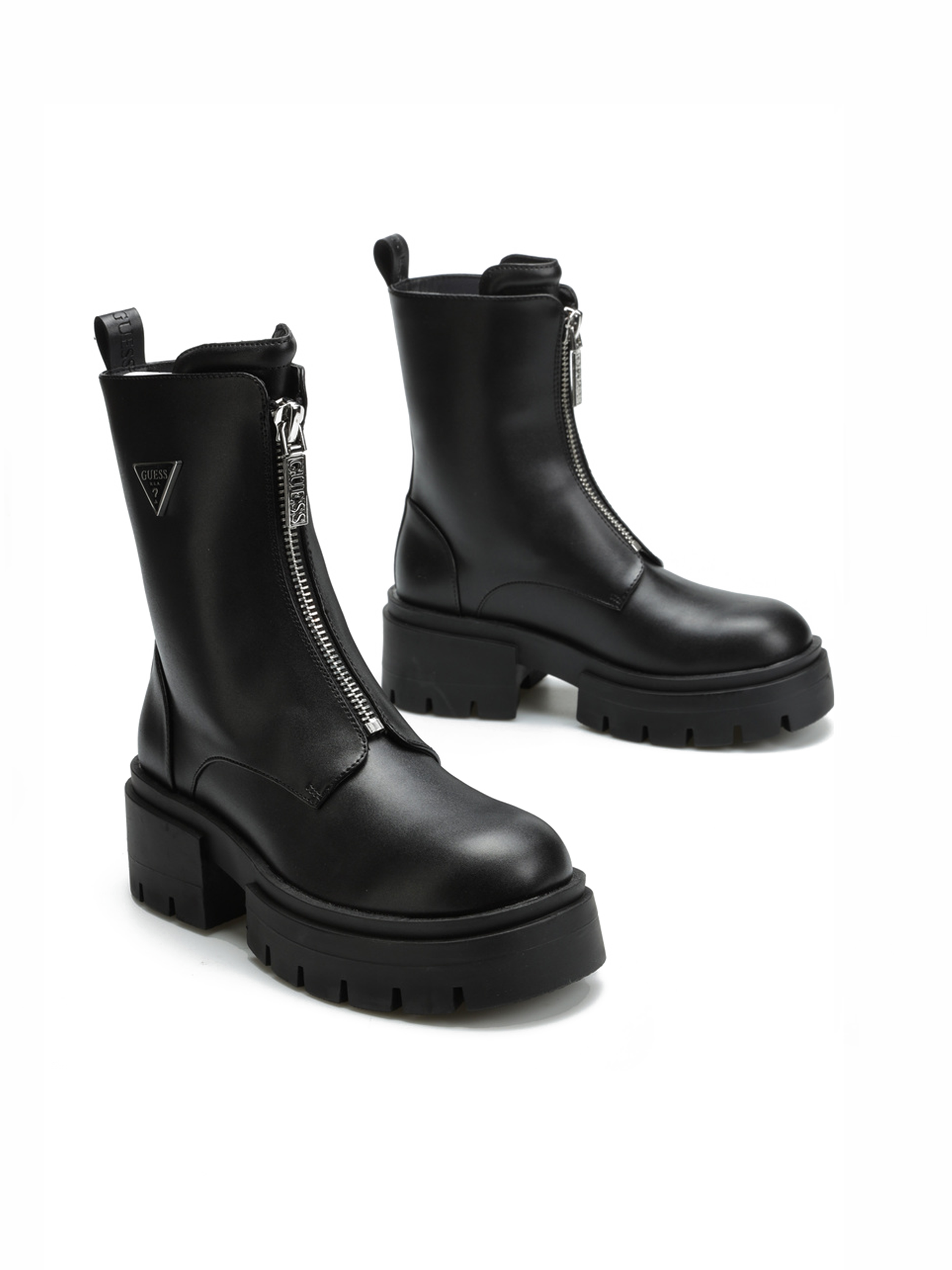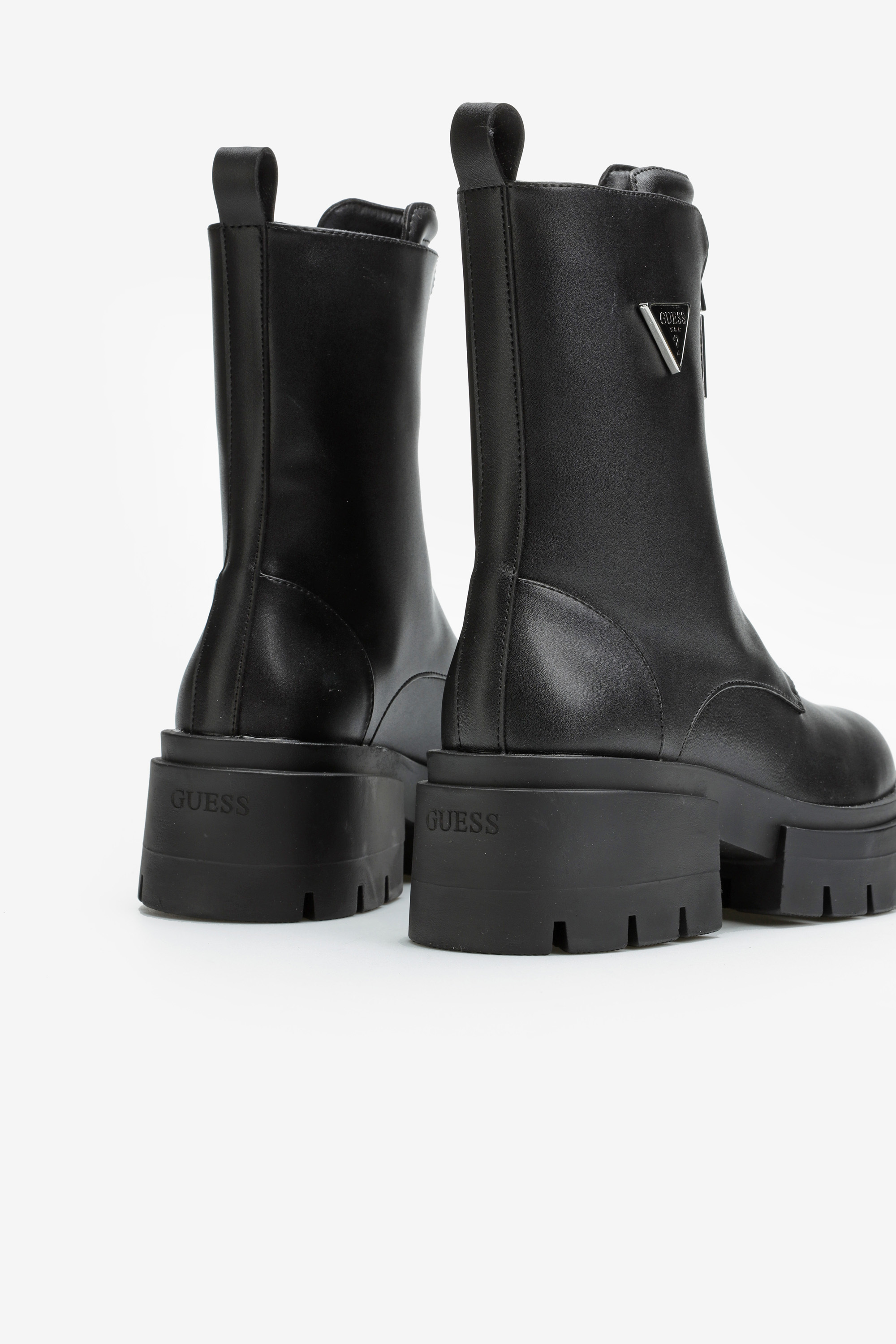 Minimalistyczne botki Guess z grubą podeszwą i cholewką za kostkę doskonale sprawdzą się w sezonie jesienno-zimowym.