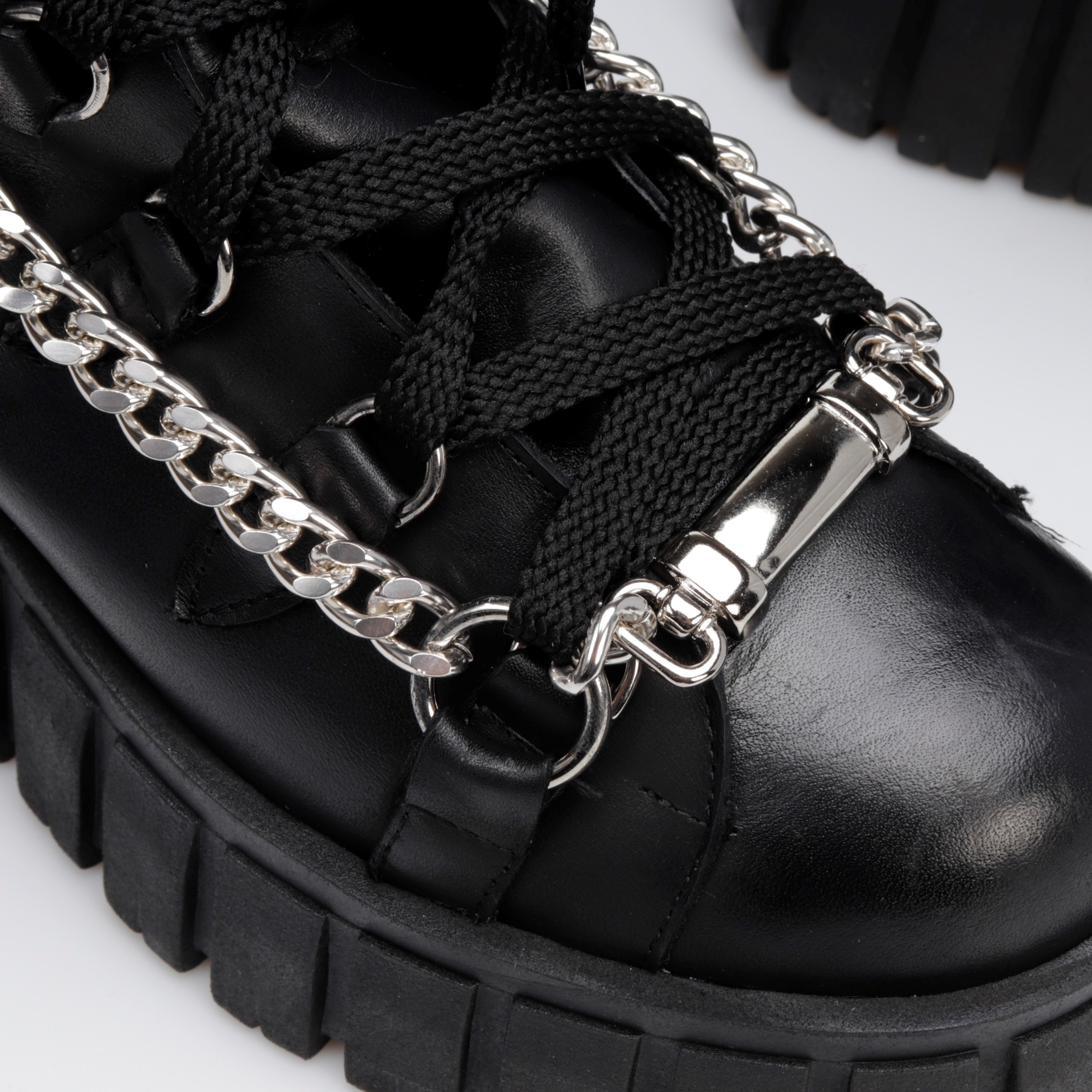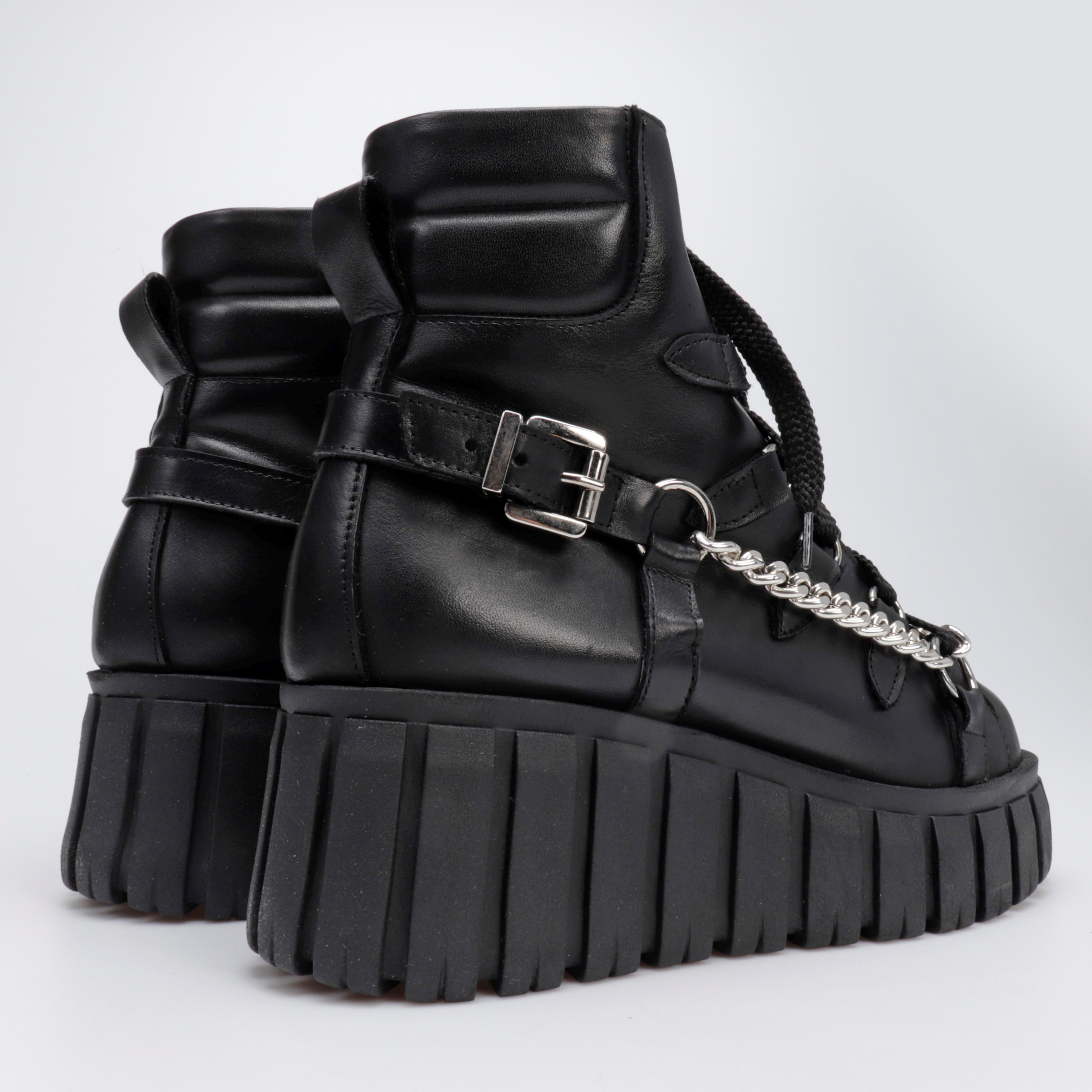 Stylowe botki w sportowym stylu to limitowana propozycja od HEGO'S Milano dla każdej kobiety ceniącej najnowsze trendy i wygodę. Model FUL8 w całości wykonany został z włoskiej skóry naturalnej, która nie tylko charakteryzuje się wytrzymałością, ale również zapewnia wysoki komfort użytkowania. Swoją wyjątkowość zawdzięczają przykuwającej wzrok podeszwie na platformie, a detal w postaci srebrnego łańcucha zdecydowanie dodaje im charakteru.