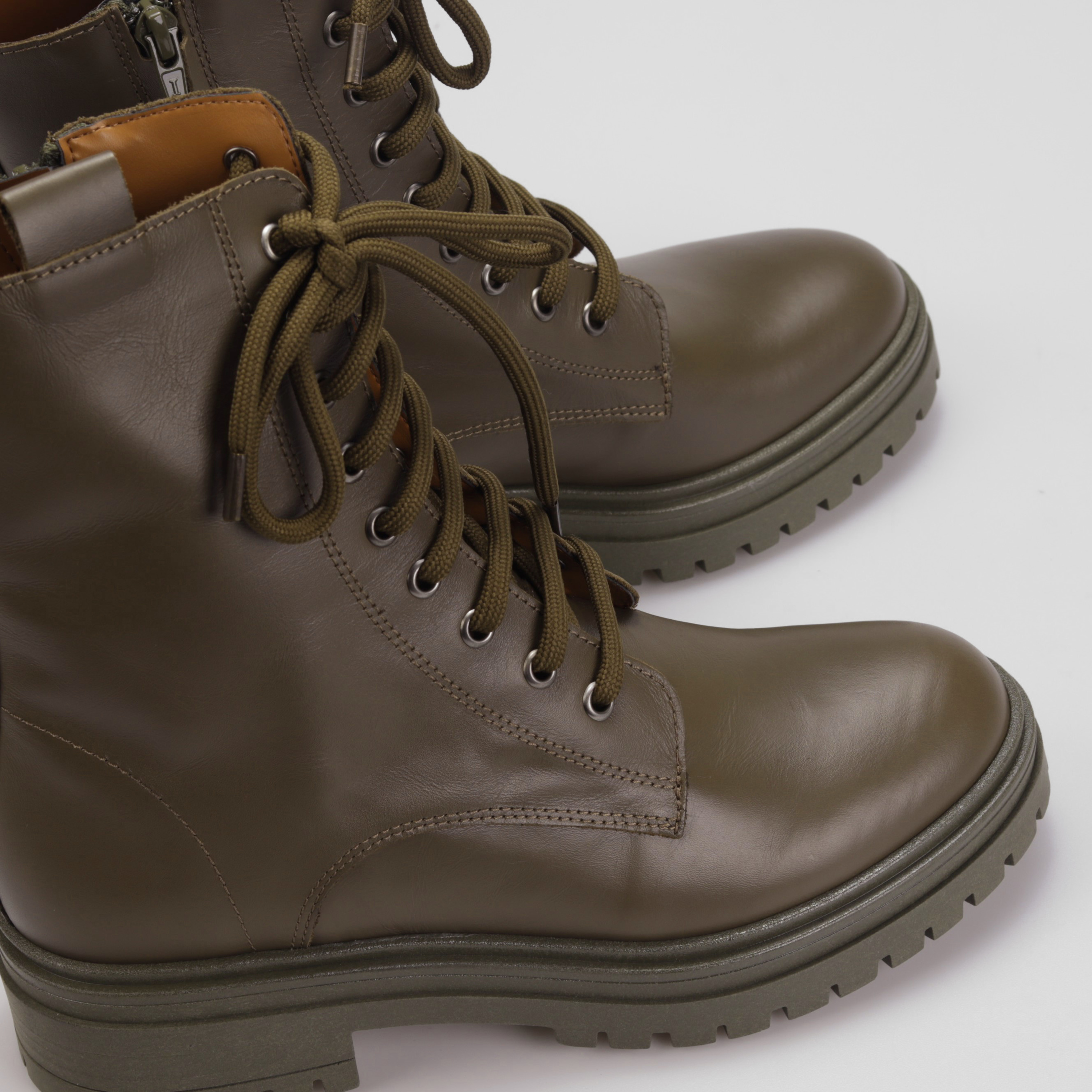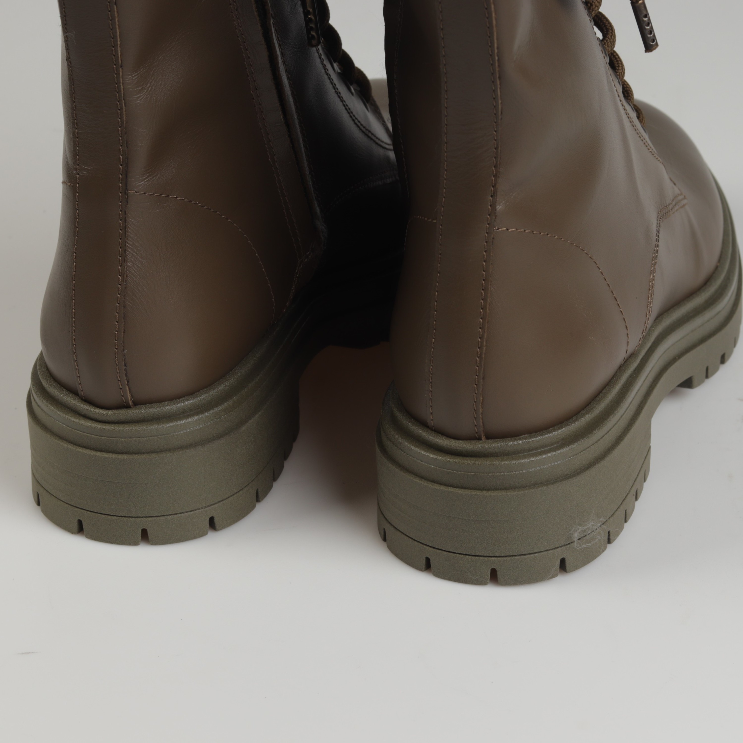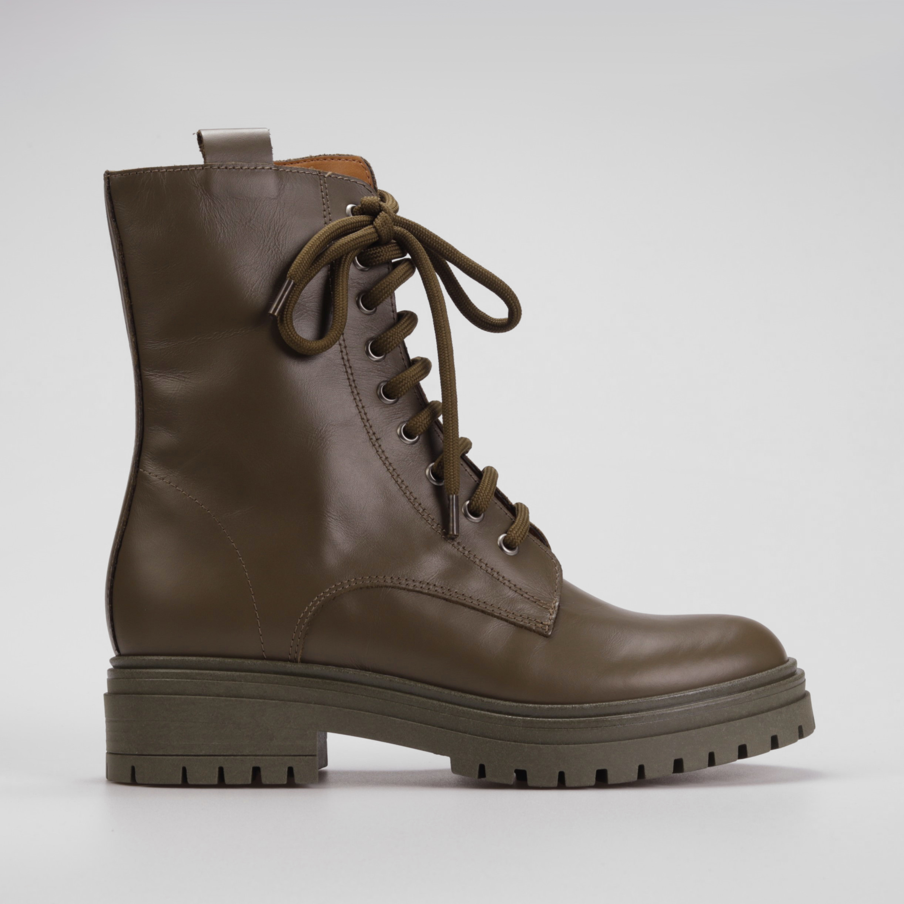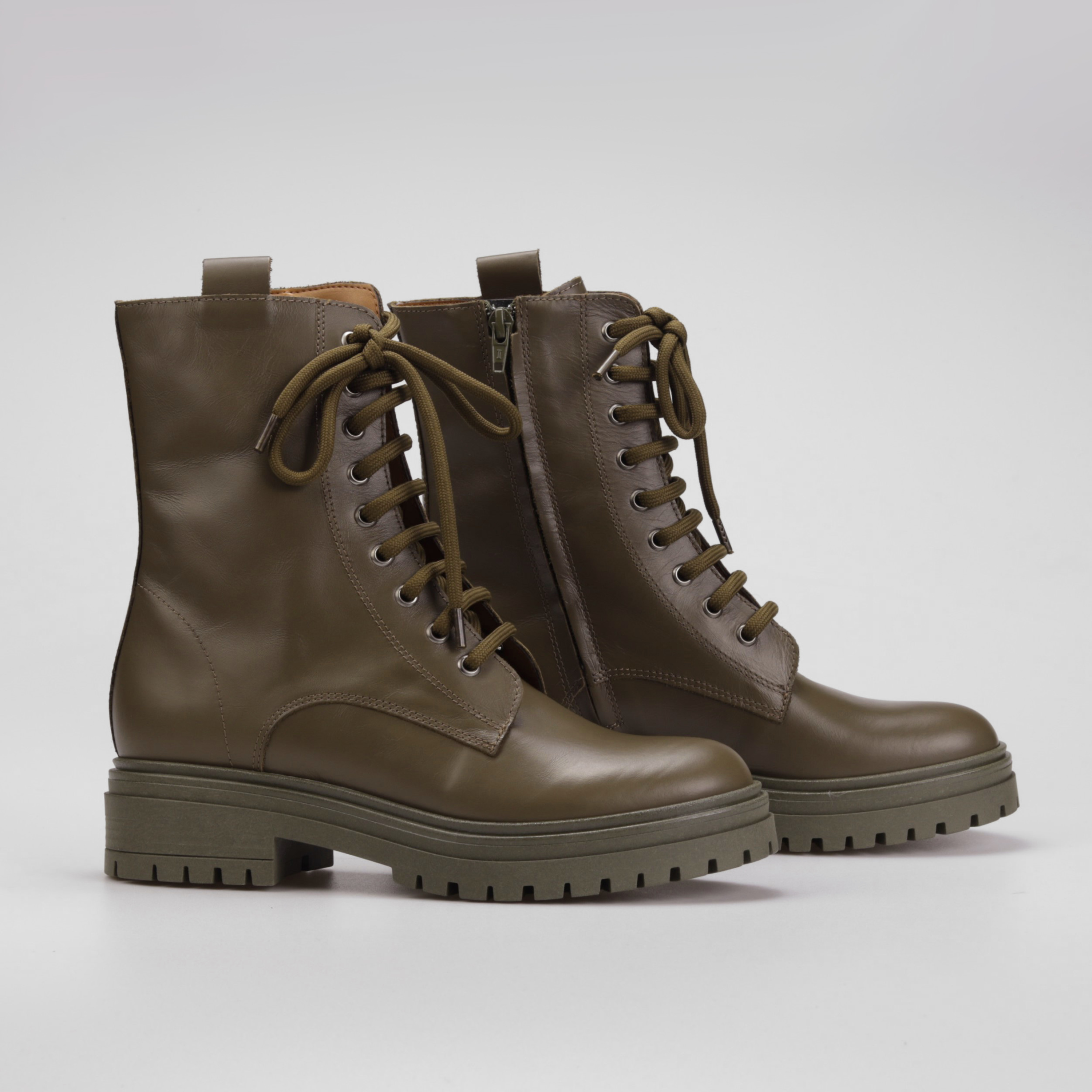 Klasyczne i ponadczasowe - tak zdecydowanie można określić botki w militarnym stylu na masywnej podeszwie, które w sezonie AW21 będą najgorętszym trendem. Wysokiej jakości skóra naturalna, z której została wykonana cholewka oraz wkładka gwarantuje wytrzymałość oraz komfort przez wiele godzin na nogach. Gumowa, podwyższona podeszwa nie tylko nadaje im charakteru, ale również zapewnia stabilny krok i amortyzację w każdych warunkach. Dodatkowo, piękny ciemnozielony kolor idealnie dopełni każdą jesienno-zimową stylizację dodając jej stylu.