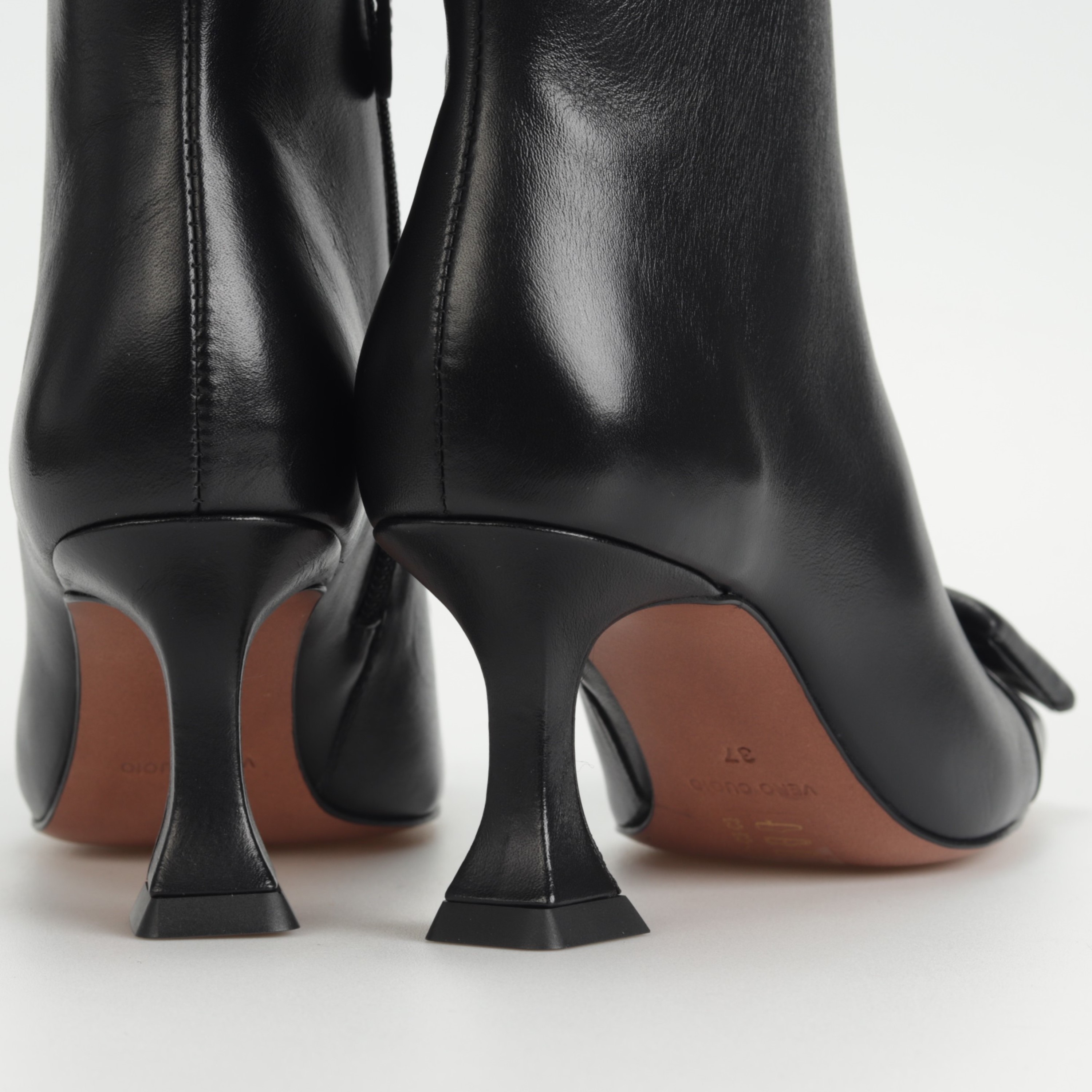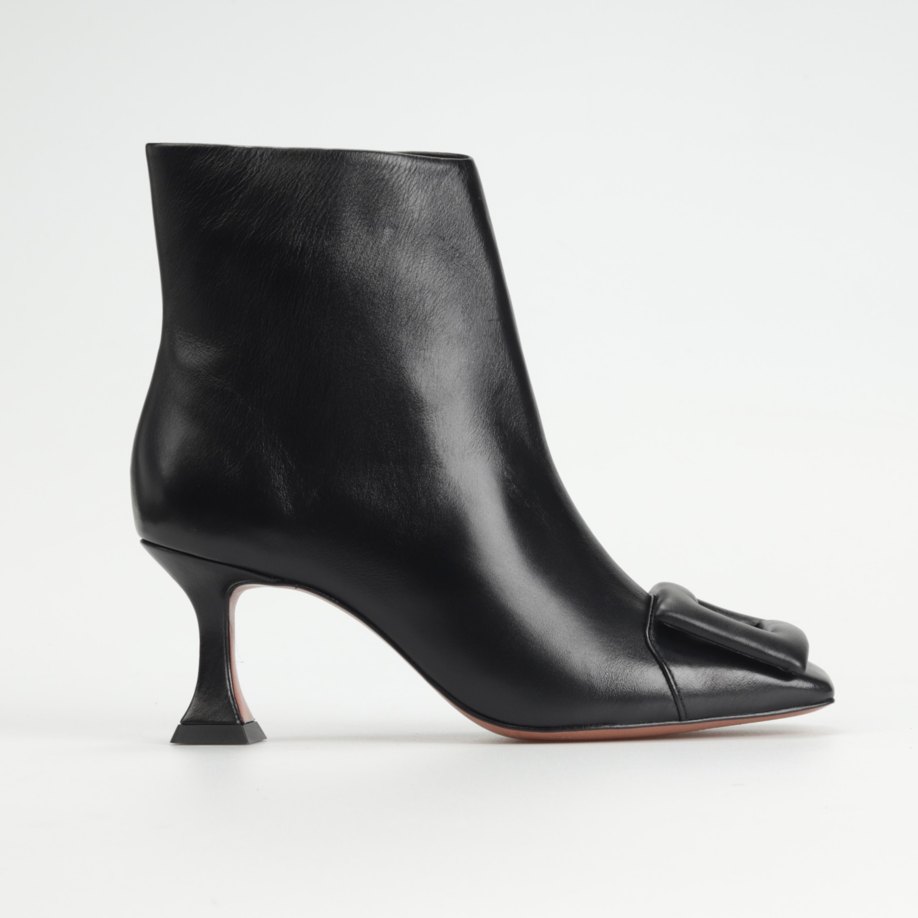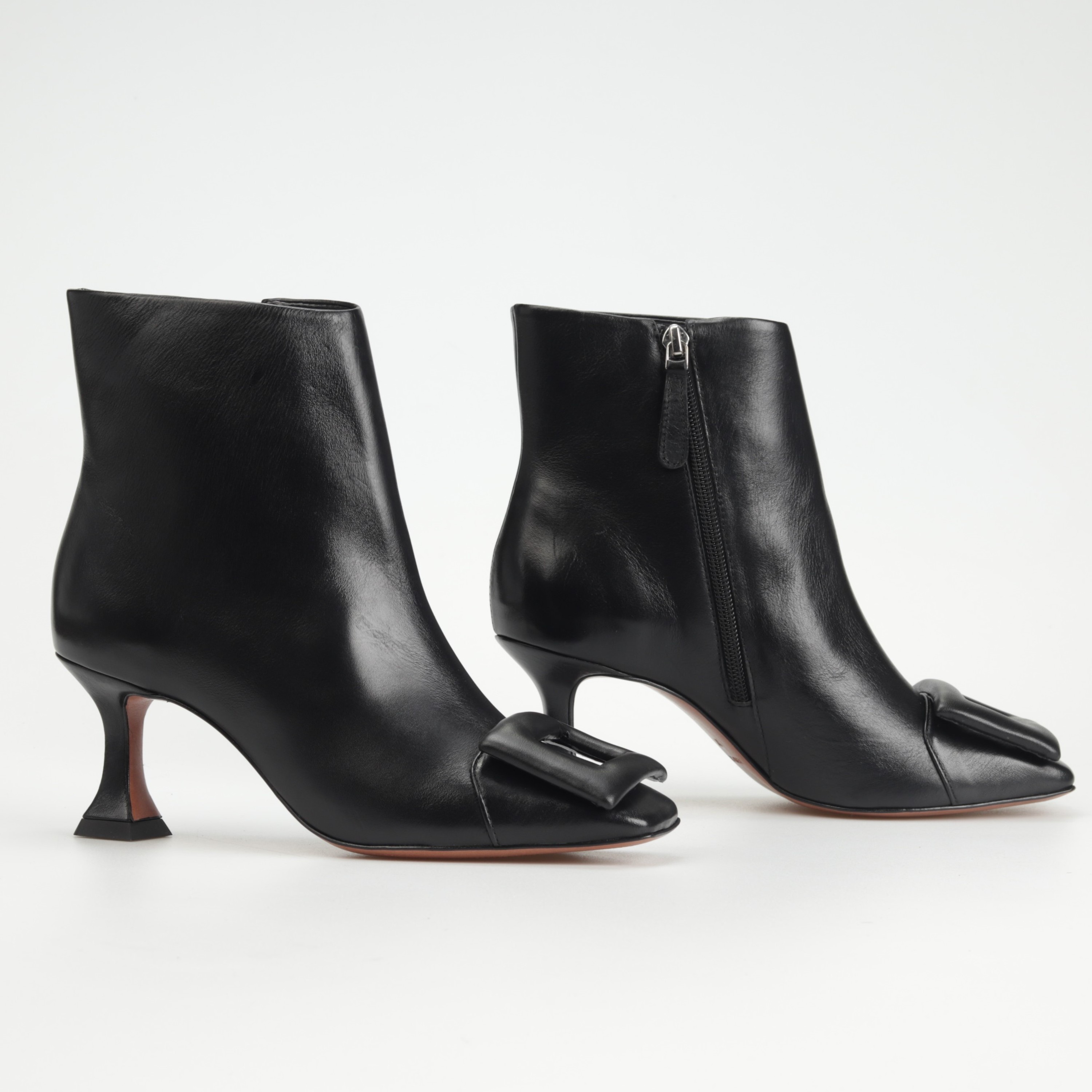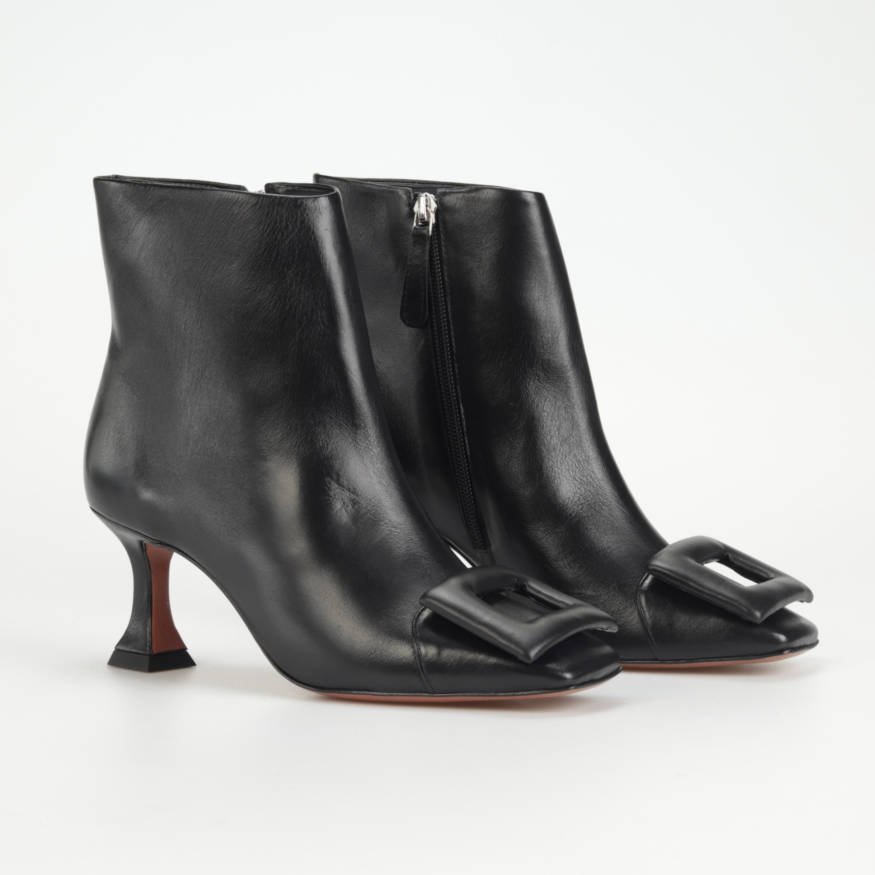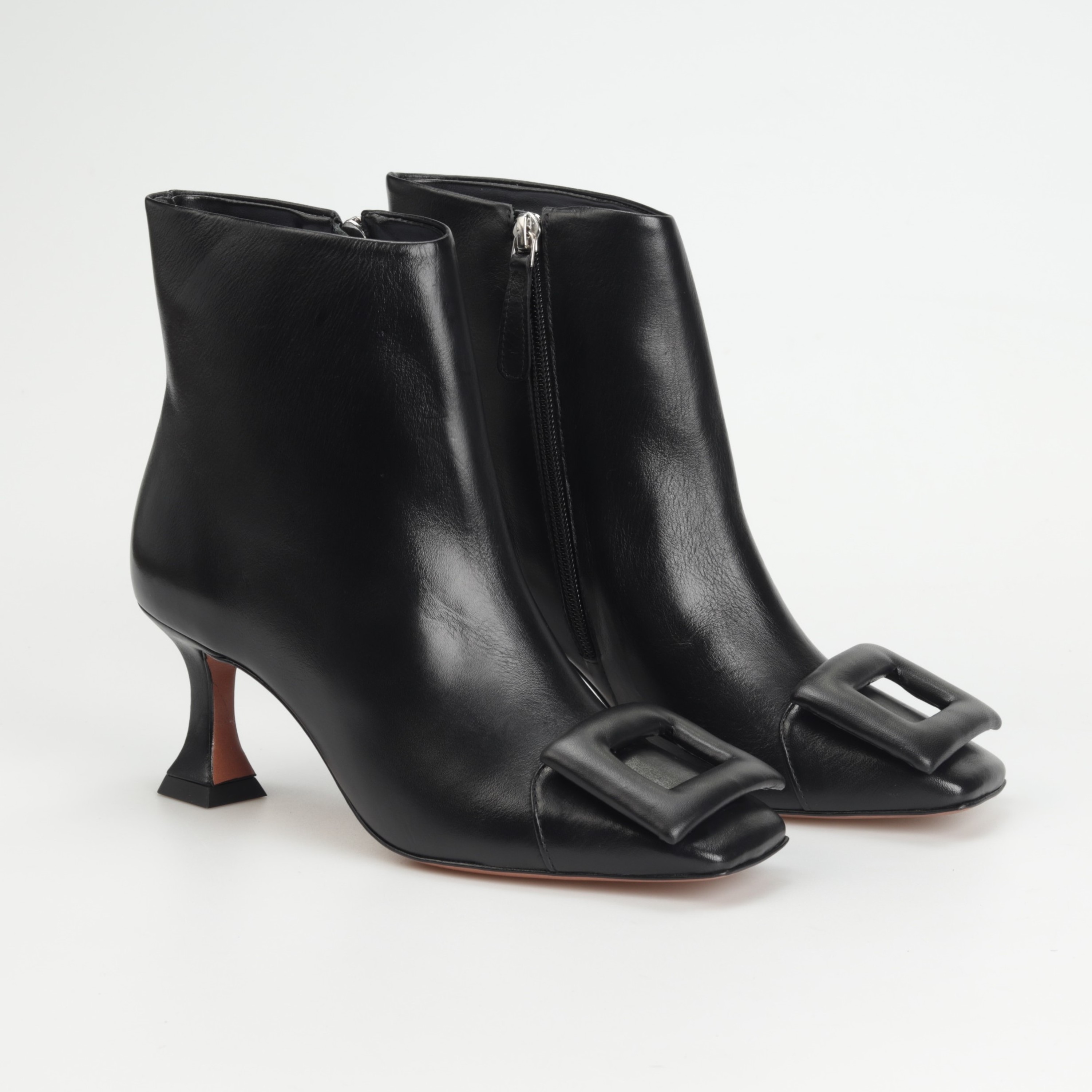 Niezwykle szykowne i kobiece botki na stabilnym, 7 cm obcasie to propozycja dla każdej miłośniczki elegancji i najnowszych trendów. Dzięki wysokiej jakości skórze naturalnej, z której wykonana została cholewka oraz dobrze wyprofilowana wkładka model 1101001-3 idealnie leży na nodze gwarantując wysoki komfort użytkowania. Prezentowane botki to kwintesencja włoskiego stylu i jakości. Elementy takie jak kwadratowy nosek, stożkowy obcas czy duża, ozdobna klamra na przodzie sprawiają, że prezentują się one kobieco i wyjątkowo.
