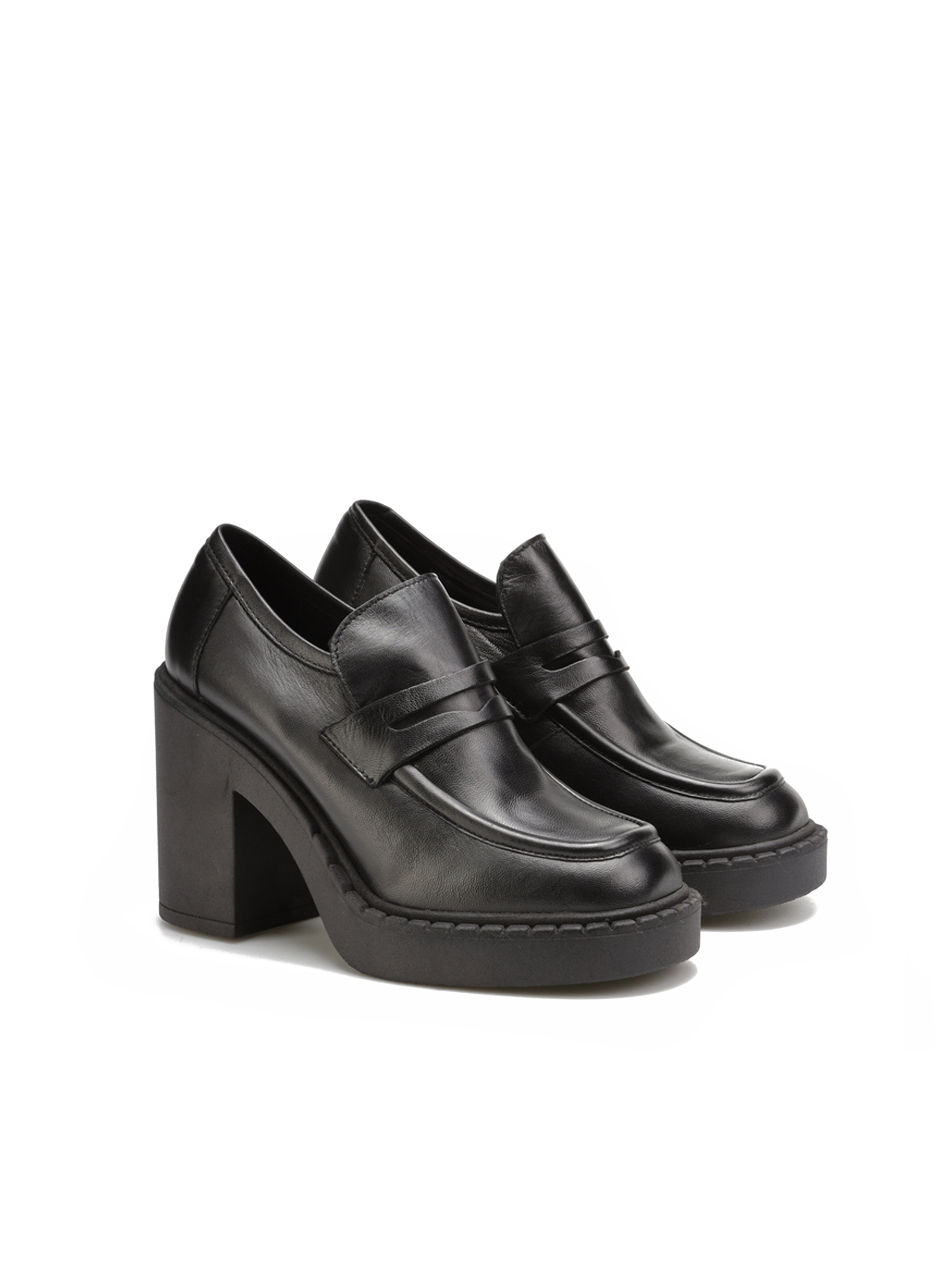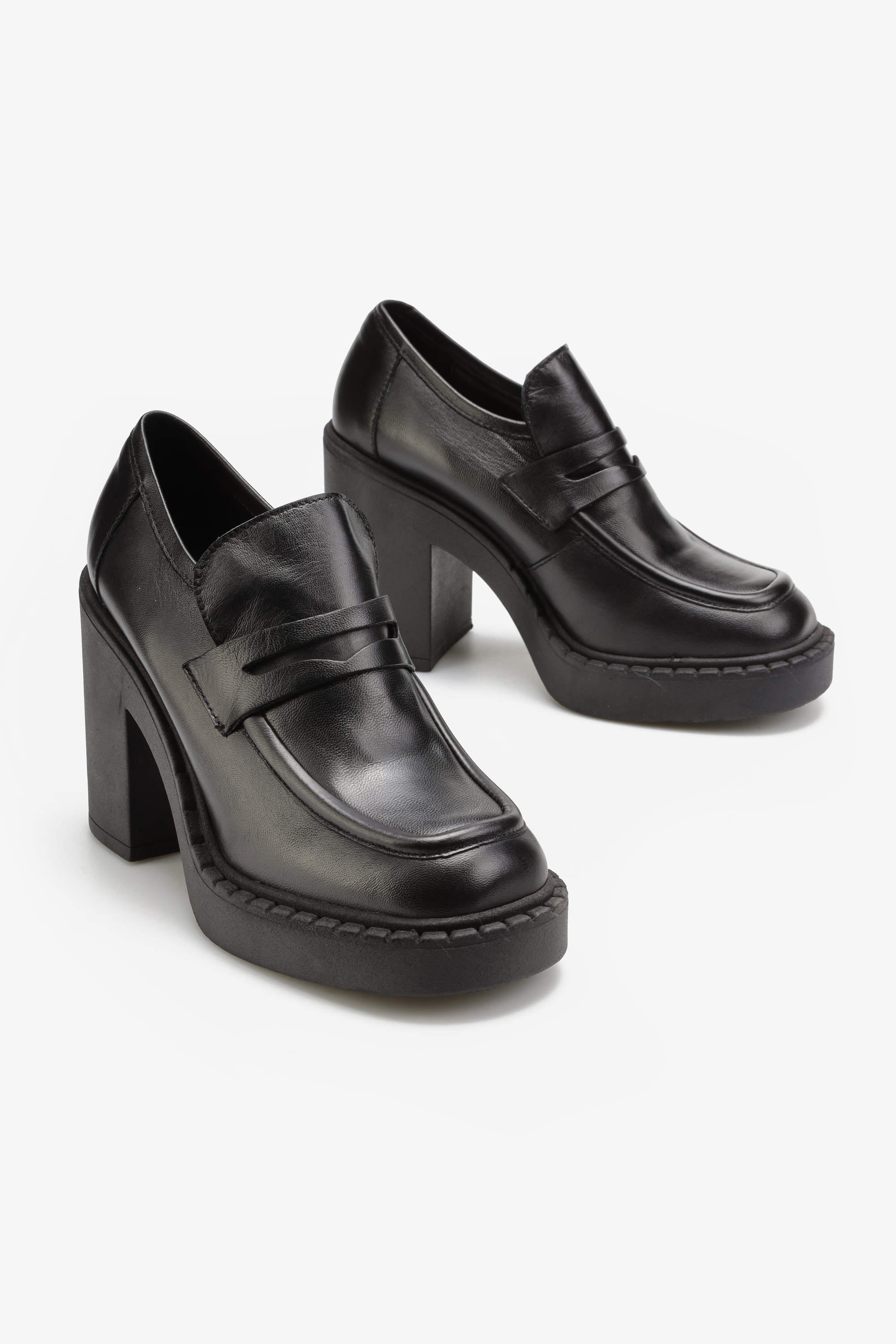 Mokasyny w ponadczasowym czarnym kolorze w połączeniu z grubą, gumową podeszwą na platformie to tegoroczny must have. Włoska dbałość o detale w postaci przeszyć na cholewce i charakterystycznego wysokiego języka typowego dla fasonu lords to moda prosto z włoskich ulic. Stabilny, słupkowy obcas i kwadratowy nosek idealnie wpisują się w obecne trendy.