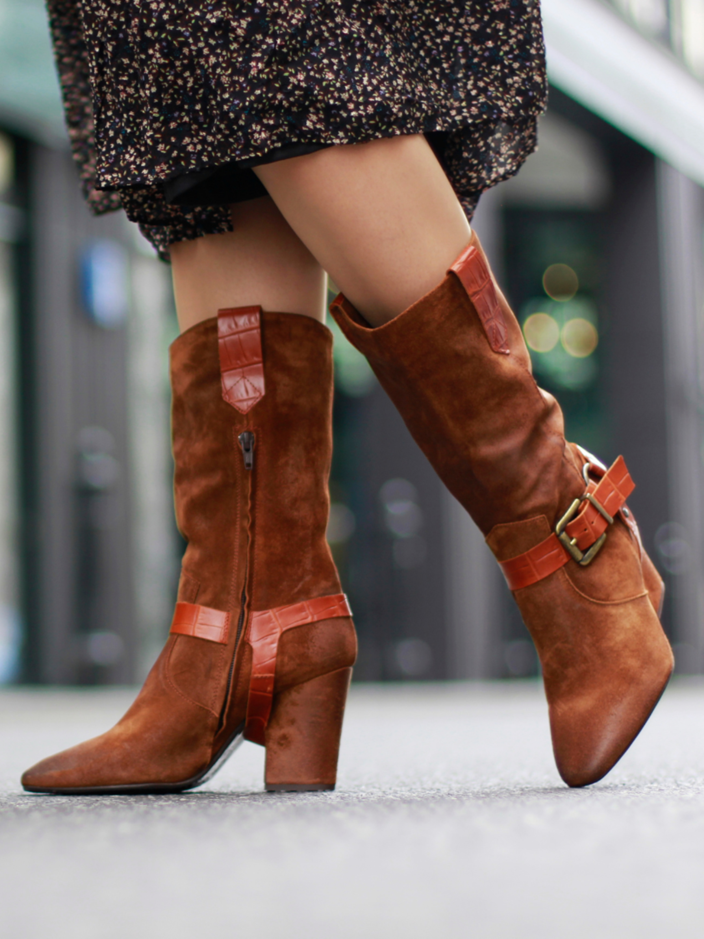 Stylowe kozaki na 9 cm obcasie muszą znaleźć się w szafie każdej kobiety w sezonie AW20. Zamszowa cholewka w połączeniu ze skórzanym wnętrzem gwarantuje komfort i wygodę przez wiele godzin na nogach. Na ich ciekawy design składa się między innymi piękny, rudy kolor oraz ozdoba ze złotą klamerką. Nikt nie przejdzie obok nich obojętnie!