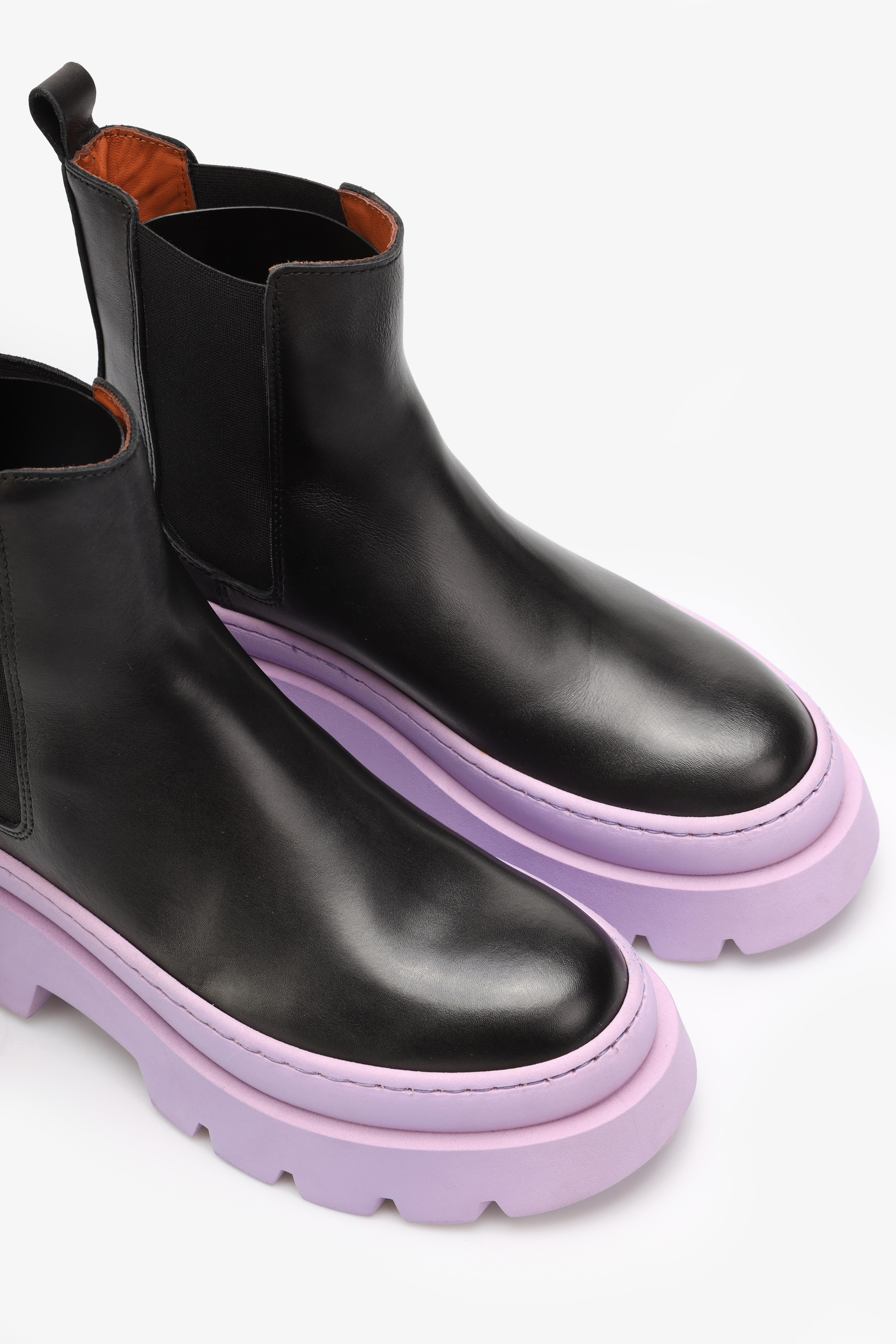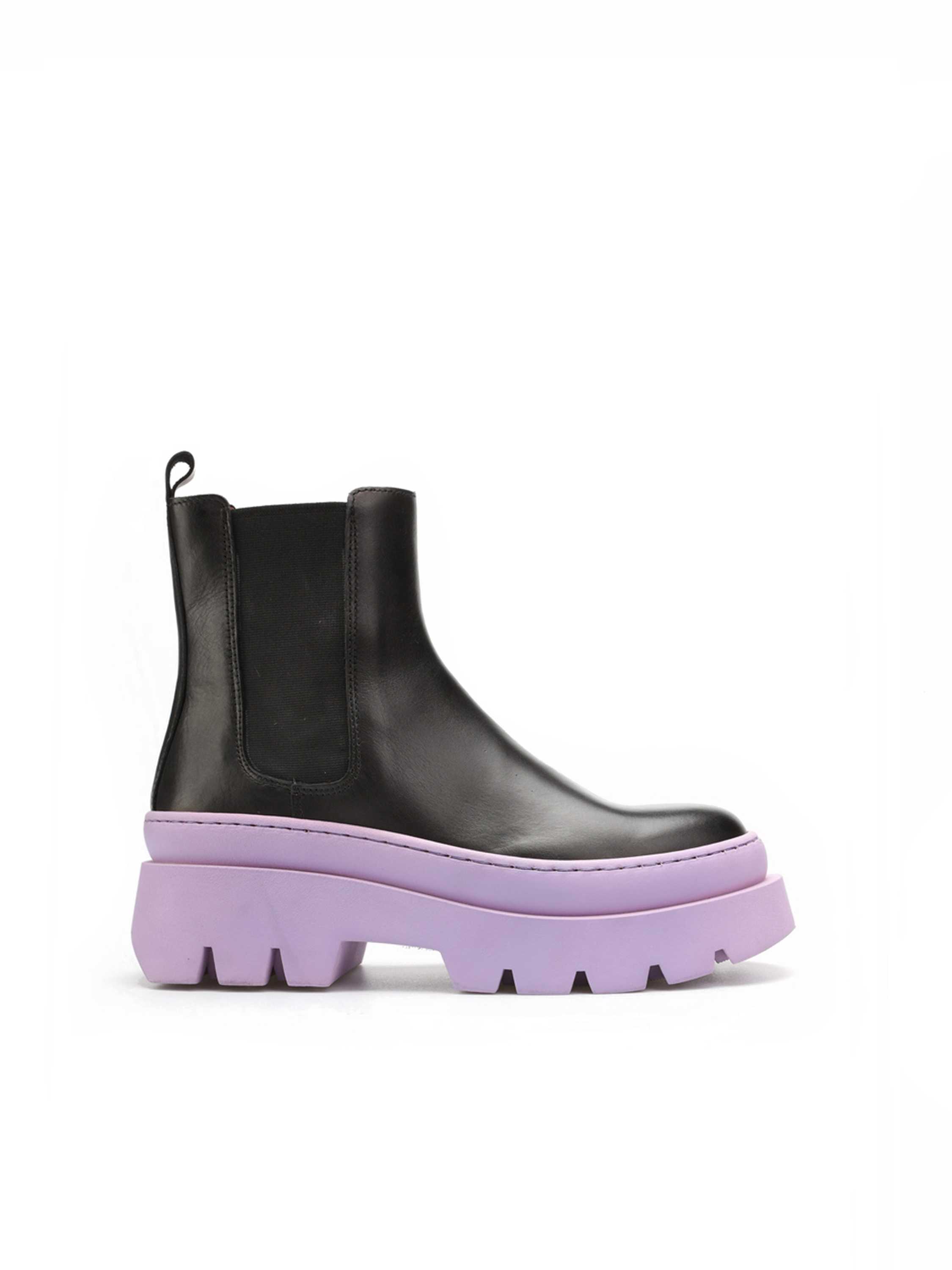 Wsuwane sztyblety w ponadczasowym czarnym kolorze w całości wykonane są z naturalnej skóry licowej. Uwagę przykuwa ultra modna w tym sezonie kolorowa podeszwa na platformie. Odpowiada ona za wygodę i komfort podczas użytkowania. Cholewka za kostkę uzupełniona została o elastyczną wstawkę ułatwiającą szybkie zakładanie i zdejmowanie obuwia.