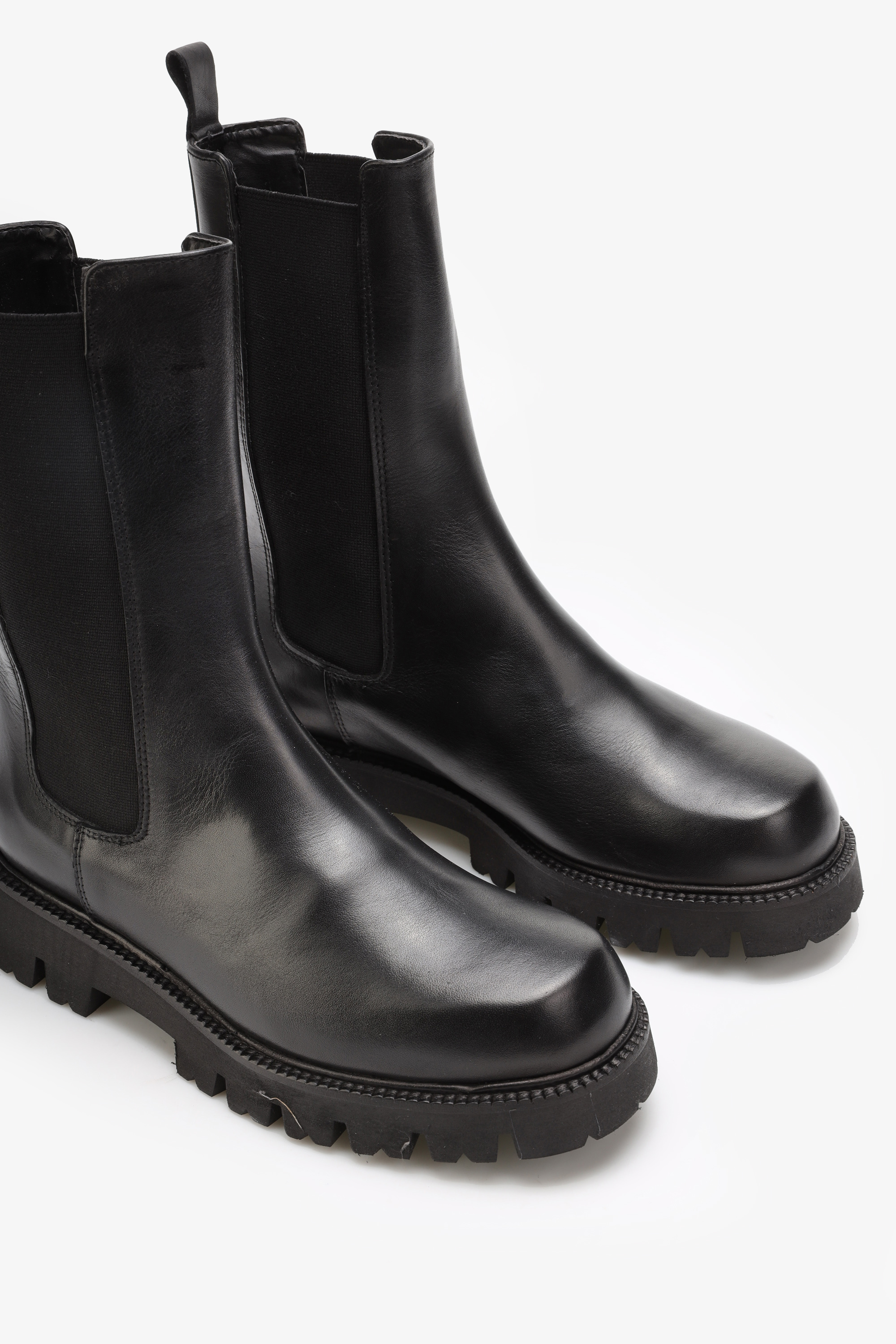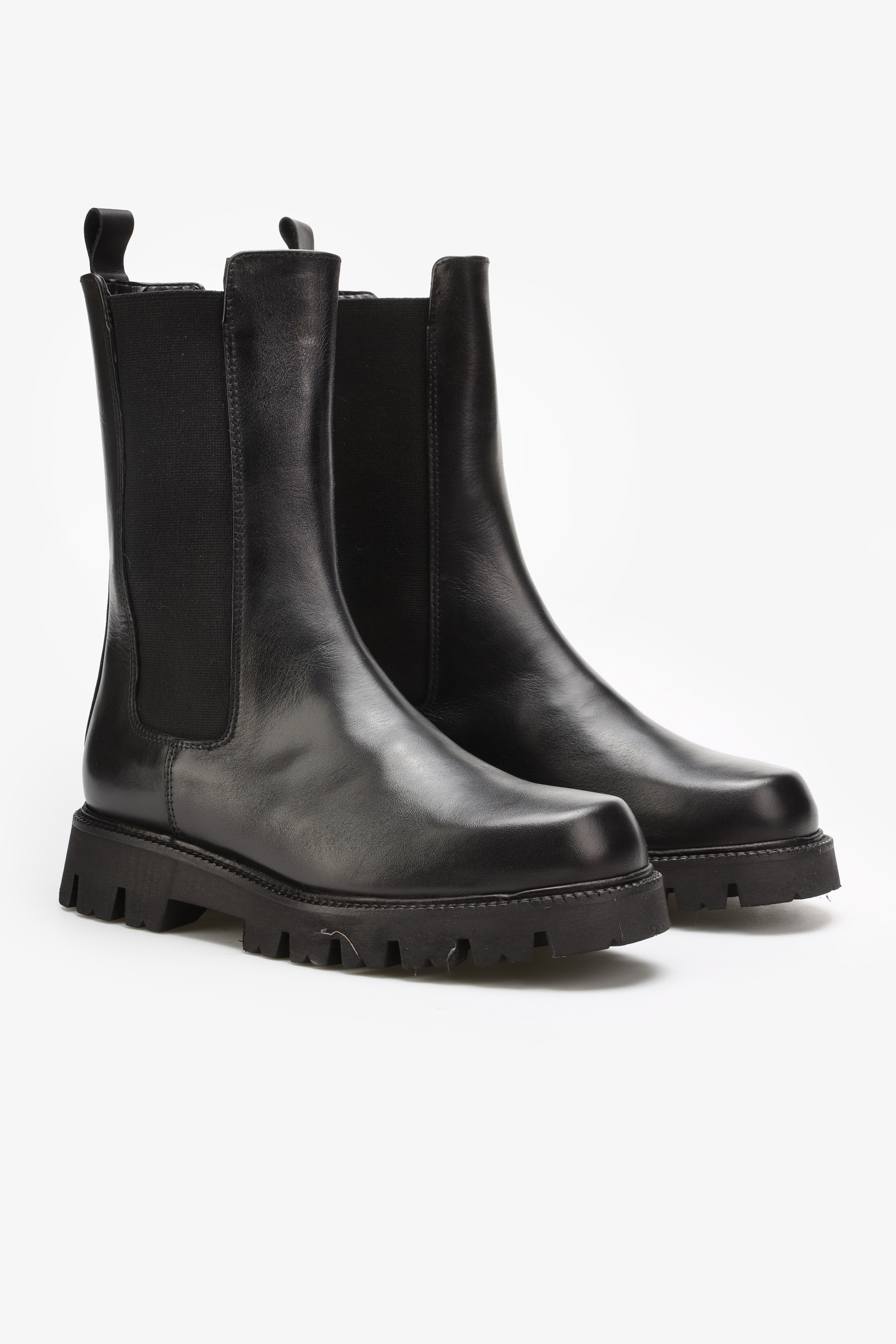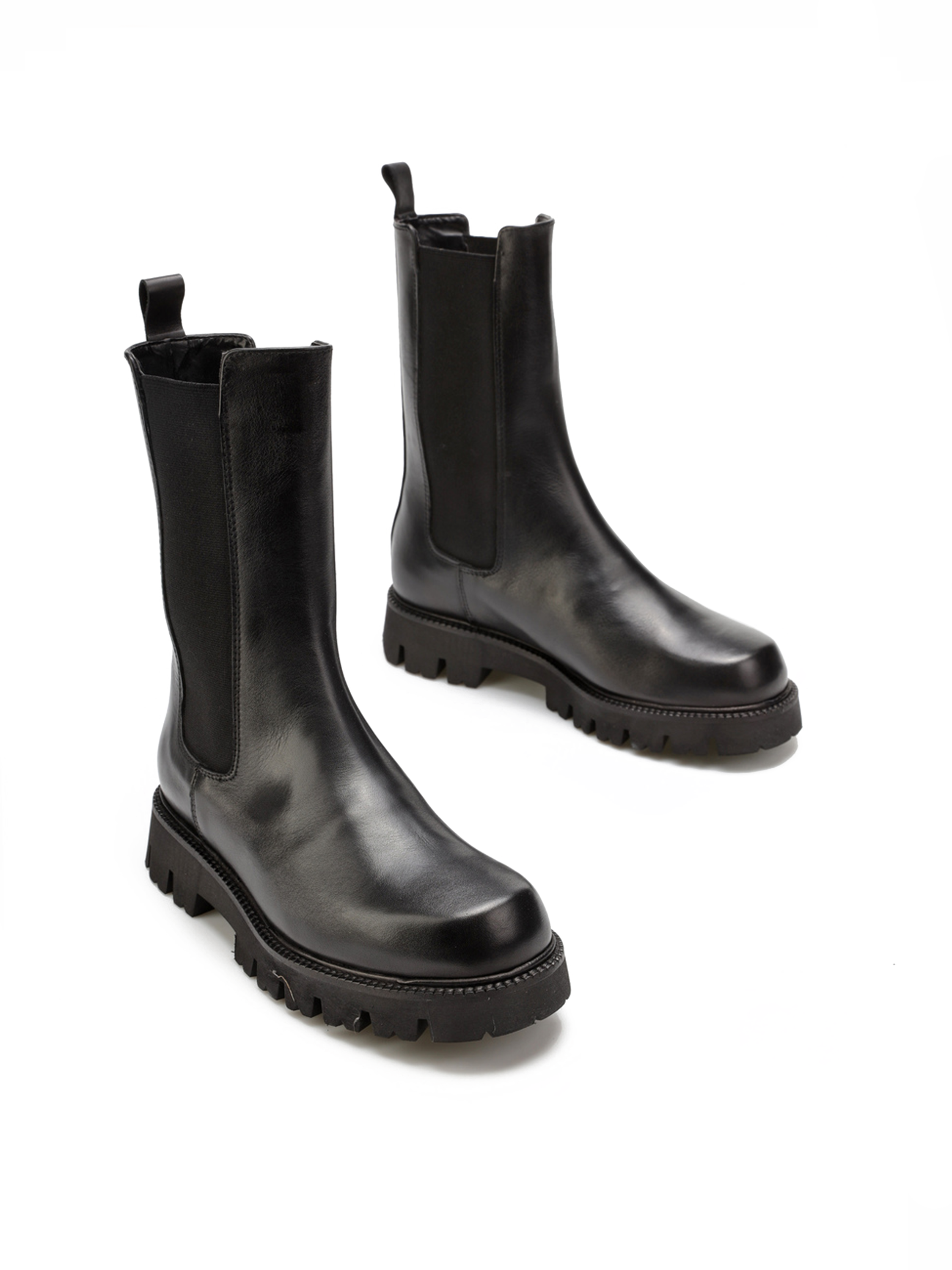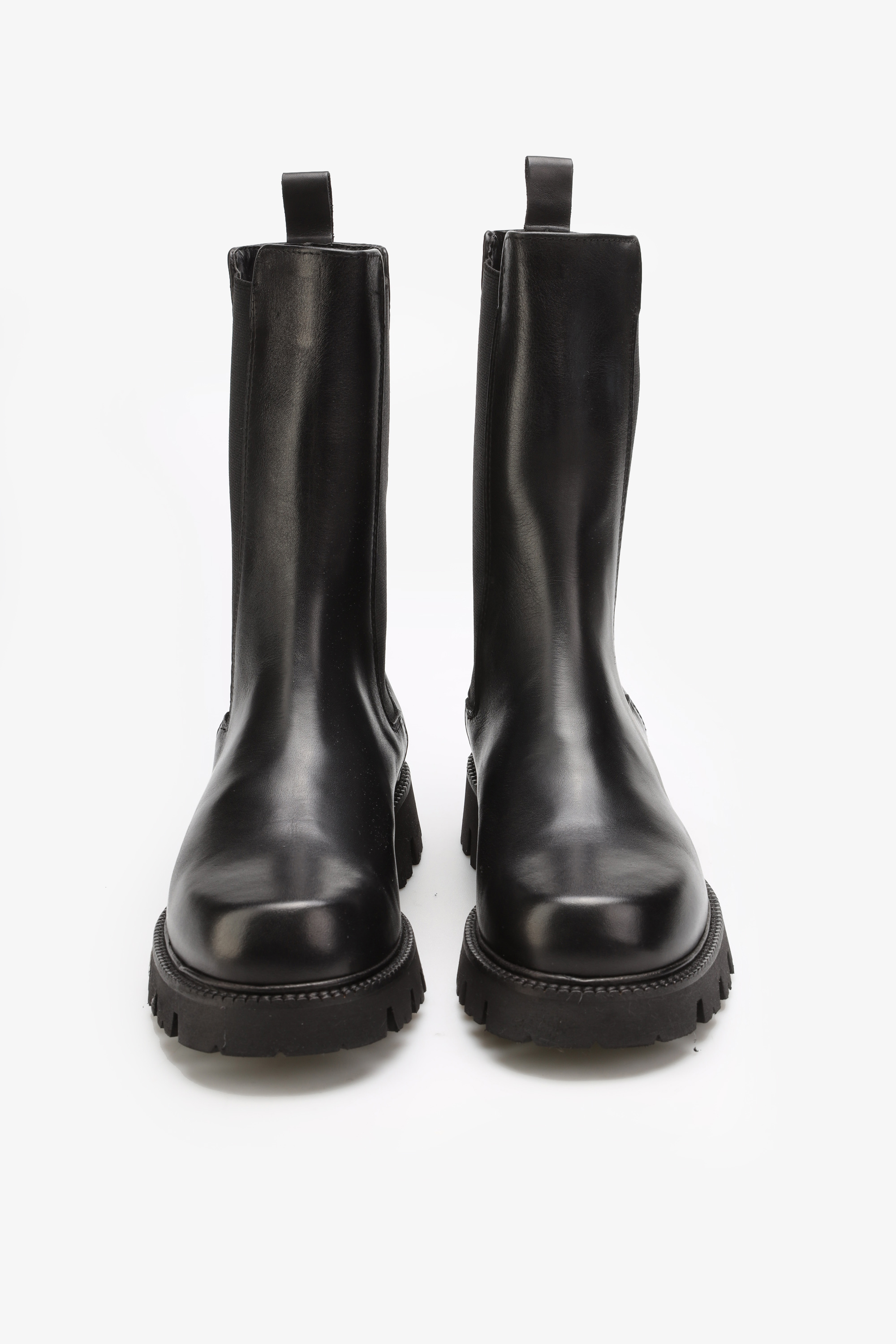 Wsuwane sztyblety w ponadczasowym czarnym kolorze wykonane są z naturalnej skóry licowej. Cholewka za kostkę uzupełniona została o elastyczną wstawkę ułatwiającą zakładanie i zdejmowanie obuwia. Masywna, gruba podeszwa z wyraźnie zaznaczonym bieżnikiem odpowiada za wygodę i komfort podczas użytkowania.