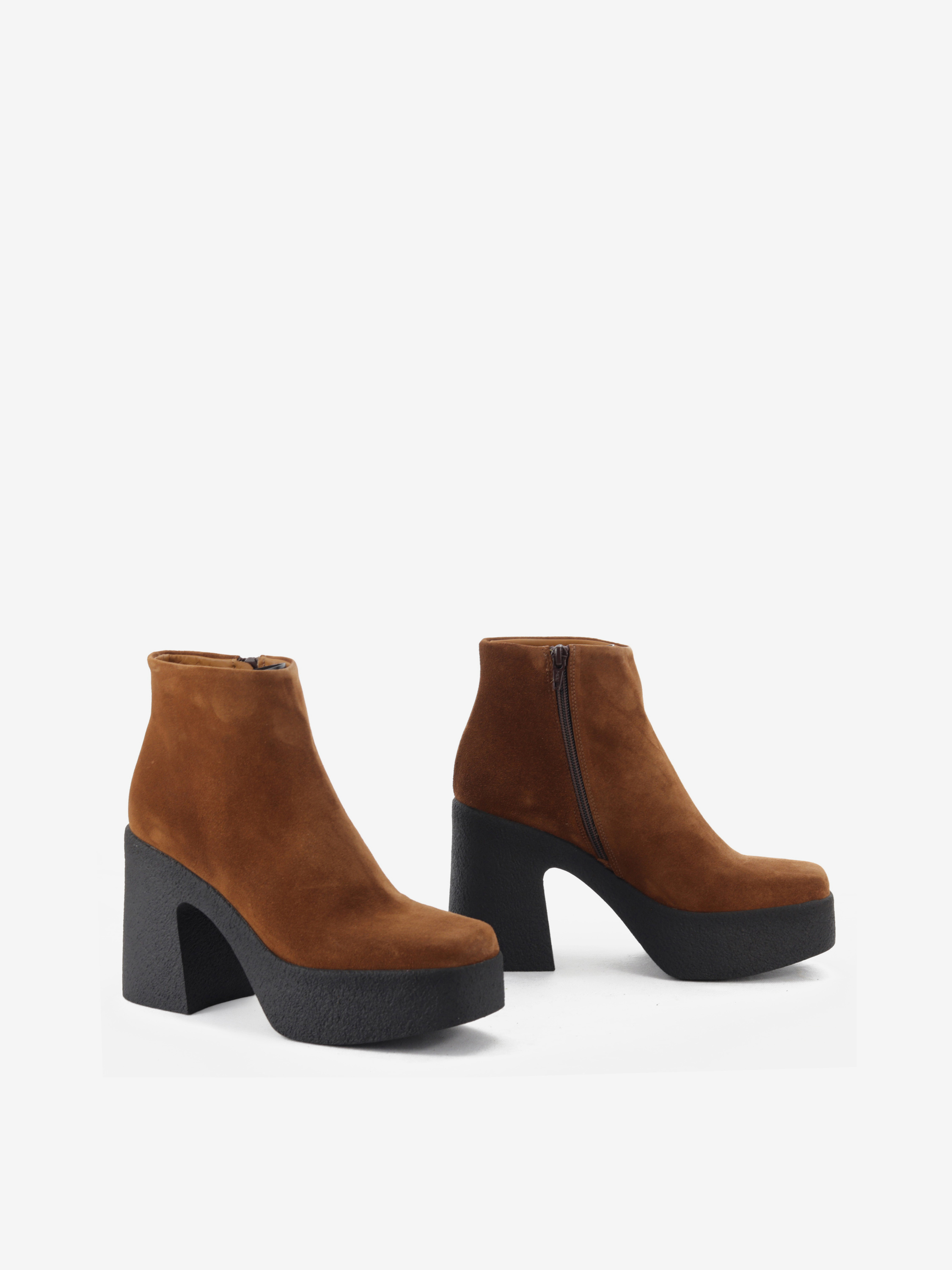 Piękne botki w jesiennym kolorze na masywnej podeszwie to propozycja dla kobiet ceniących sobie wygodę oraz najnowsze trendy w sezonie AW20. Zamszowa cholewka w połączeniu ze skórzanym wnętrzem gwarantuje komfort i wytrzymałość. 4 cm platforma zapewni stabilny krok i odpowiednią amortyzację. Świetnie prezentować się będą zestawione zarówno ze spodniami jak i sukienkami.