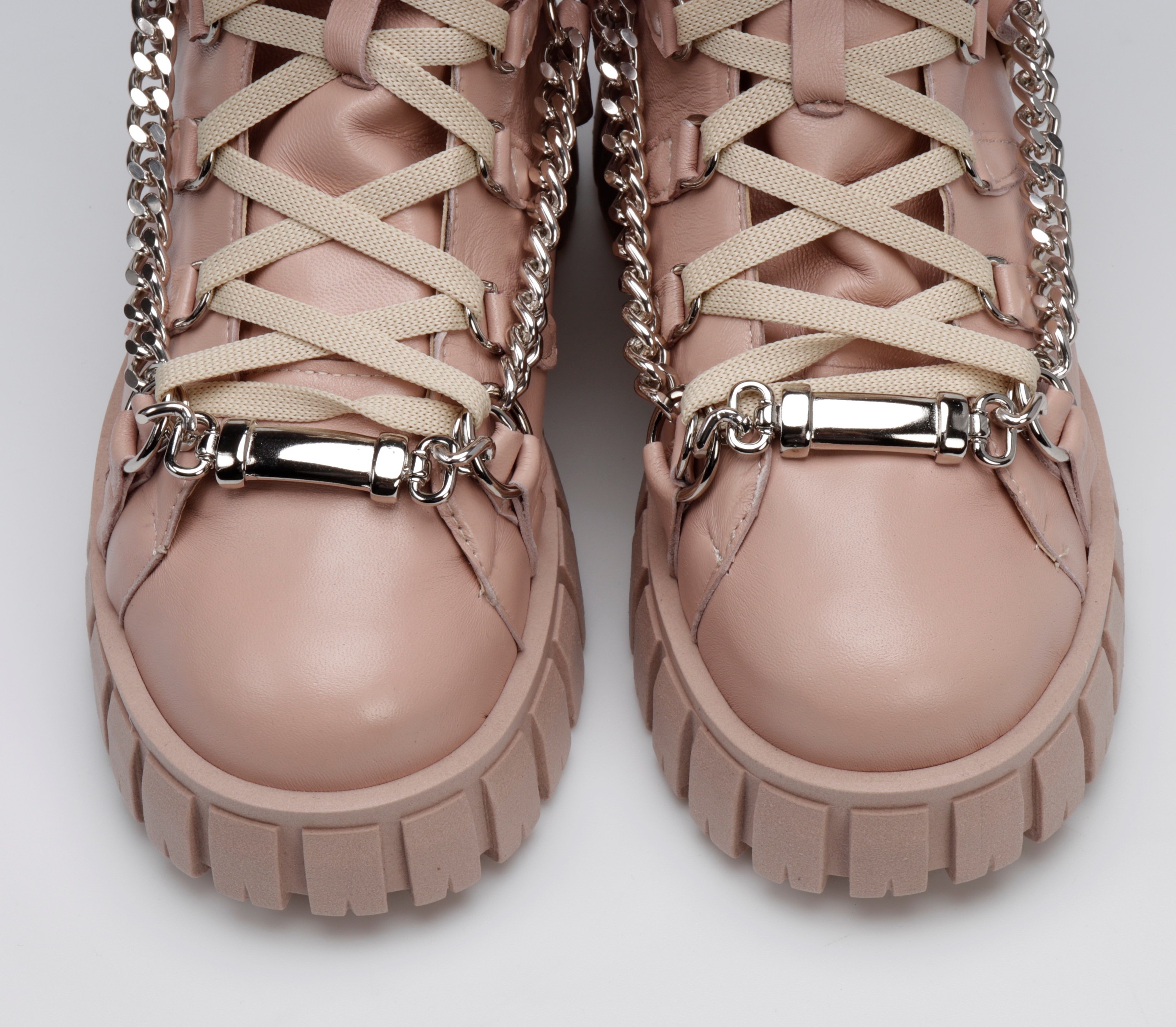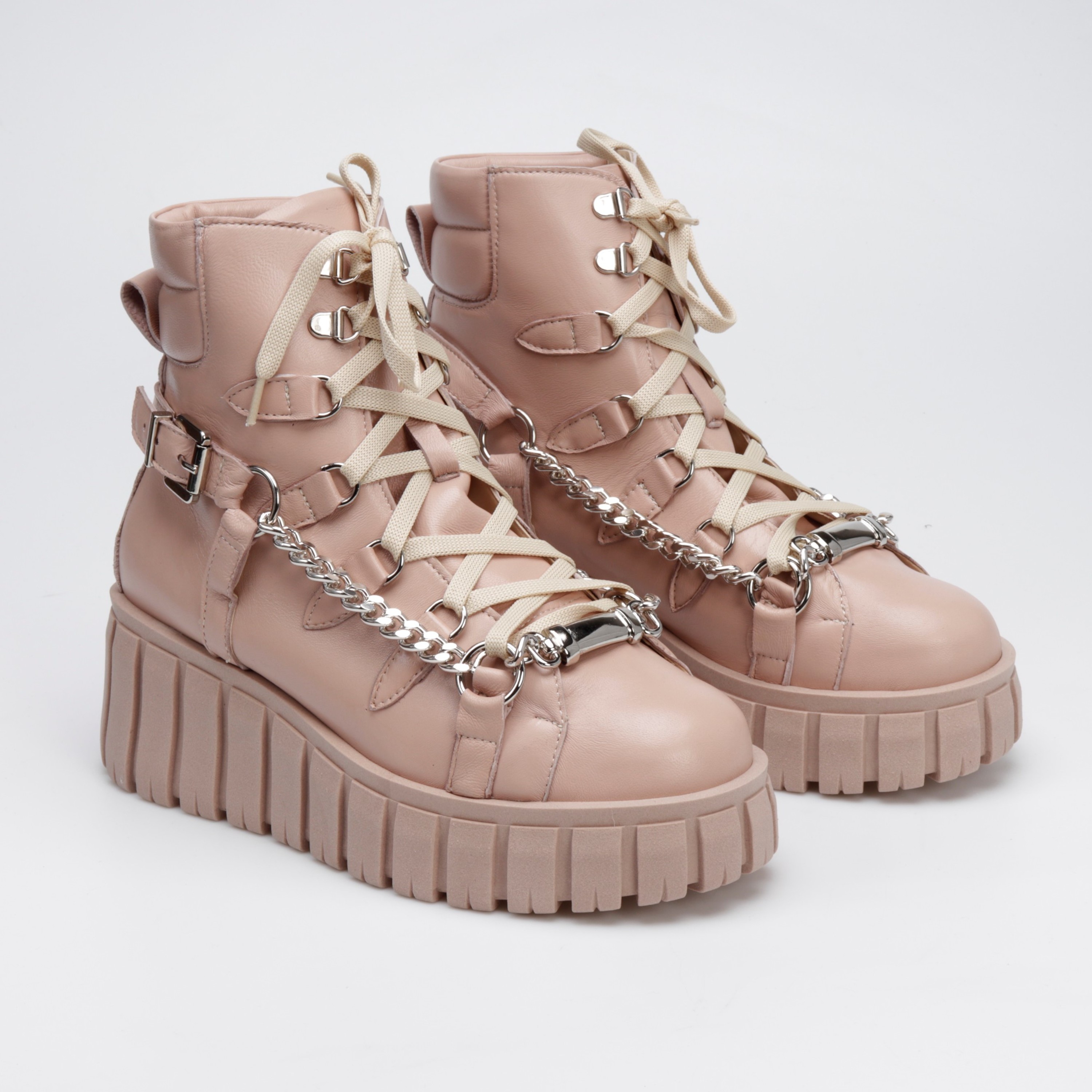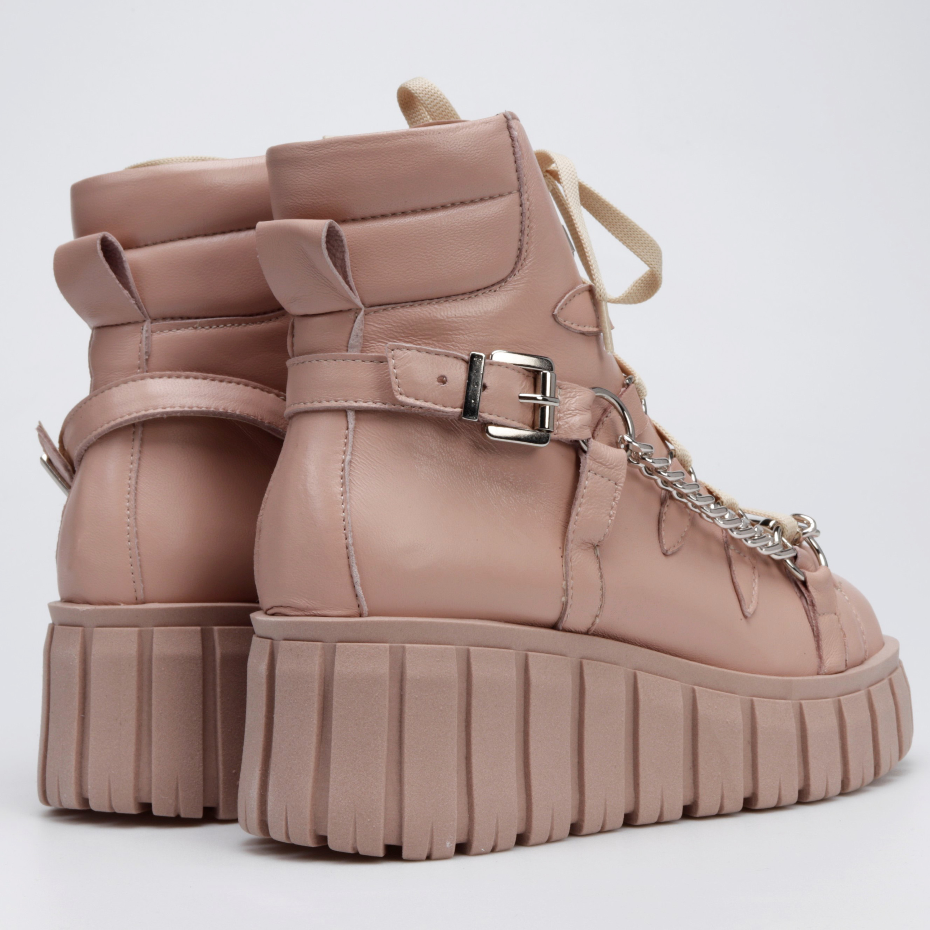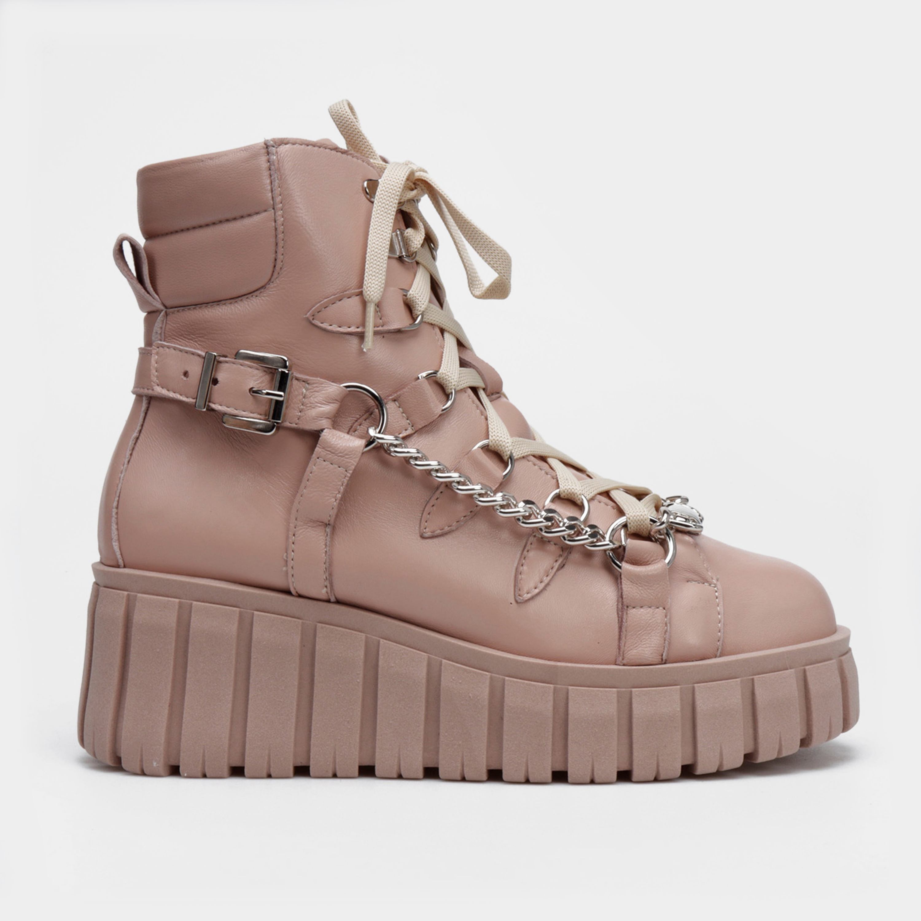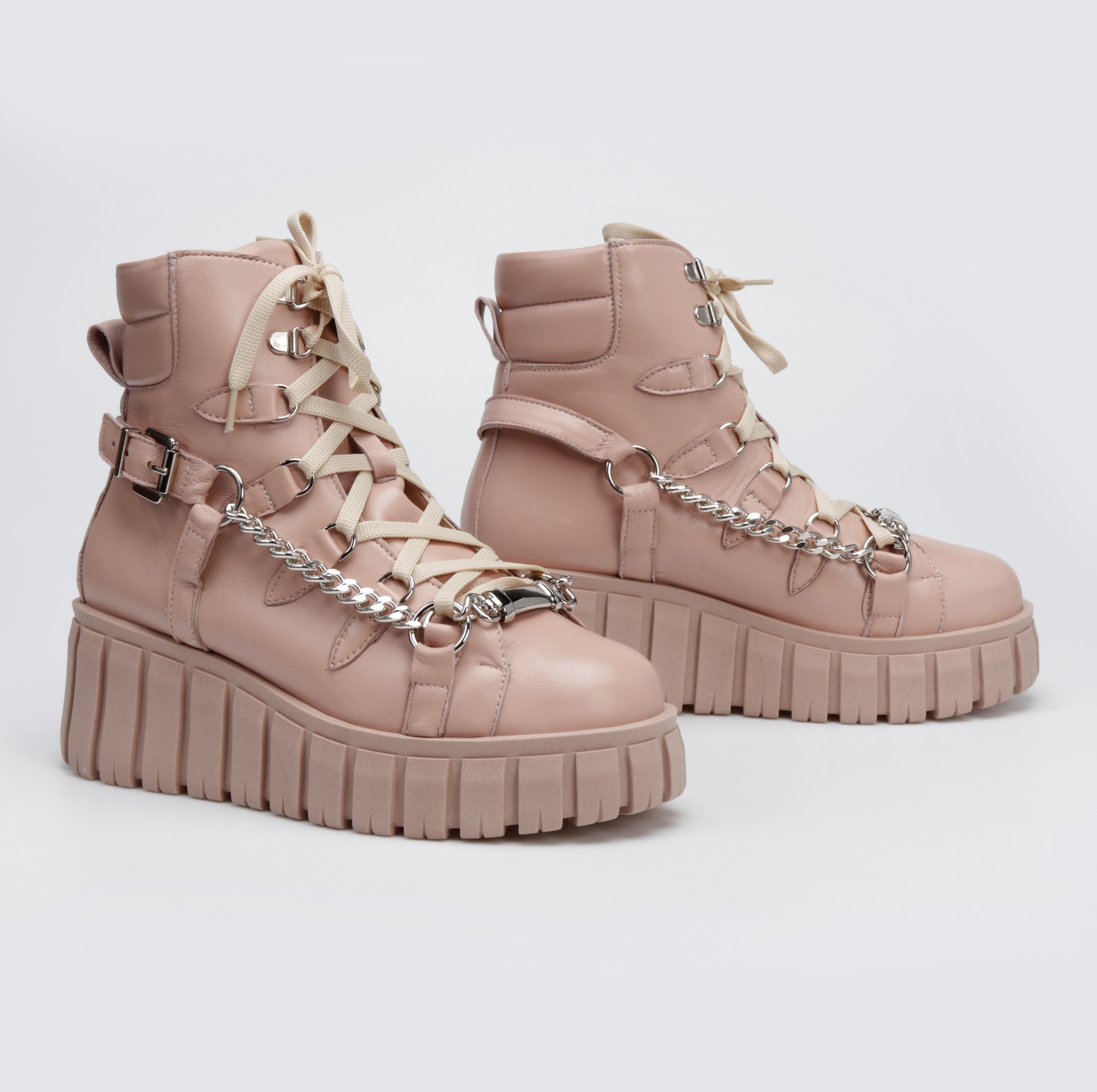 Stylowe botki w sportowym stylu to limitowana propozycja od HEGO'S Milano dla każdej kobiety ceniącej najnowsze trendy i wygodę. Model FUL8 w całości wykonany został z włoskiej skóry naturalnej, która nie tylko charakteryzuje się wytrzymałością, ale również zapewnia wysoki komfort użytkowania. Swoją wyjątkowość zawdzięczają przykuwającej wzrok podeszwie na platformie, a detal w postaci srebrnego łańcucha zdecydowanie dodaje im charakteru.
