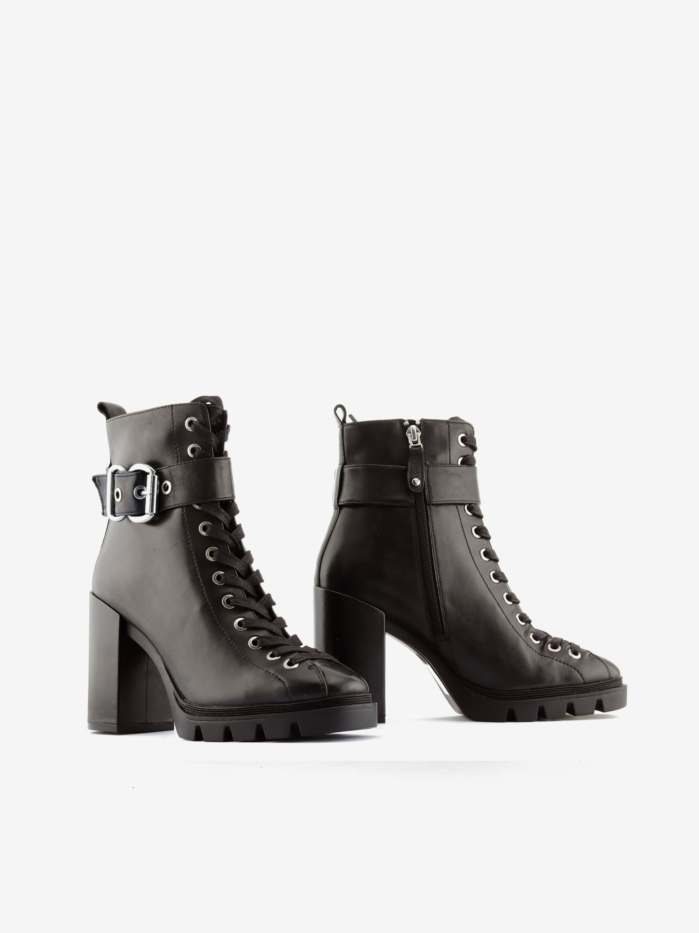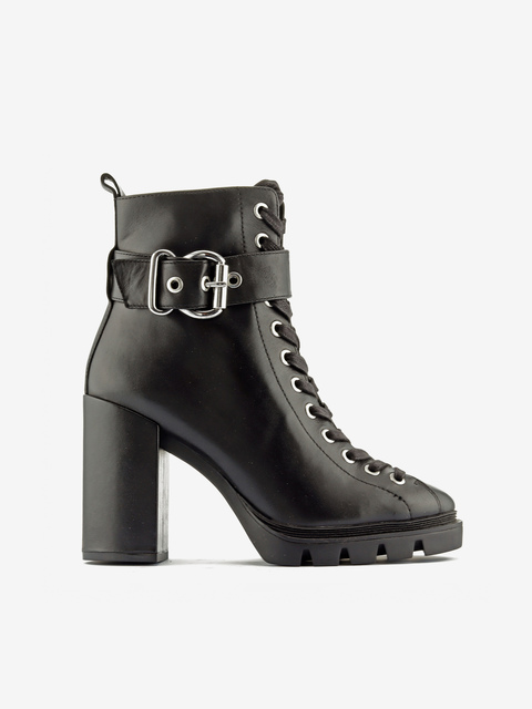 Botki HEGO'S wykonane z najwyższej jakości skóry naturalnej, z dbałością o każdy detal, sznurowane, po wewnętrznej stronie suwak, wokół kostki regulowany pasek z klamrą. Botki osadzone na słupku o wyskości 10 cm.