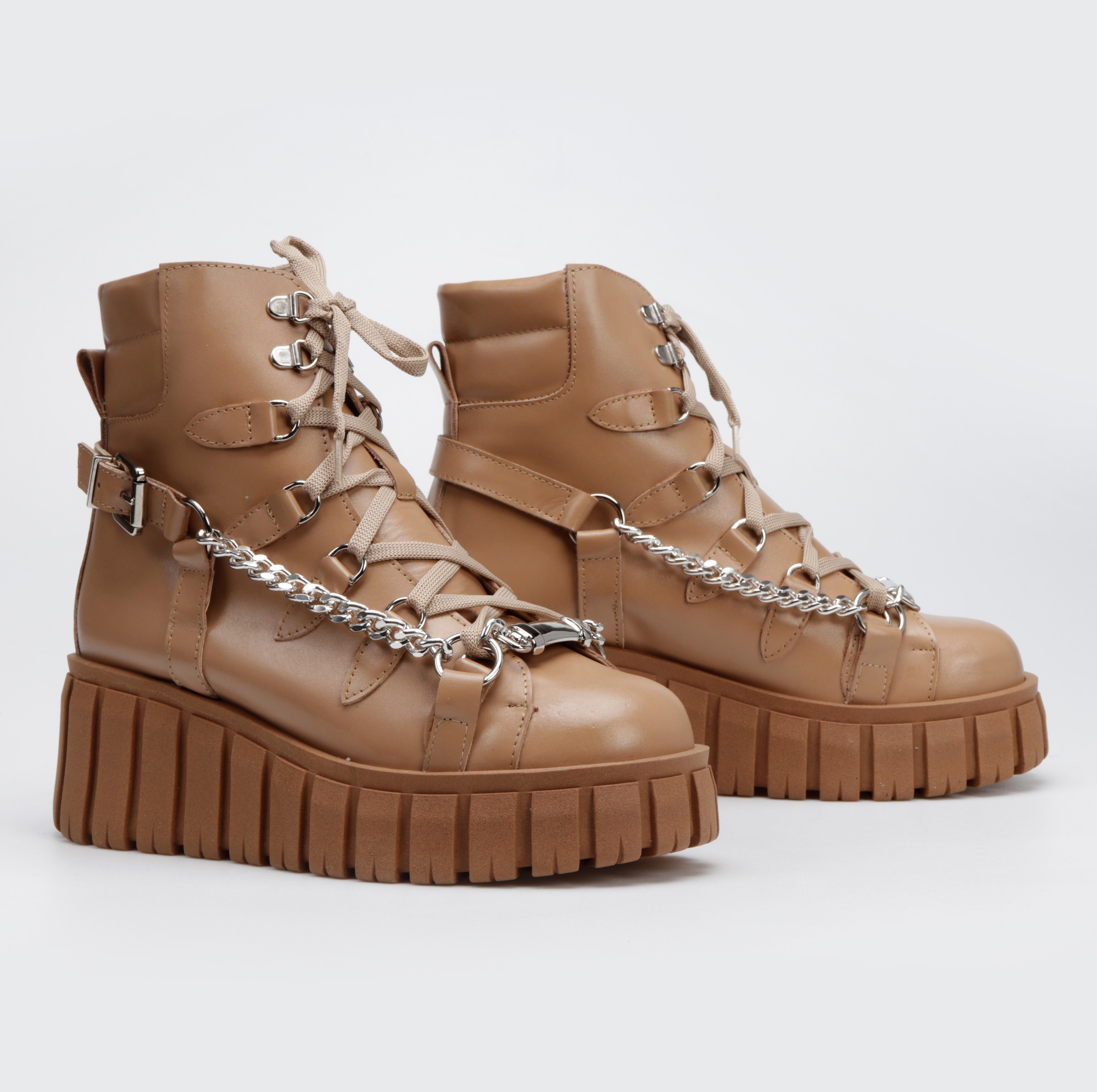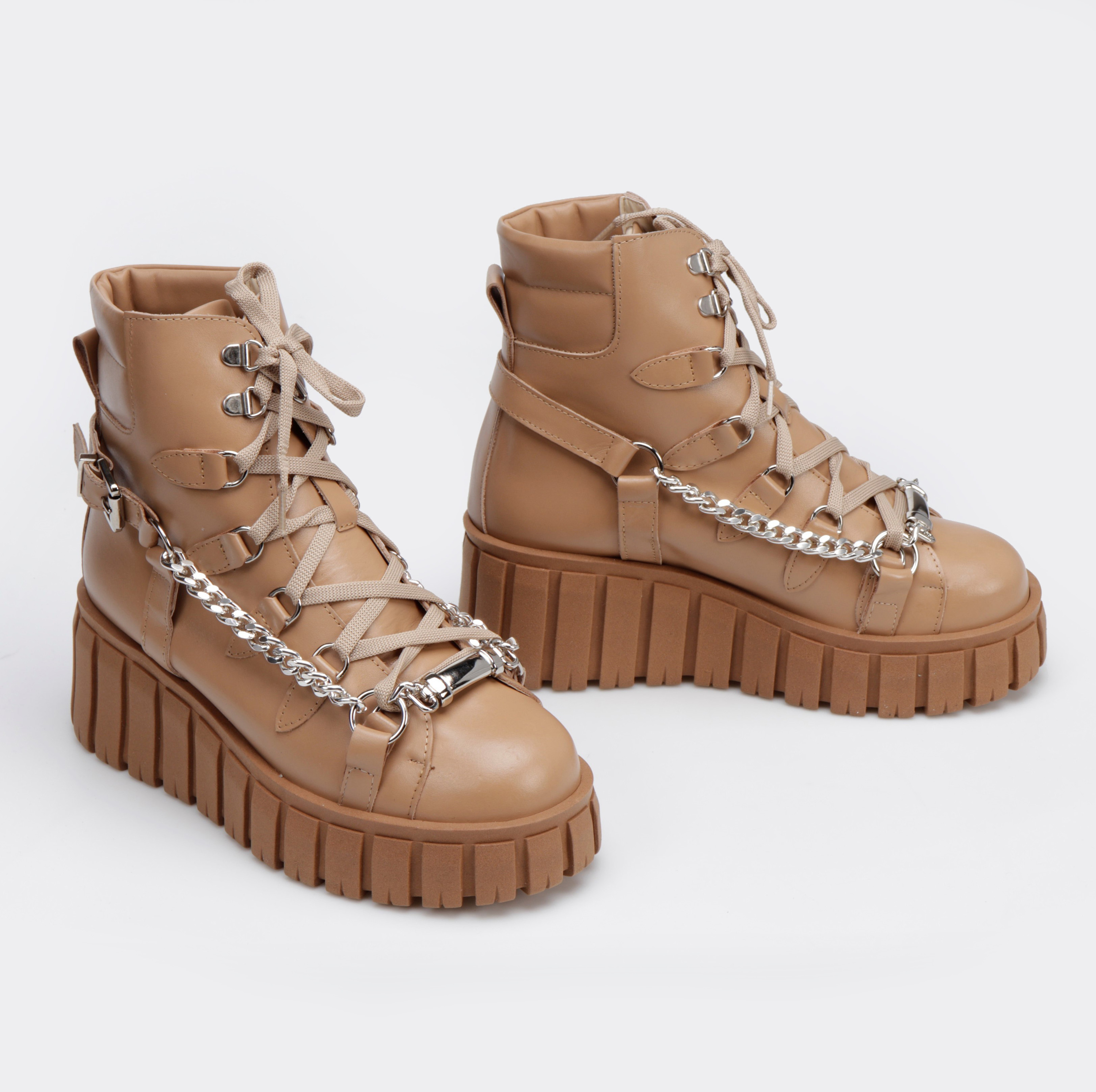 Stylowe botki w sportowym stylu to limitowana propozycja od HEGO'S Milano dla każdej kobiety ceniącej najnowsze trendy i wygodę. Model FUL8 w całości wykonany został z włoskiej skóry naturalnej, która nie tylko charakteryzuje się wytrzymałością, ale również zapewnia wysoki komfort użytkowania. Swoją wyjątkowość zawdzięczają przykuwającej wzrok podeszwie na platformie, a detal w postaci srebrnego łańcucha zdecydowanie dodaje im charakteru.