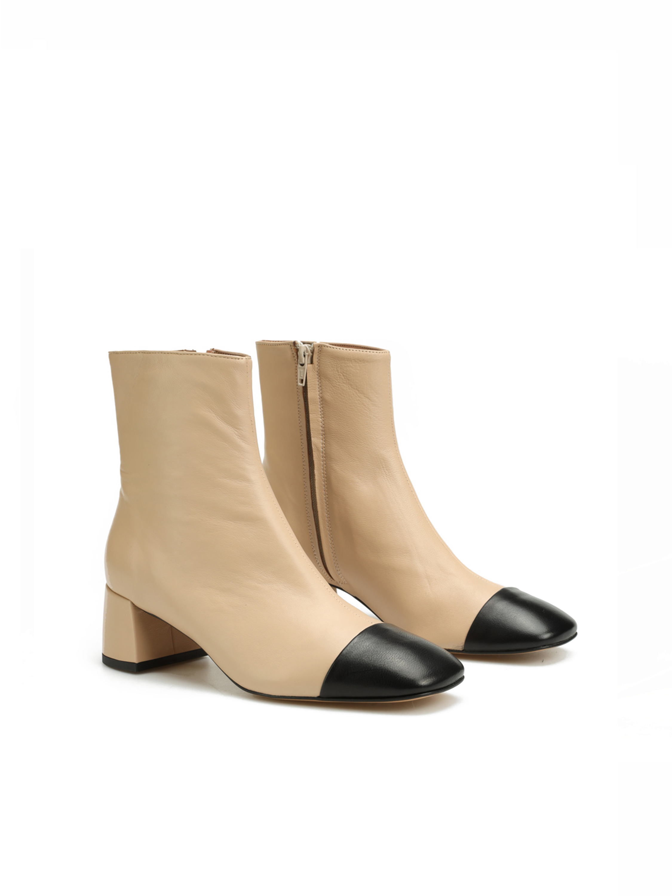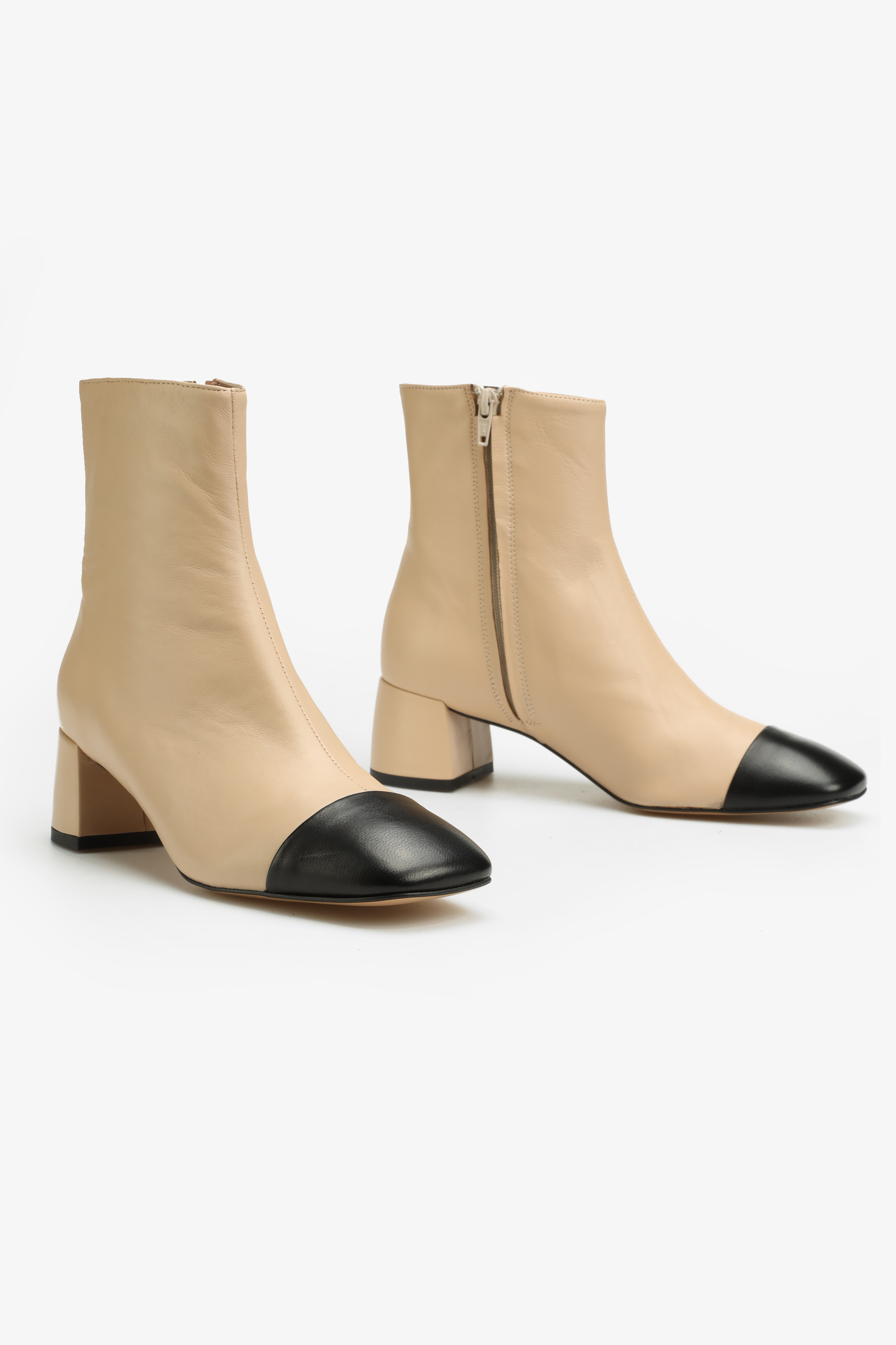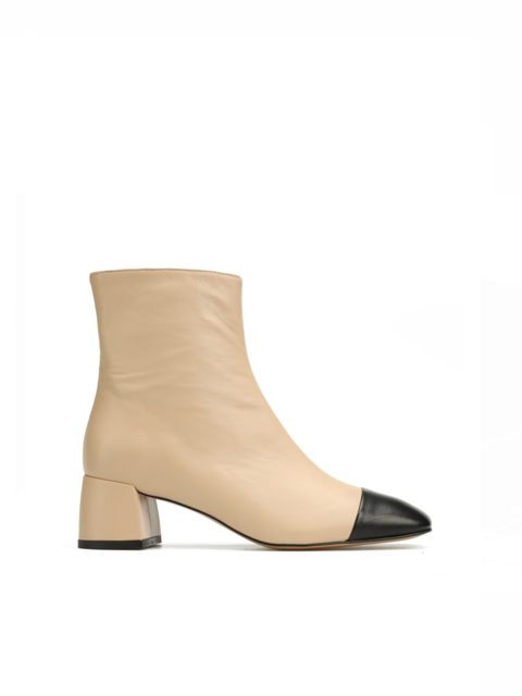 Beżowe botki w całości wykonane są z naturalnej skóry NAPPA. Cholewka za kostkę posiada zamek błyskawiczny ułatwiający zakładanie i zdejmowanie obuwia. Kwadratowy nosek w stylu Chanel to Top trend sezonu. Niewysoki obcas na klocku w połączeniu ze skórzaną wkładką odpowiadają za wygodę i komfort.