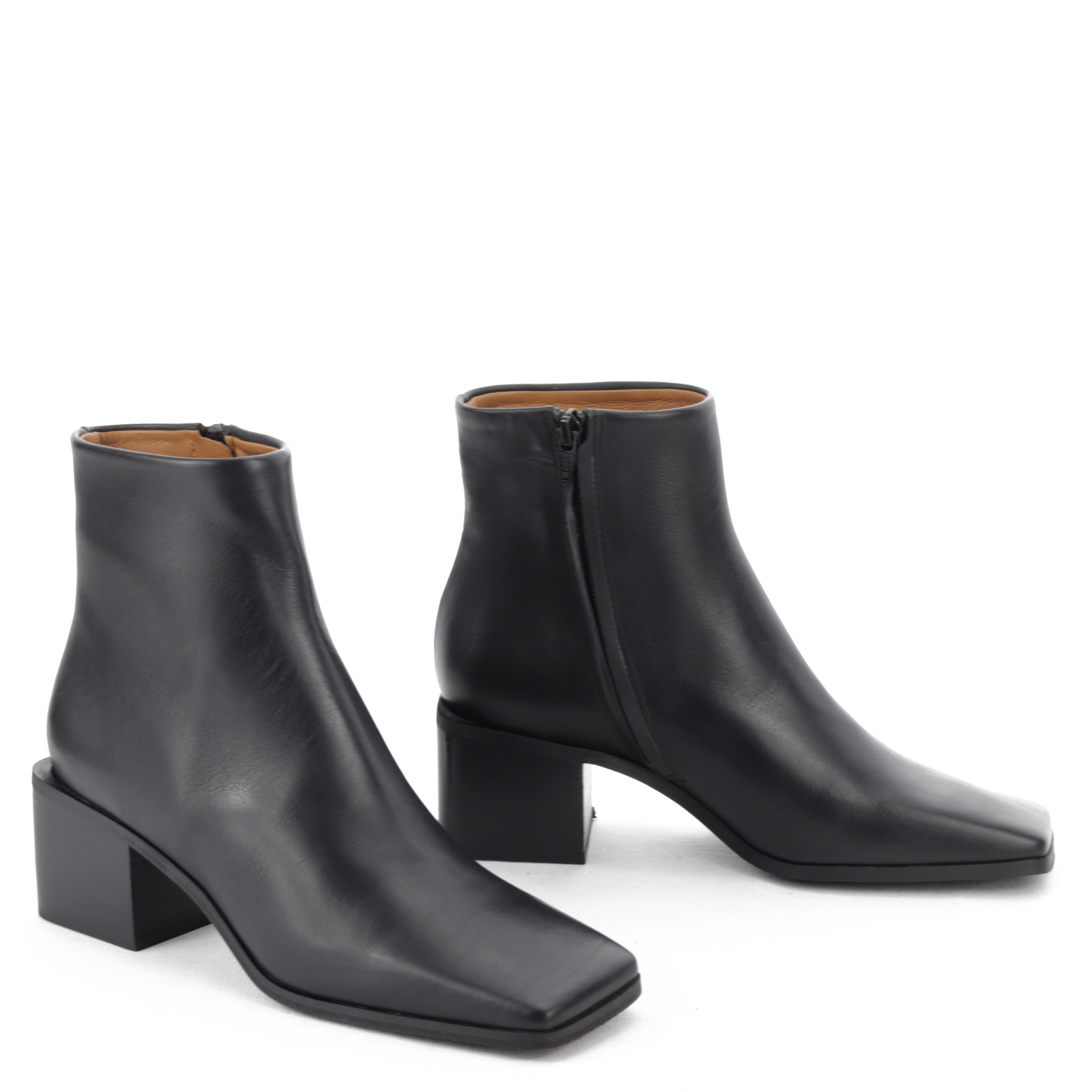 Klasyczne, czarne botki muszą znaleźć się w szafie każdej, eleganckiej kobiety w sezonie jesienno-zimowym. W całości wykonane ze skóry gwarantują komfort oraz wytrzymałość. 5 cm, wygodny obcas zapewni stabilny krok. Ponadczasowy design wzbogacony został o wpisujący się w najnowsze trendy kwadratowy nosek. To uniwersalna propozycja, która pasować będzie do wielu stylizacji.