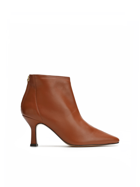 Botki damskie wykonane z wysokiej jakości skóry licowej to klasyczny fason w uniwersalnym kolorze. Elegancki nosek w szpic i cienki,wygodny obcas podkreślą każdą kobiecą figurę. Minimalistyczny krój o wyjątkowym charakterze będzie doskonałą bazą wyjściową codziennych stylizacji oraz biznesowych spotkań.
