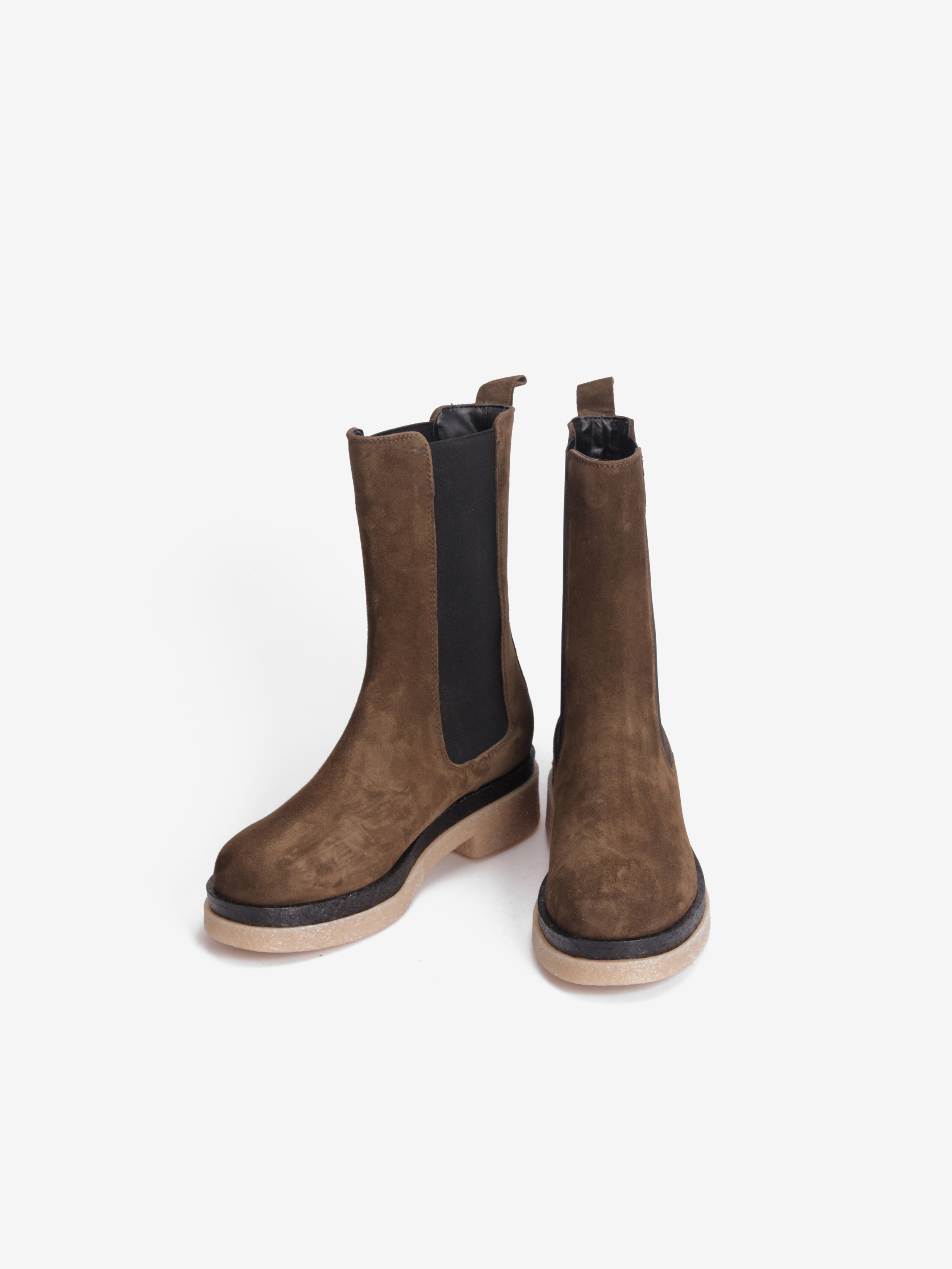 Pięknie skrojone sztyblety w limitowanym kolorze z charakterystycznymi gumkami po bokach podbiją serca każdej miłośniczki wygody oraz najnowszych trendów. Zamszowa cholewka w połączeniu ze skórzaną wkładką sprawia, że but idealnie leży na nodze gwaranując wysoki komfort użytkowania. Gumowa podeszwa o jaśniejszym kolorze nie tylko dodaje im charakteru, ale również zapewna należytą amortyzację oraz pewny krok w każdych warunkach.