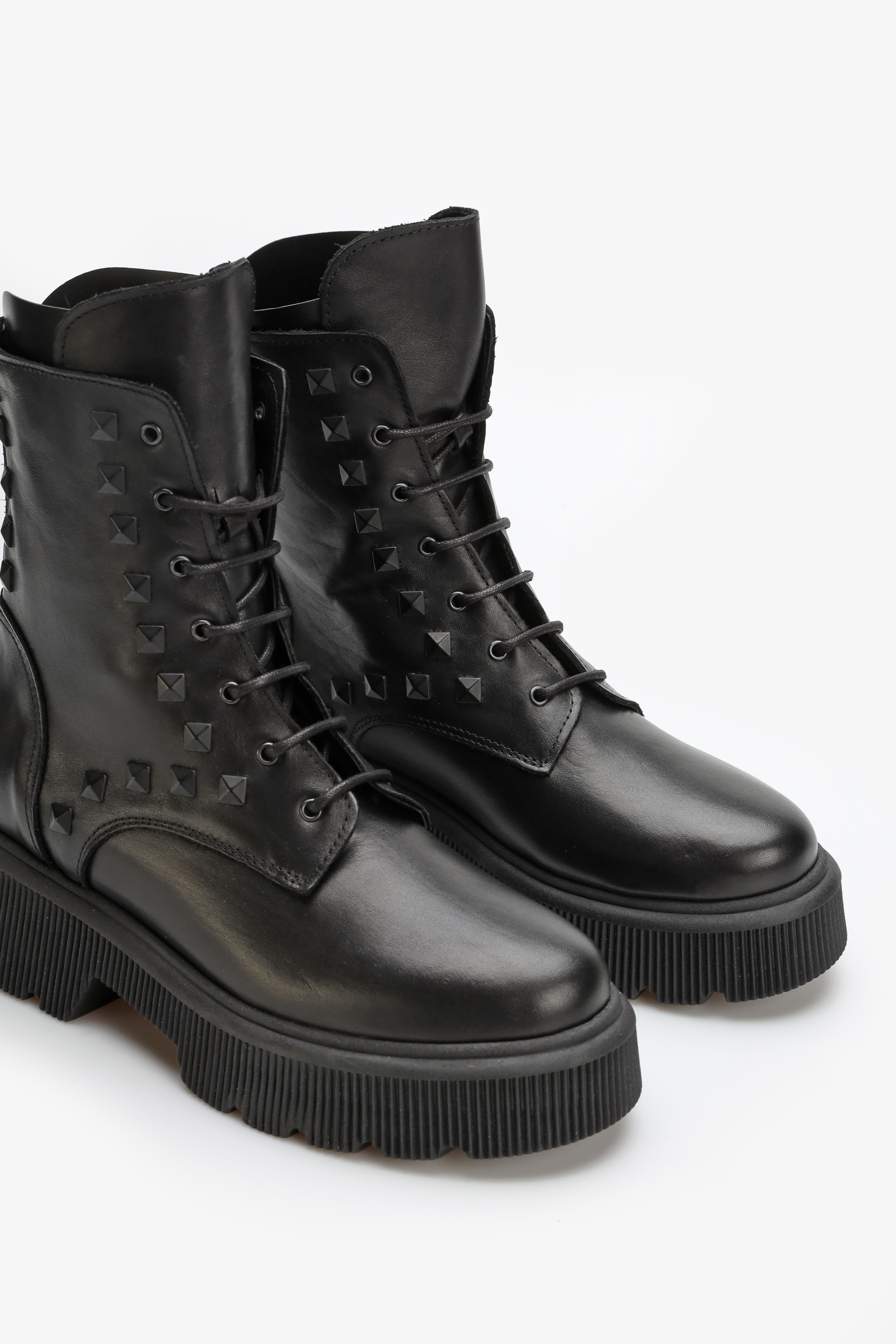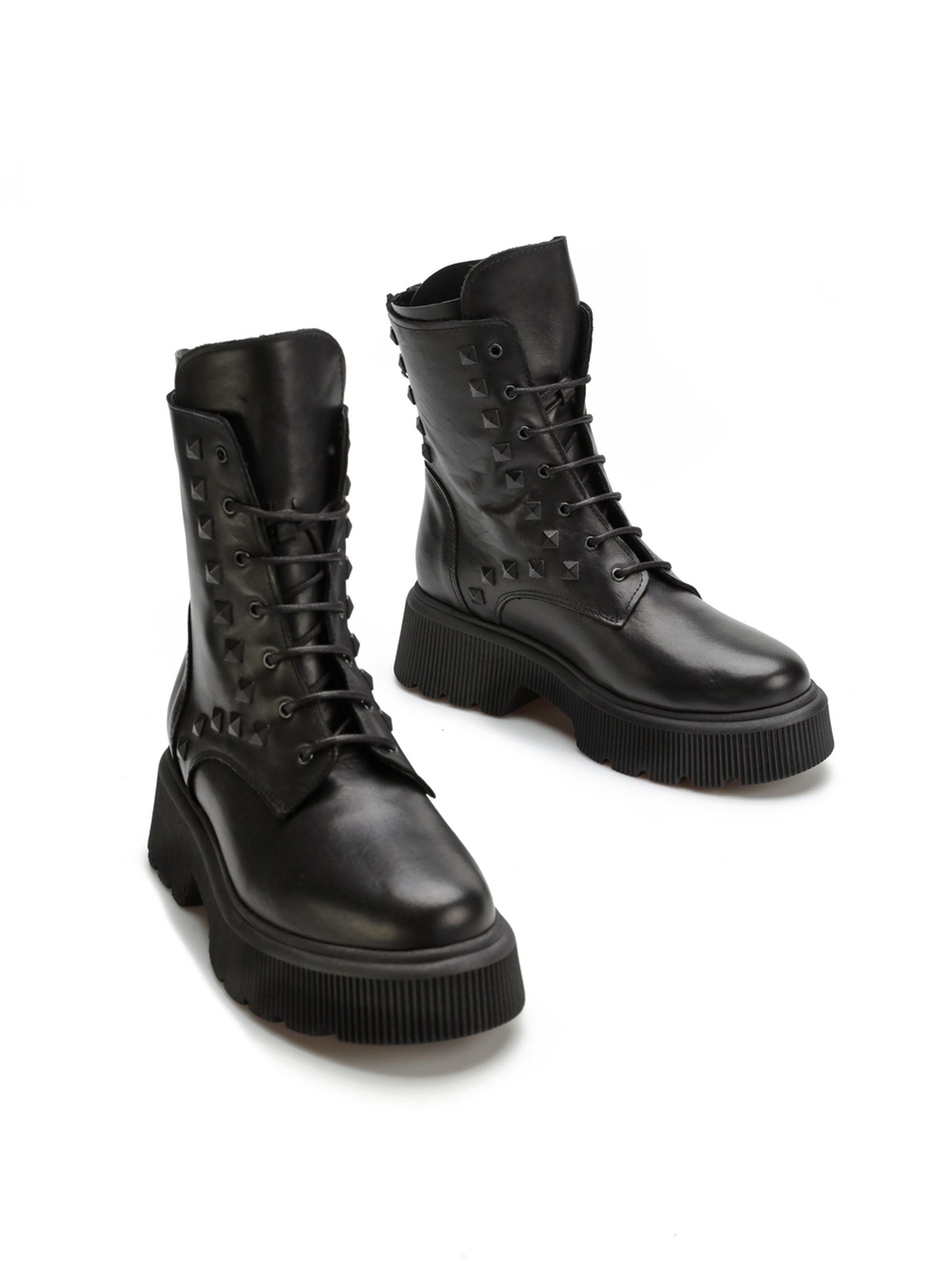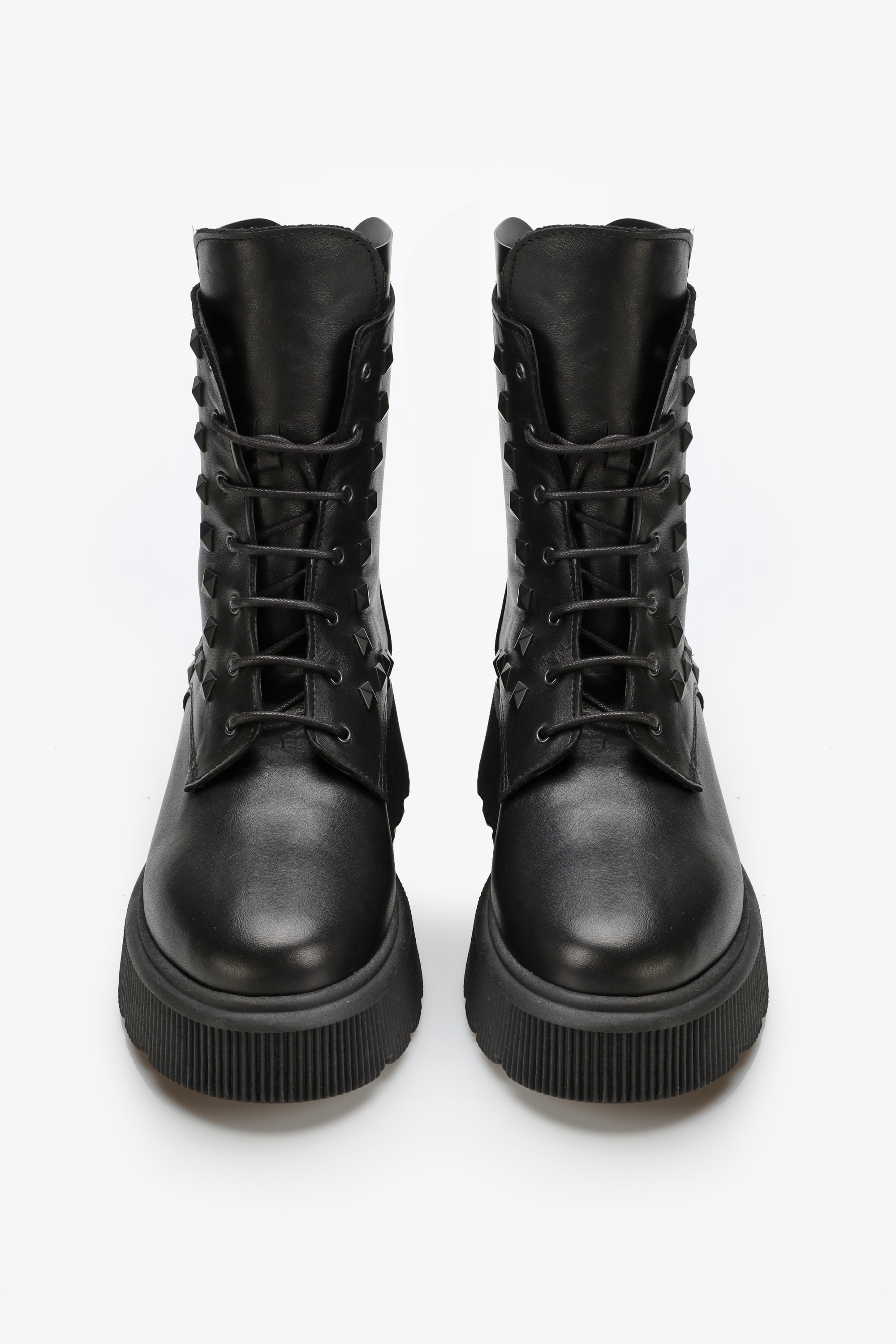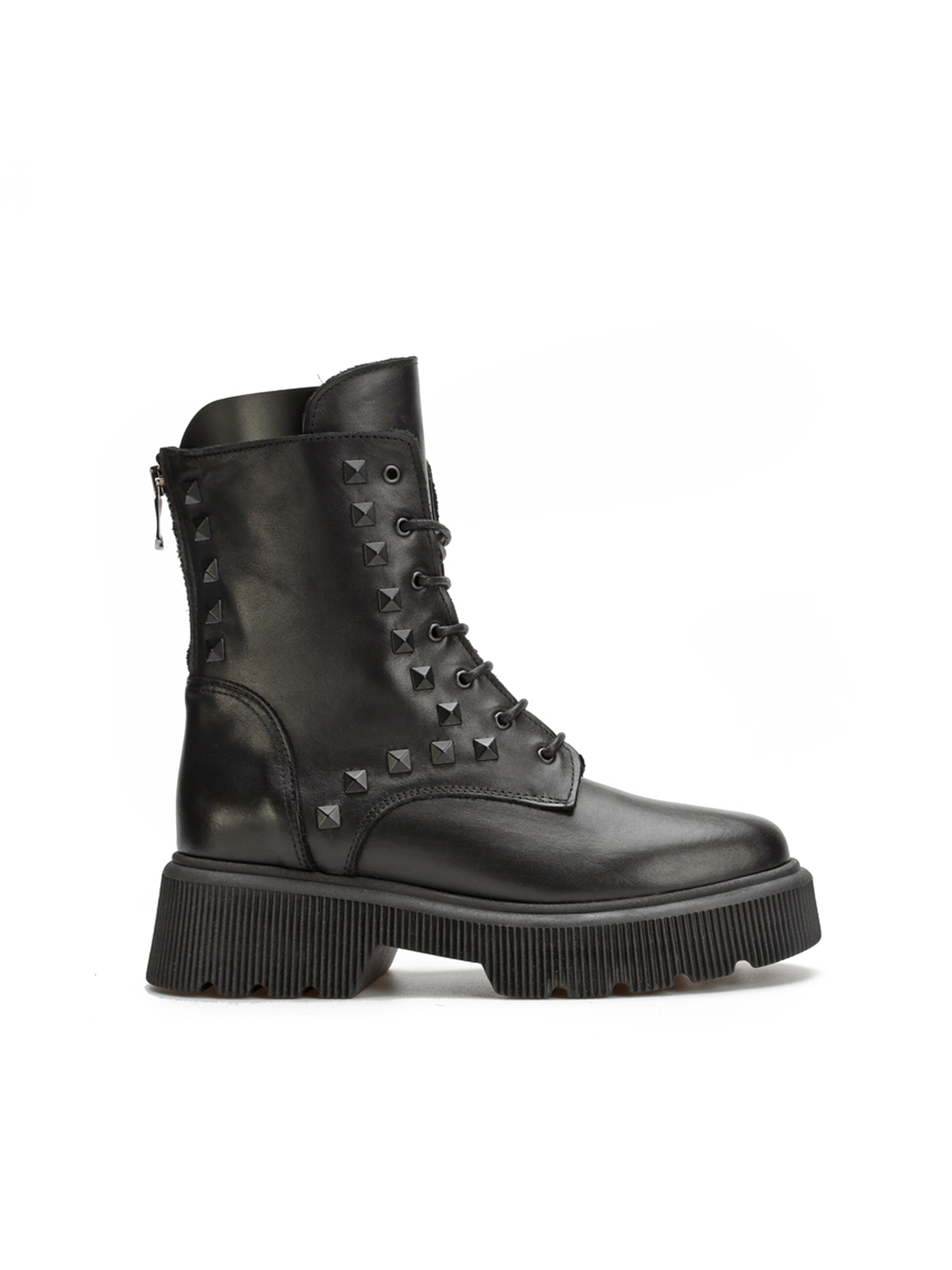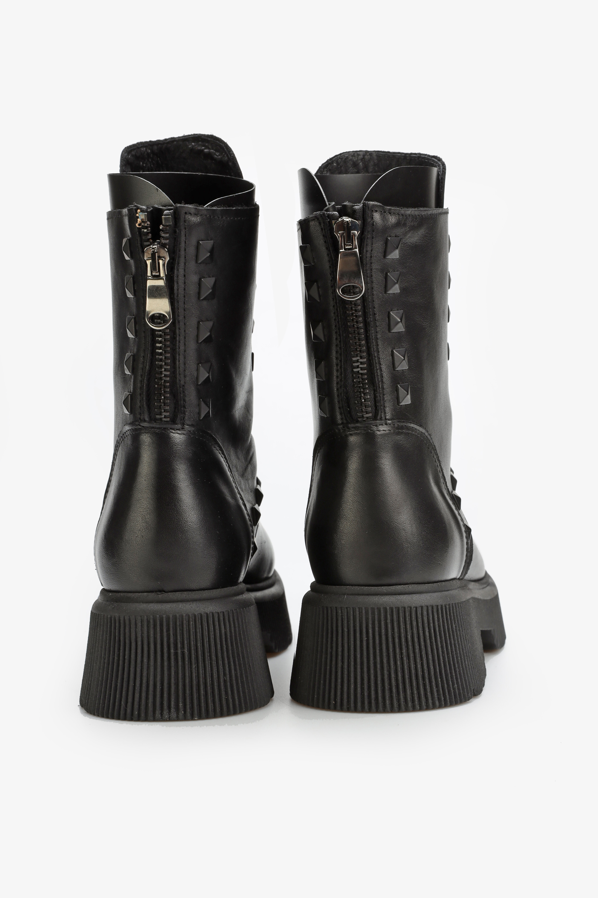 Cholewka sięgająca ponad kostkę wykonana jest z wysokiej jakości włoskiej skóry licowej , która podnosi wytrzymałość i estetyczny wygląd obuwia. Oprócz klasycznego sznurowania botki wyposażone są w zamek błyskawiczny ułatwiający ich zakładanie ,stanowiący zarówno ciekawą ocdobę modelu BA701/B. Osadzone na grubej, trepowej podeszwie sprawią, że ten model podkreśli niejeden modowy zestaw.