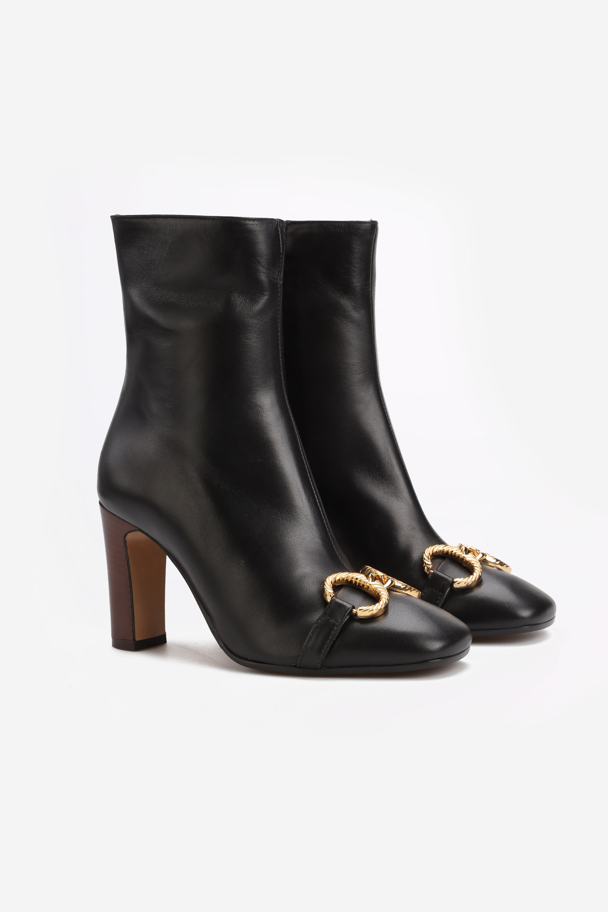 Wyszukane botki HEGO'S zostały wykonane z najwyższej jakości skóry cielęcej. Stanowią wyraz nowoczesnego designu przez połączenie stonowanej cholewki w kolorze czarnym z kontrastującym brązowym obcasem. 9.5 cm obcas mimo swojej wysokości jest niezwykle stabilny. Klasycznie ścięty czubek został podkreślony przez biżuteryny złoty łańcuch, co sprawia, że znajdą perfekcyjne zastosowanie na każdą okazję oraz nadadzą całej stylizacji szyku i elegancji.
