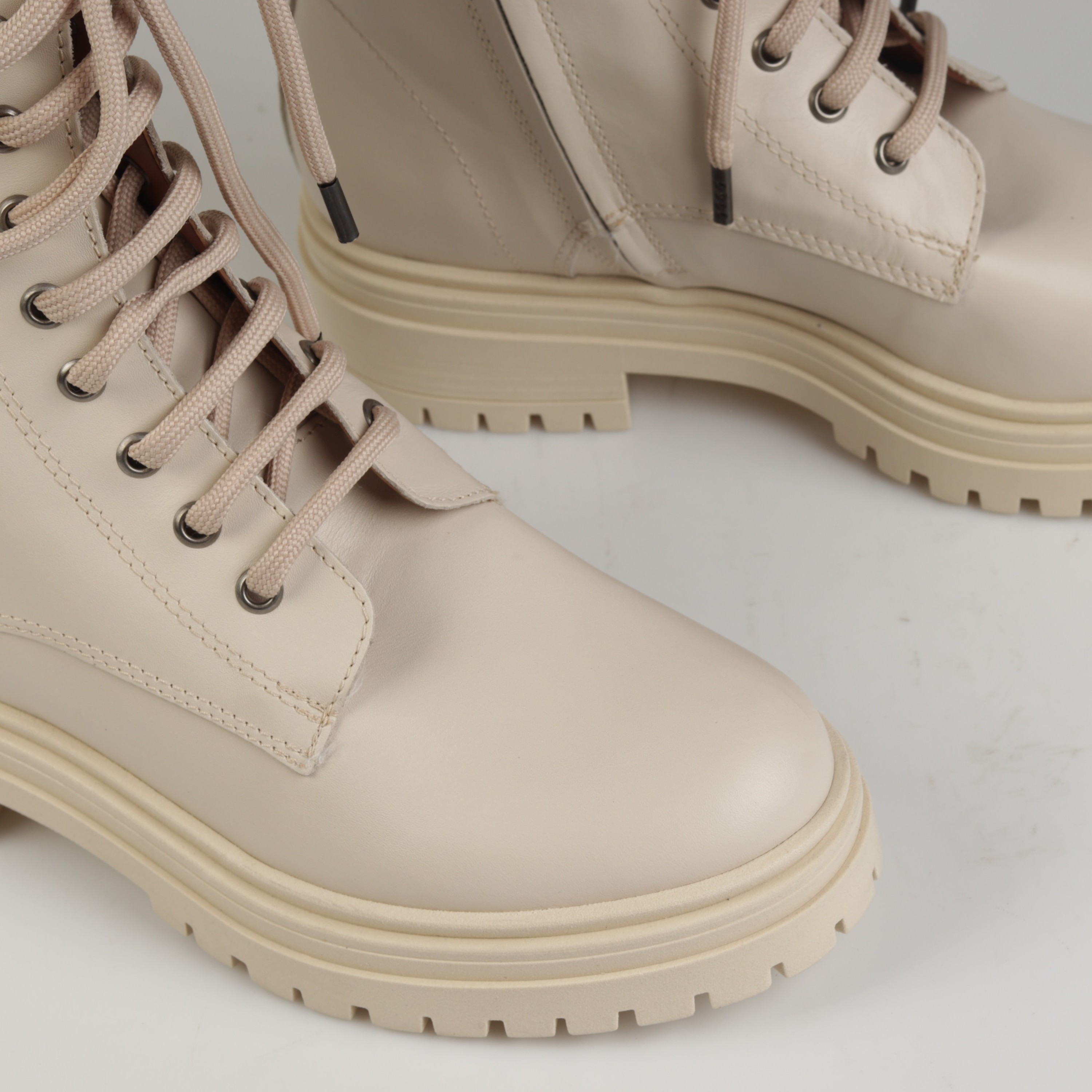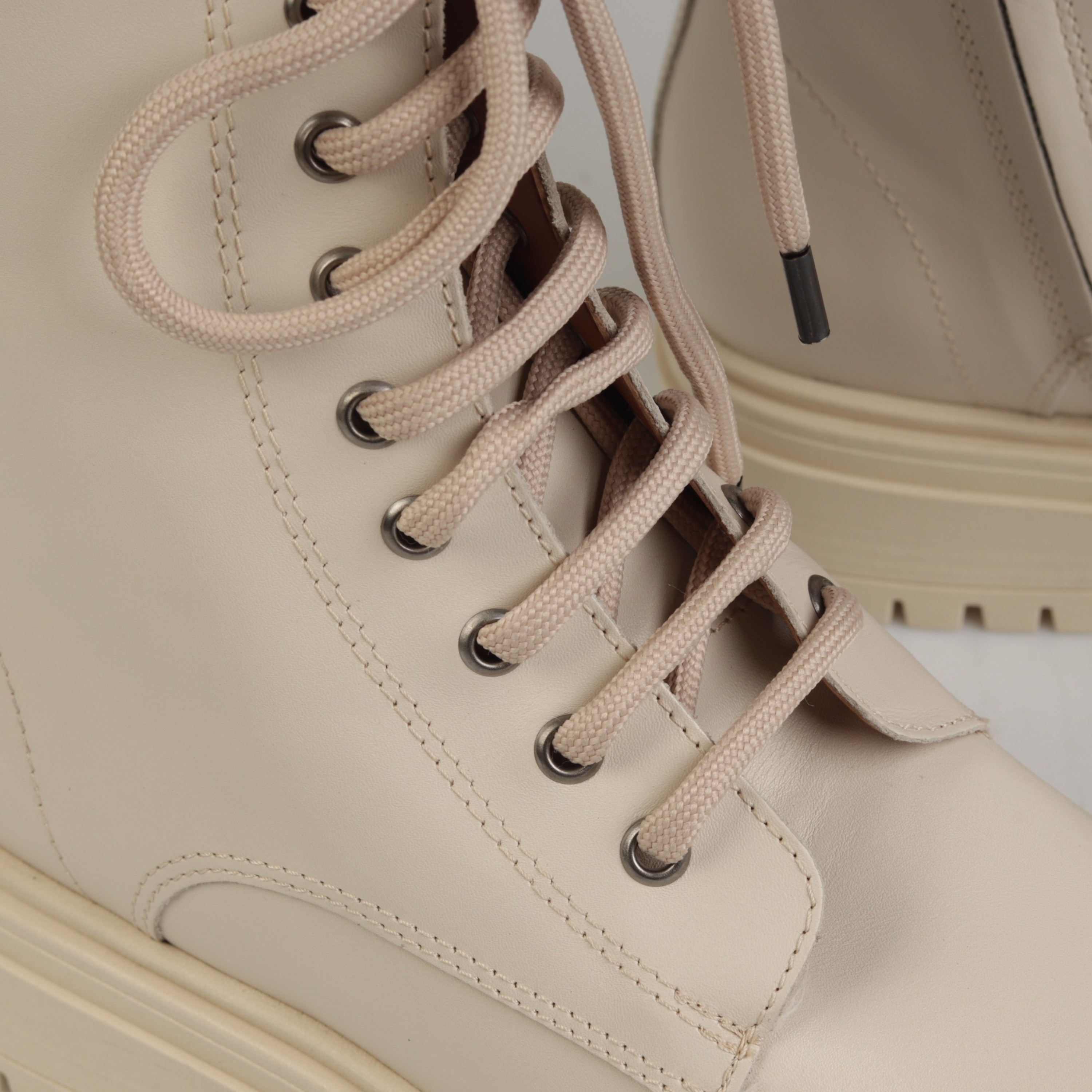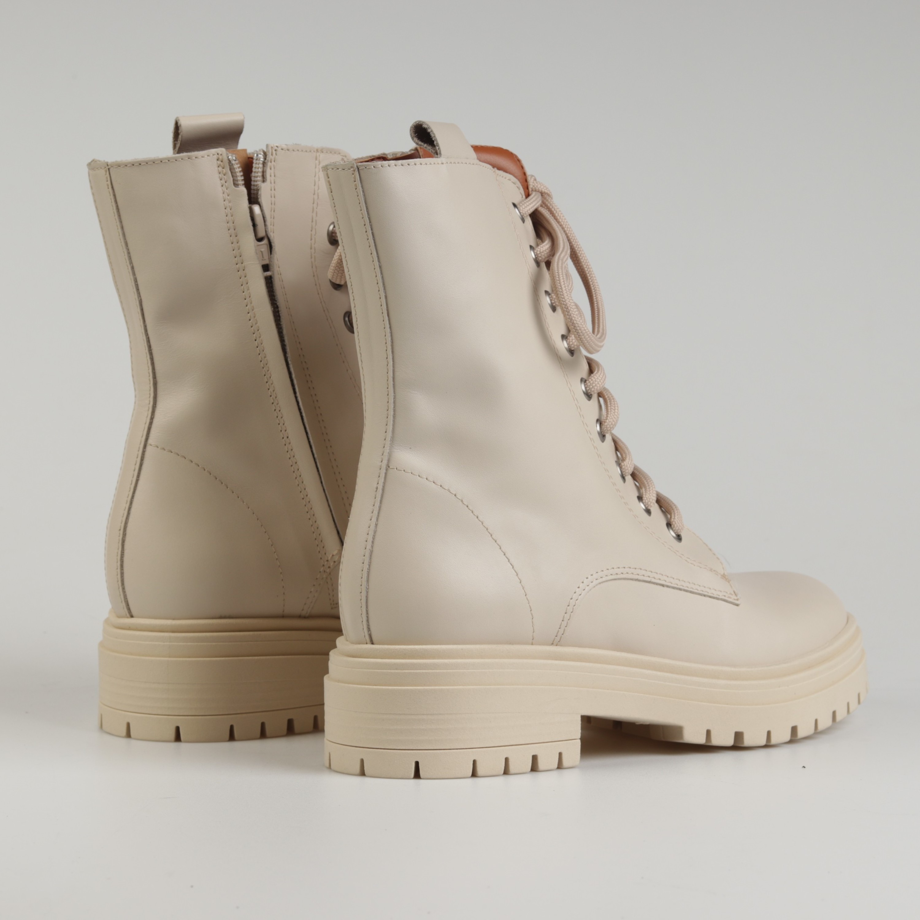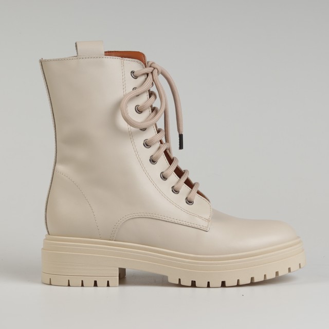 Klasyczne i ponadczasowe - tak zdecydowanie można określić botki w militarnym stylu na masywnej podeszwie, które w sezonie AW21 będą najgorętszym trendem. Wysokiej jakości skóra naturalna, z której została wykonana cholewka oraz wkładka gwarantuje wytrzymałość oraz komfort przez wiele godzin na nogach. Gumowa, podwyższona podeszwa nie tylko nadaje im charakteru, ale również zapewnia stabilny krok i amortyzację w każdych warunkach. Dodatkowo, piękny beżowy kolor idealnie dopełni każdą jesienno-zimową stylizację dodając jej stylu.