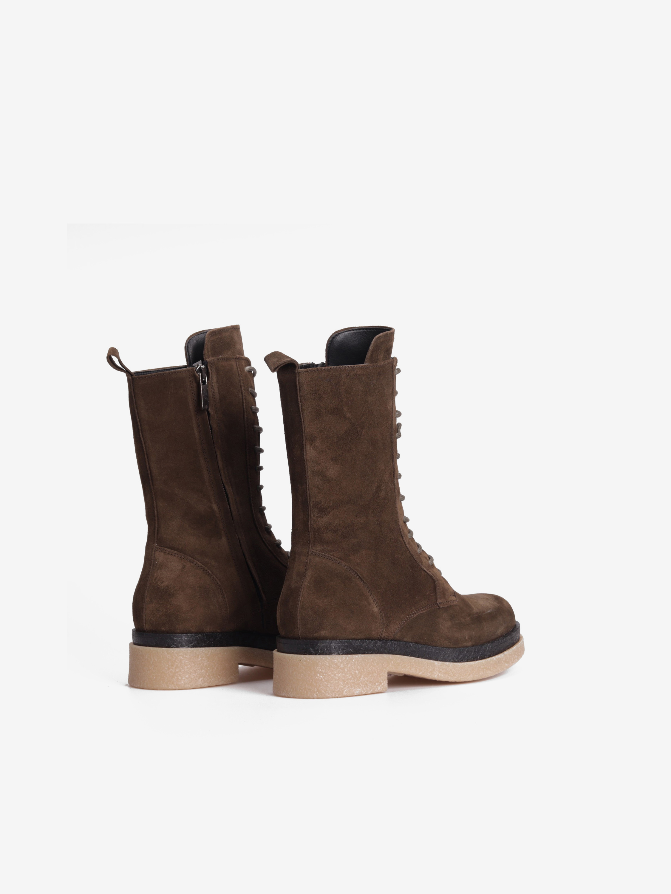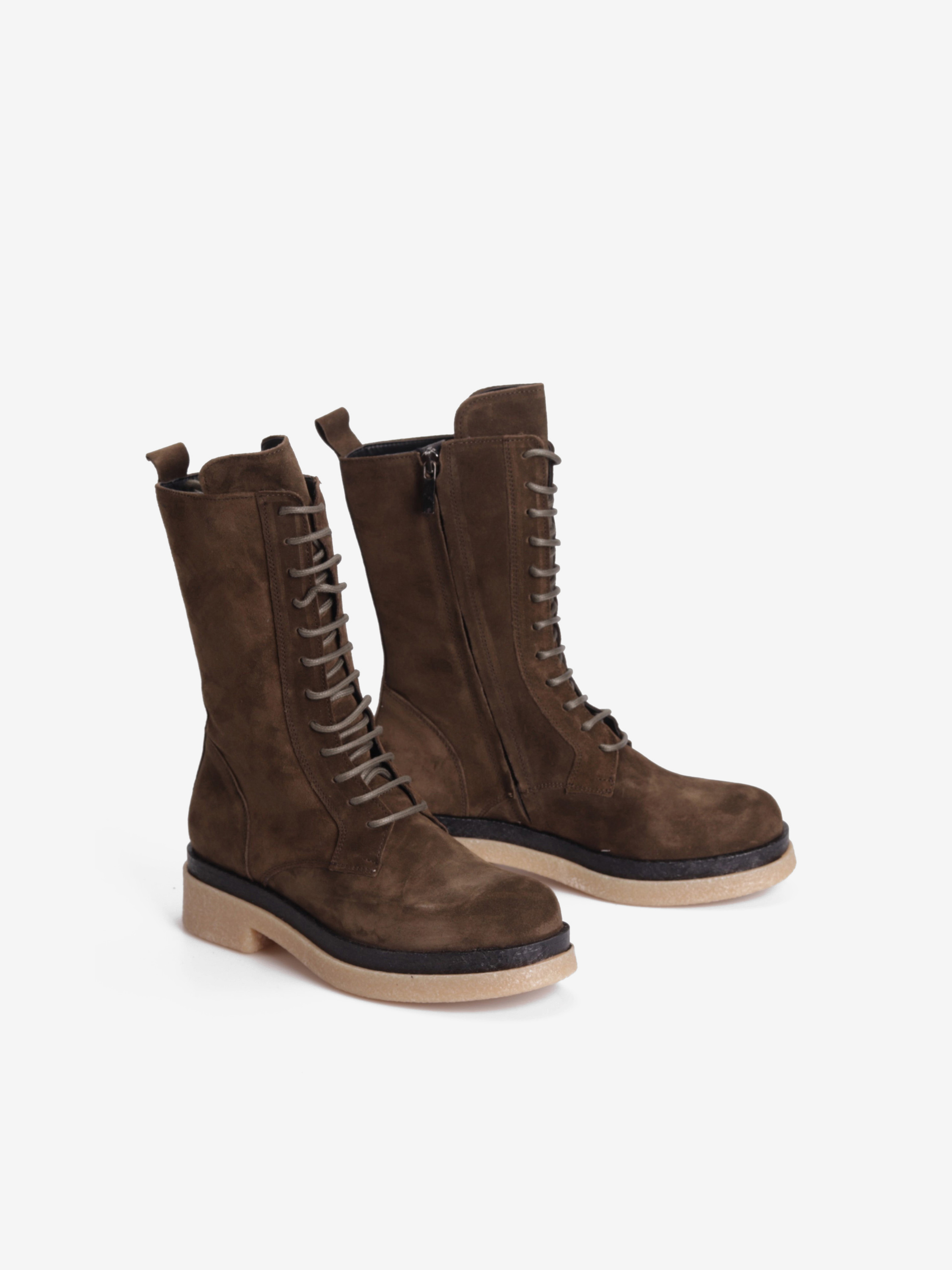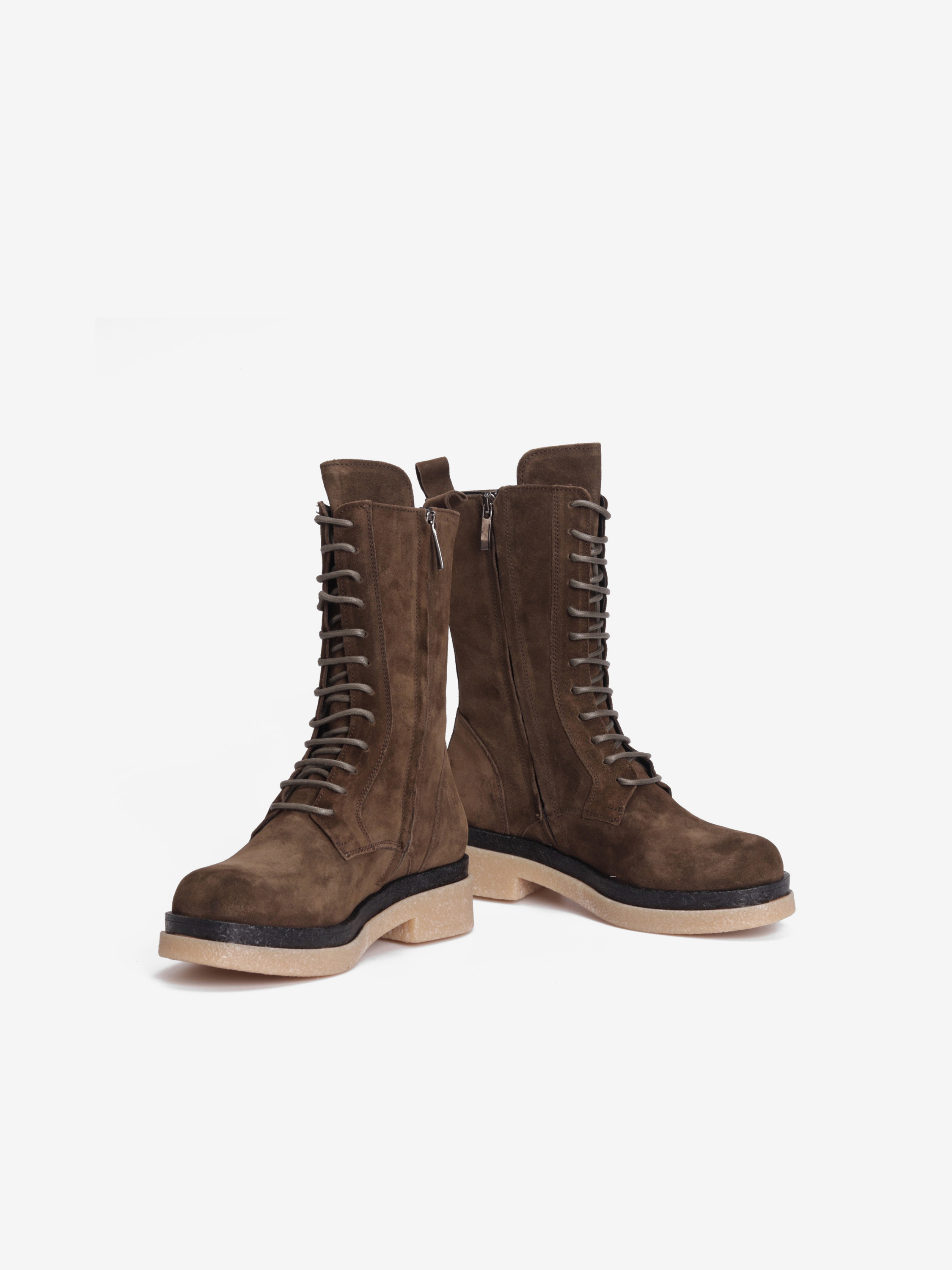 Pięknie skrojone sznurowane botki w limitowanym kolorze podbiją serca każdej miłośniczki wygody oraz najnowszych trendów. Zamszowa cholewka w połączeniu ze skórzaną wkładką sprawia, że but idealnie leży na nodze gwaranując wysoki komfort użytkowania. Gumowa podeszwa zapewni należytą amortyzację oraz pewny krok w każdych warunkach.