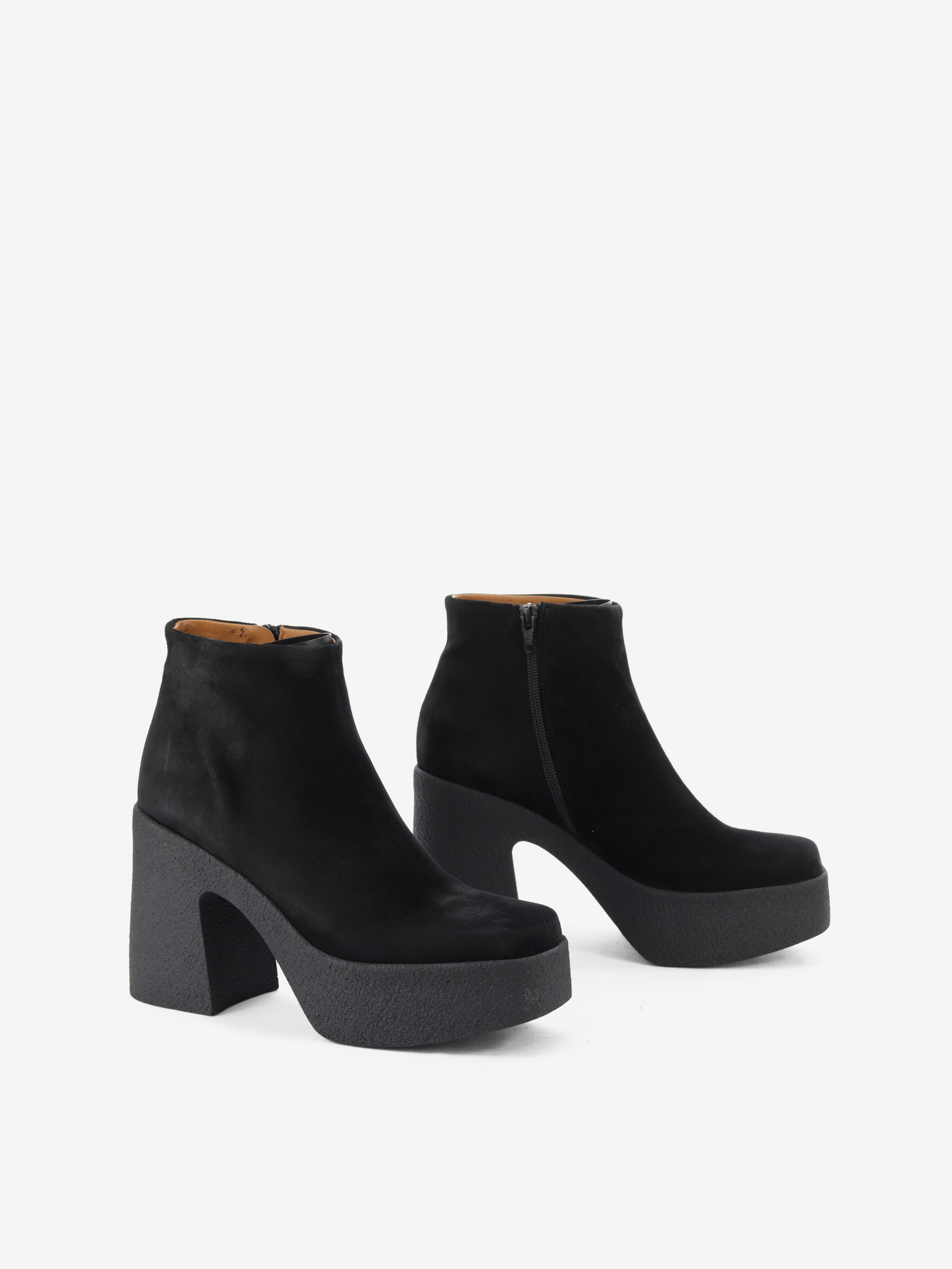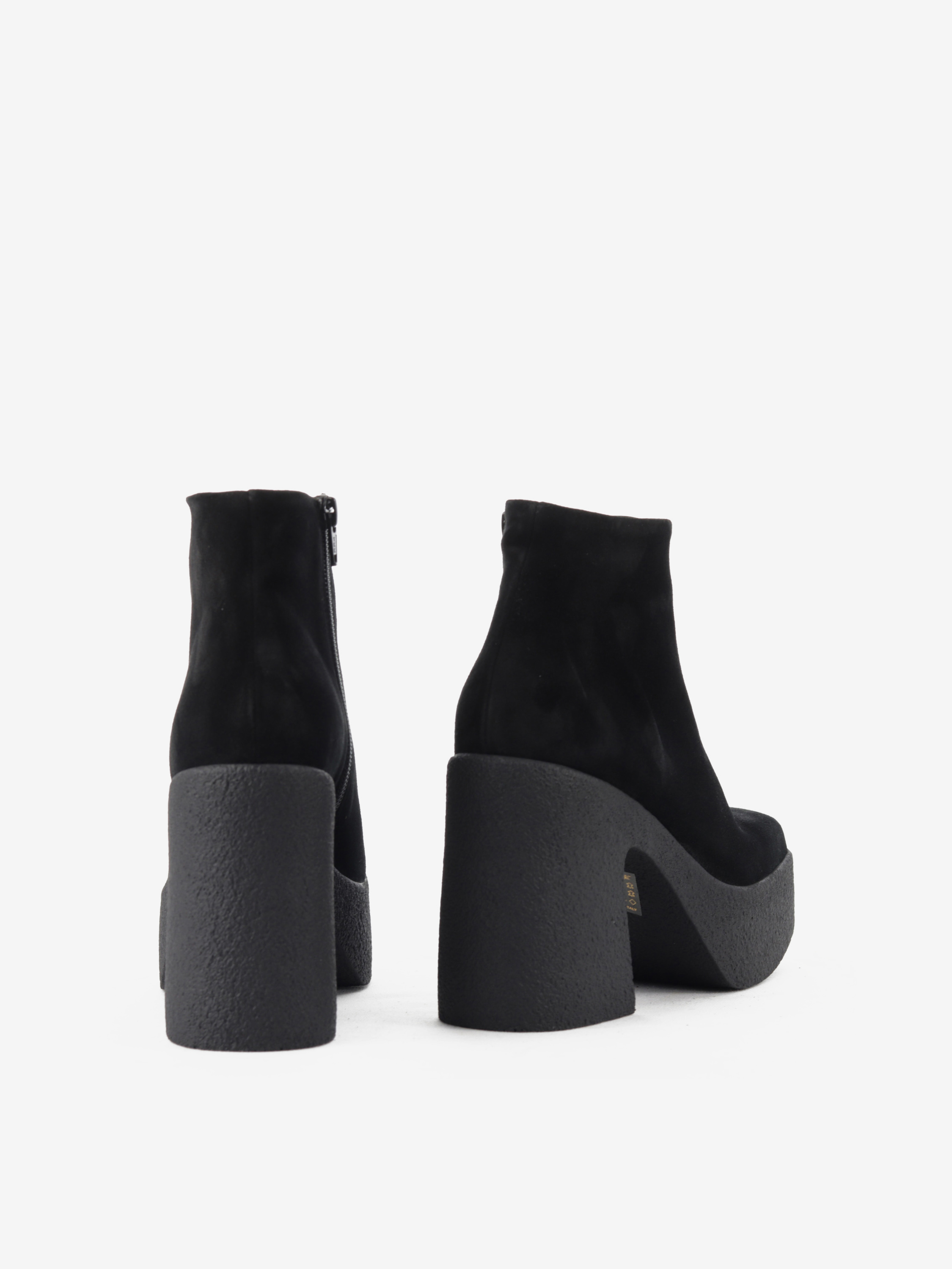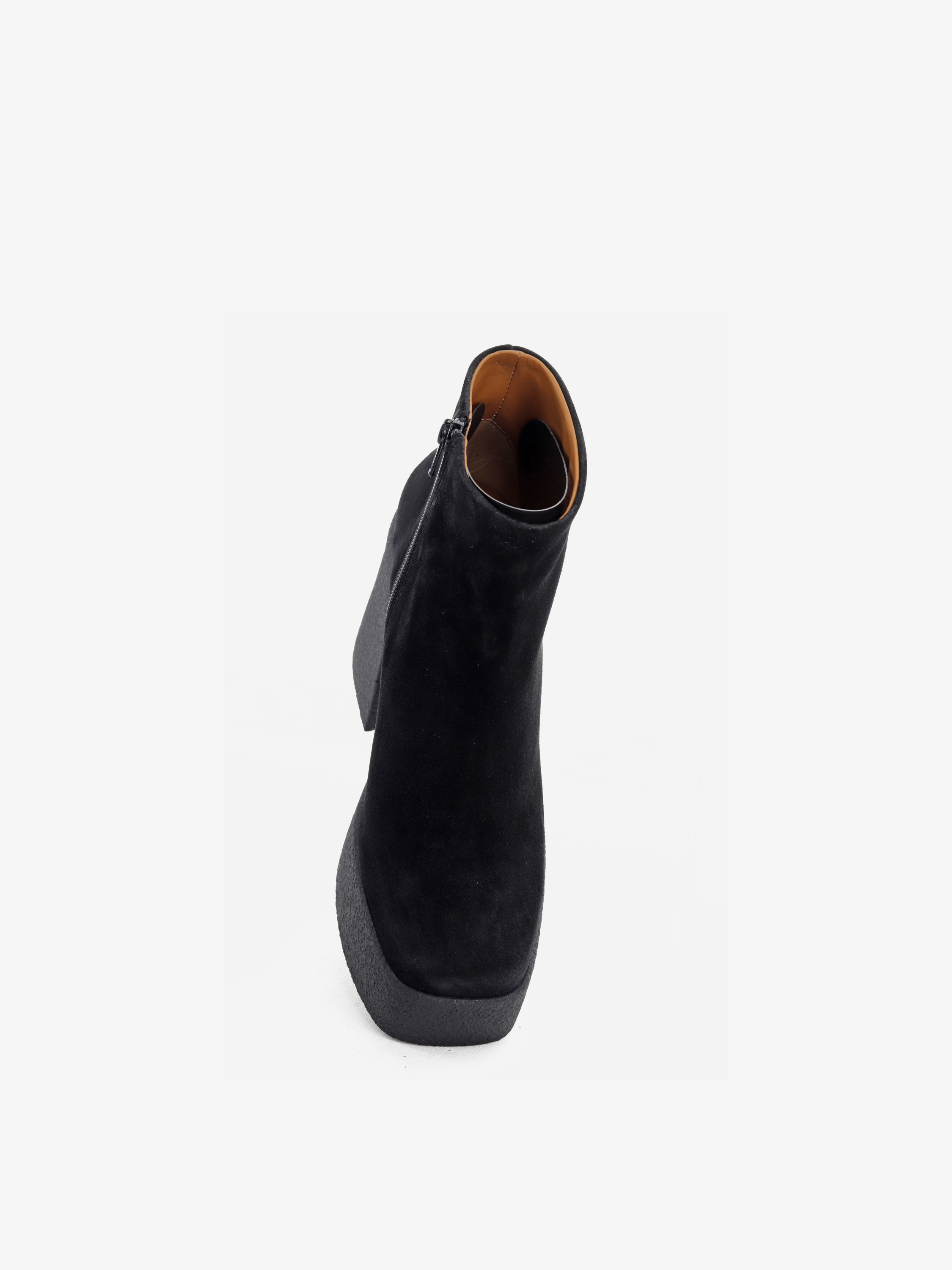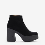 Piękne, czarne botki na masywnej podeszwie to propozycja dla kobiet ceniących sobie wygodę oraz najnowsze trendy w sezonie AW20. Zamszowa cholewka w połączeniu ze skórzanym wnętrzem gwarantuje komfort i wytrzymałość. 4 cm platforma zapewni stabilny krok i odpowiednią amortyzację. Świetnie prezentować się będą zestawione zarówno ze spodniami jak i sukienkami.