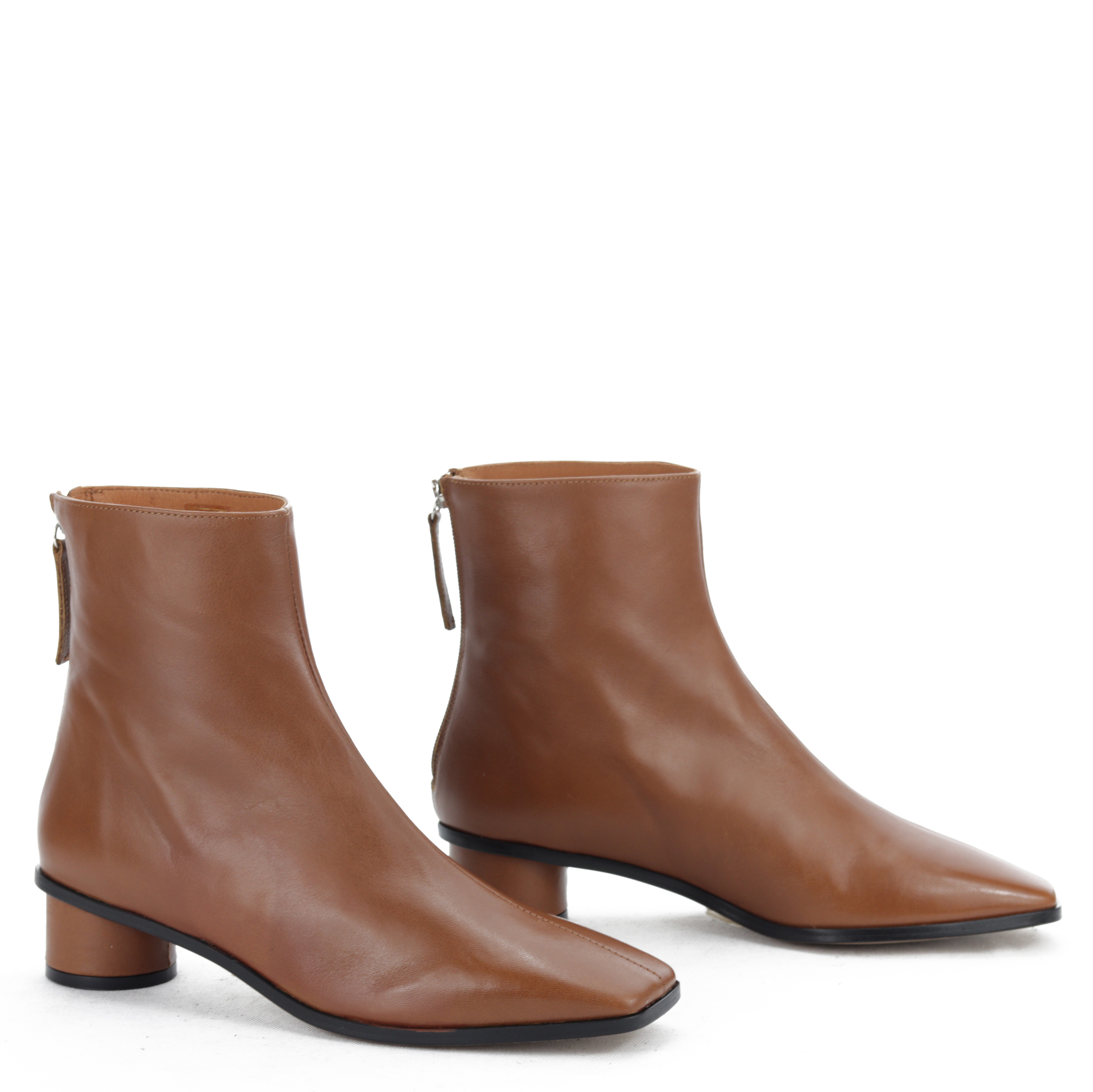 Klasyczne botki z wpisującym się w najnowsze trendy kwadratowym noskiem muszą znaleźć się w szafie każdej eleganckiej kobiety ceniącej sobie styl i wygodę. Skórzana cholewka w połączeniu ze skórzanym wnętrzem gwarantuje wytrzymałość oraz komfort przez wiele godzin. Ponadczasowy design wzbogacony został charakterystycznym, 3,5 cm obcasem, który nadaje im charakteru. Będą idealnym uzupełnieniem wielu stylizacji.