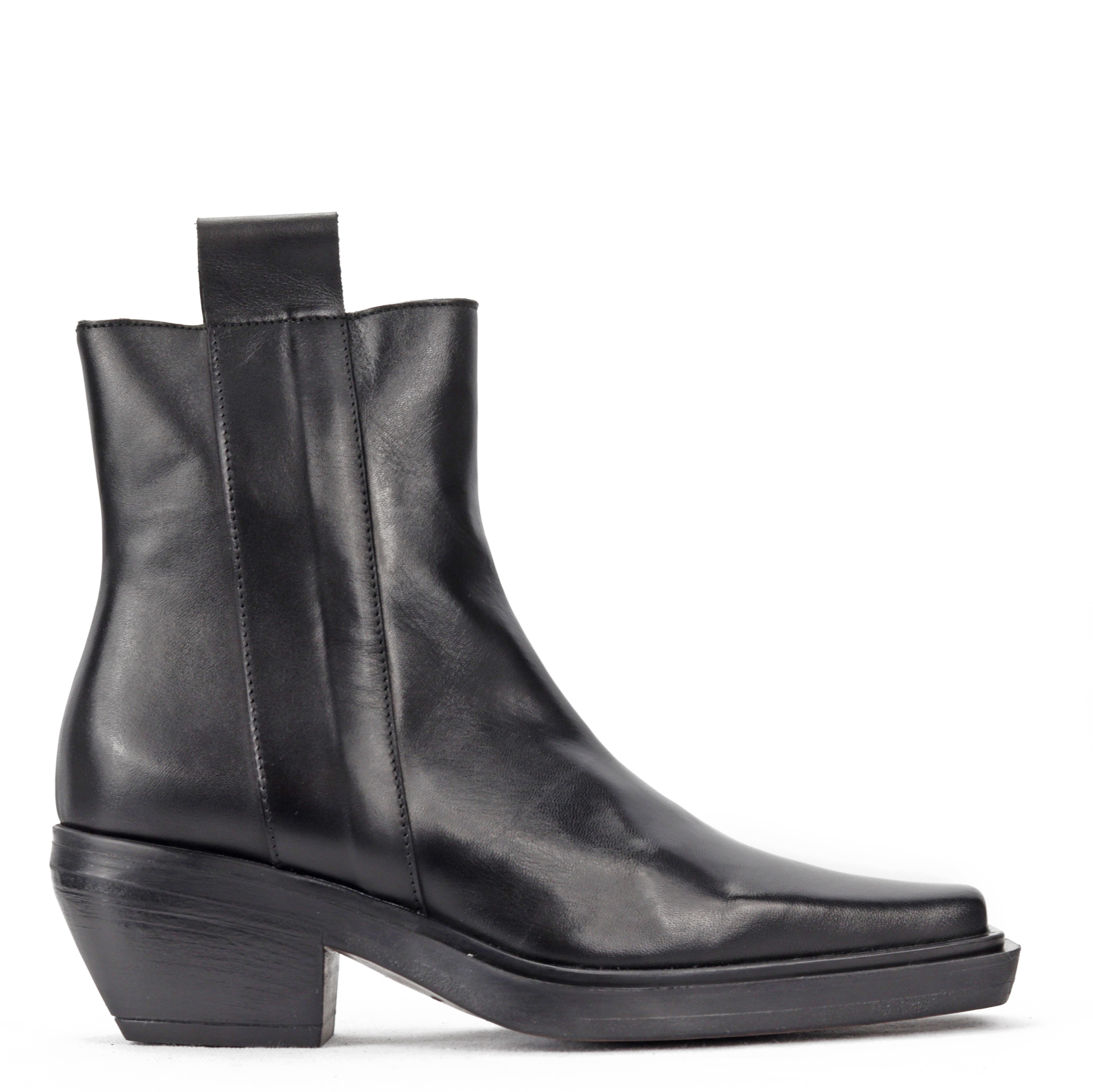 Unikatowe botki z charakterem będą idealnym uzupełnieniem wielu jesienno-zimowych stylizacji. Skórzana cholewka gwarantuje komfort oraz dopasowanie do stopy. Swoją oryginalność zawdzięczają ściętemu obcasowi oraz noskowi, dzięki czemu prezentują się bardzo nowocześnie i niepowtarzalnie. Nikt nie przejdzie obok nich obojętnie.