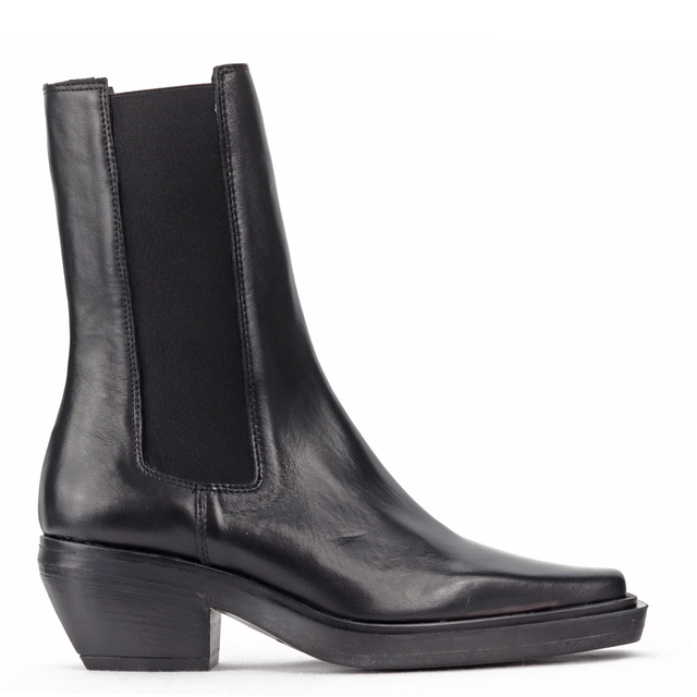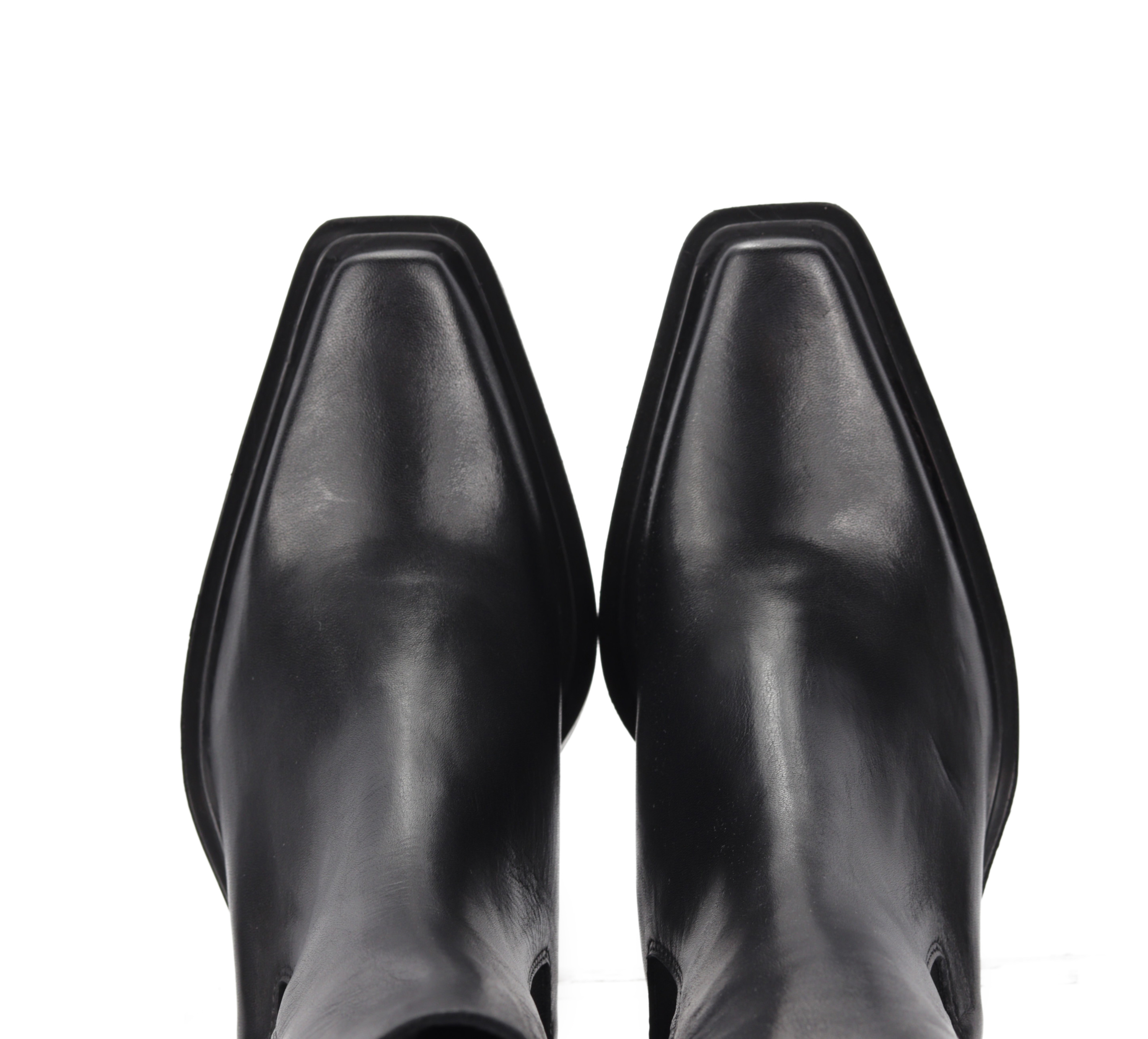 Unikatowe botki z charakterem będą idealnym uzupełnieniem wielu jesienno-zimowych stylizacji. Skórzana cholewka z wszytą po bokach gumką gwarantuje komfort oraz dopasowanie do stopy. Swoją oryginalność zawdzięczają ściętemu obcasowi oraz noskowi, dzięki czemu prezentują się bardzo nowocześnie i niepowtarzalnie. Nikt nie przejdzie obok nich obojętnie.