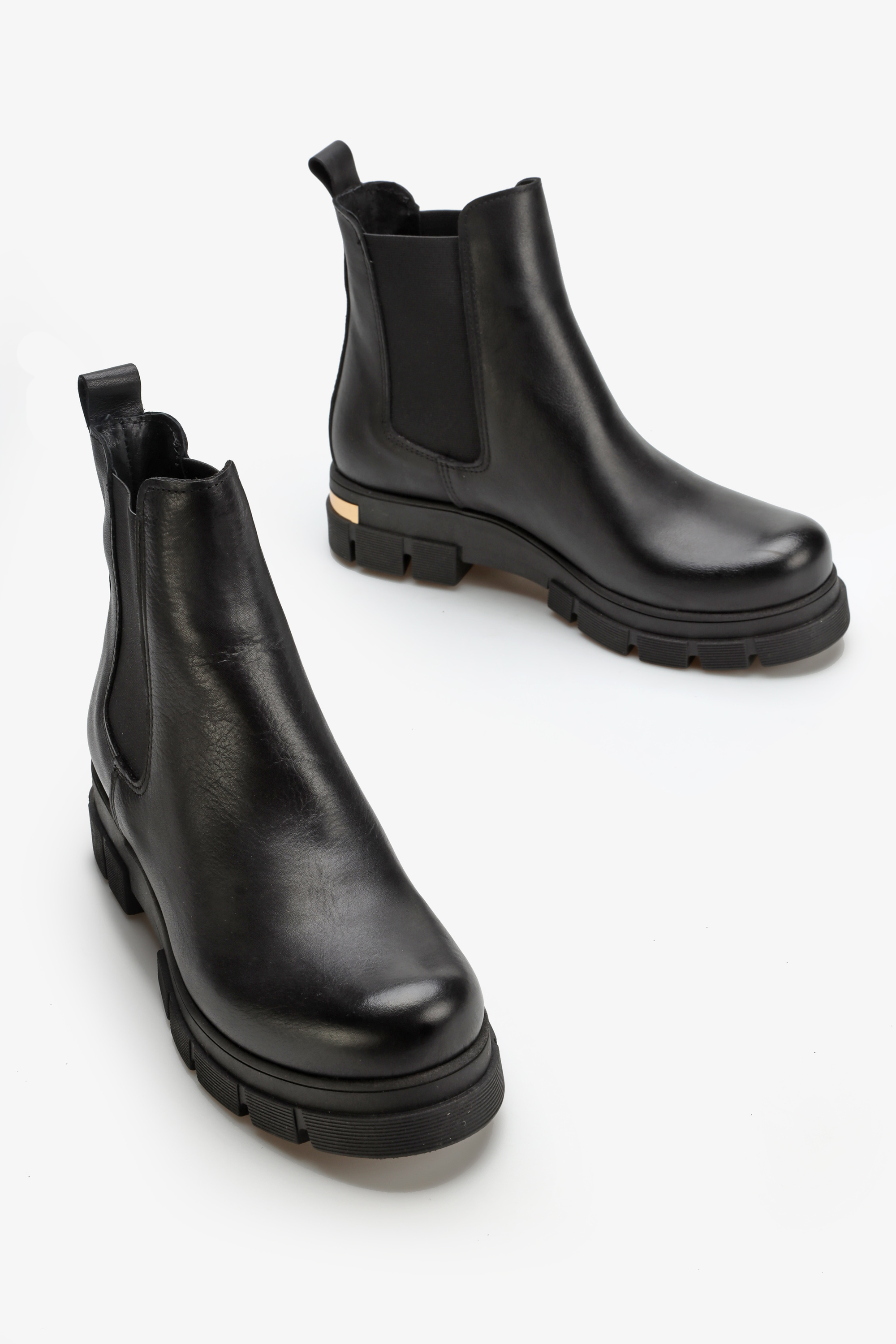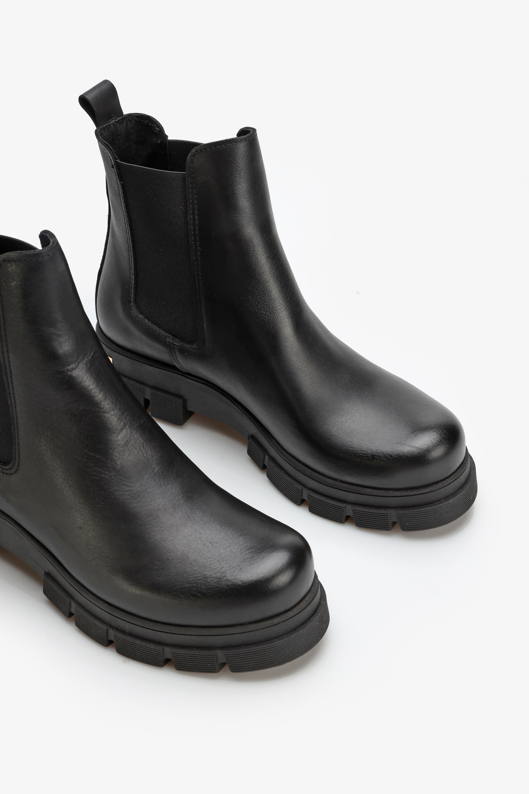 Wsuwane botki damskie z elastyczną gumą wyglądem przypominają klasyczne sztyblety, ale różni je od nich masywna podeszwa, która nadaje im bardziej casualowego stylu.
