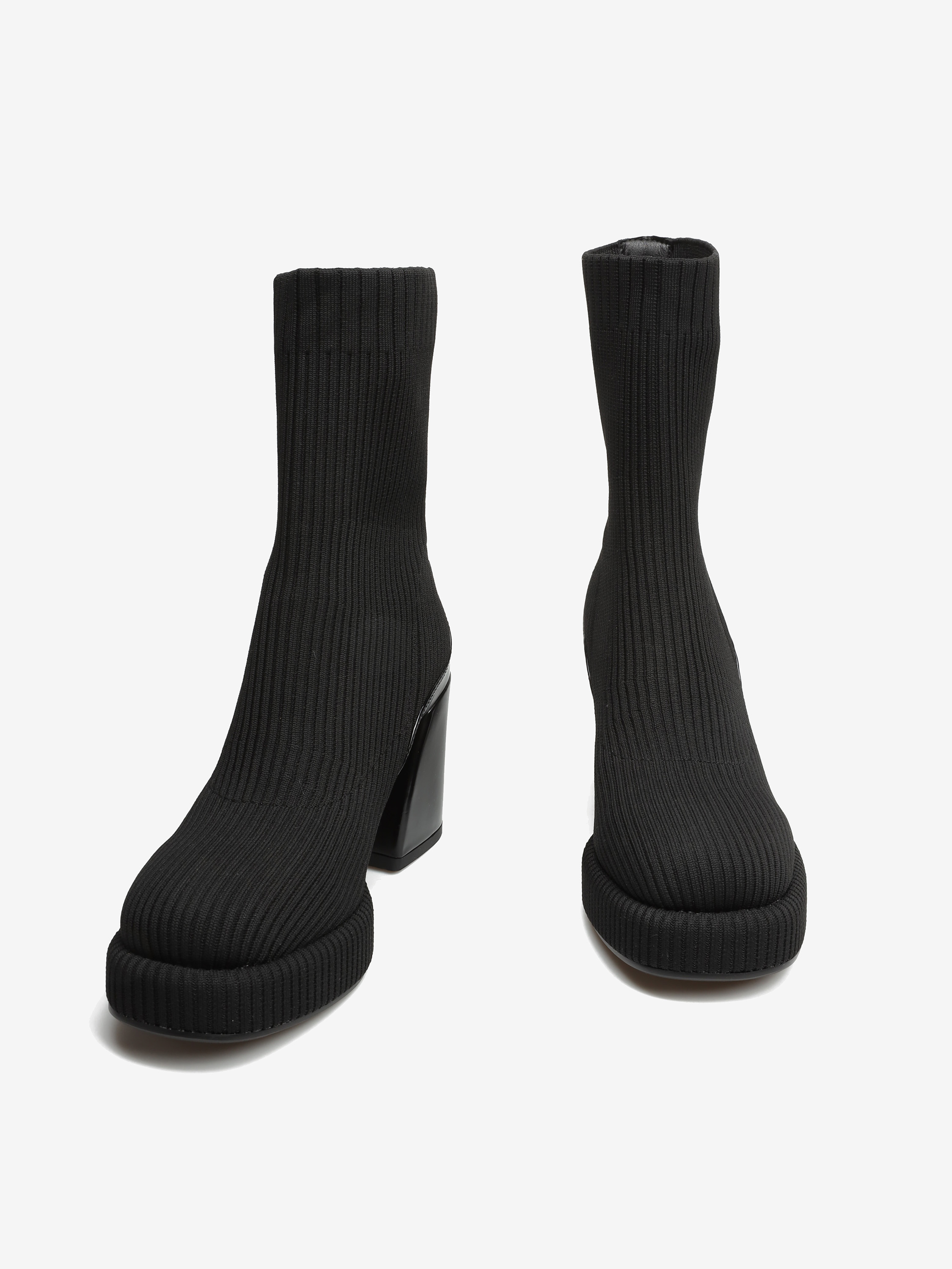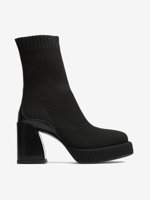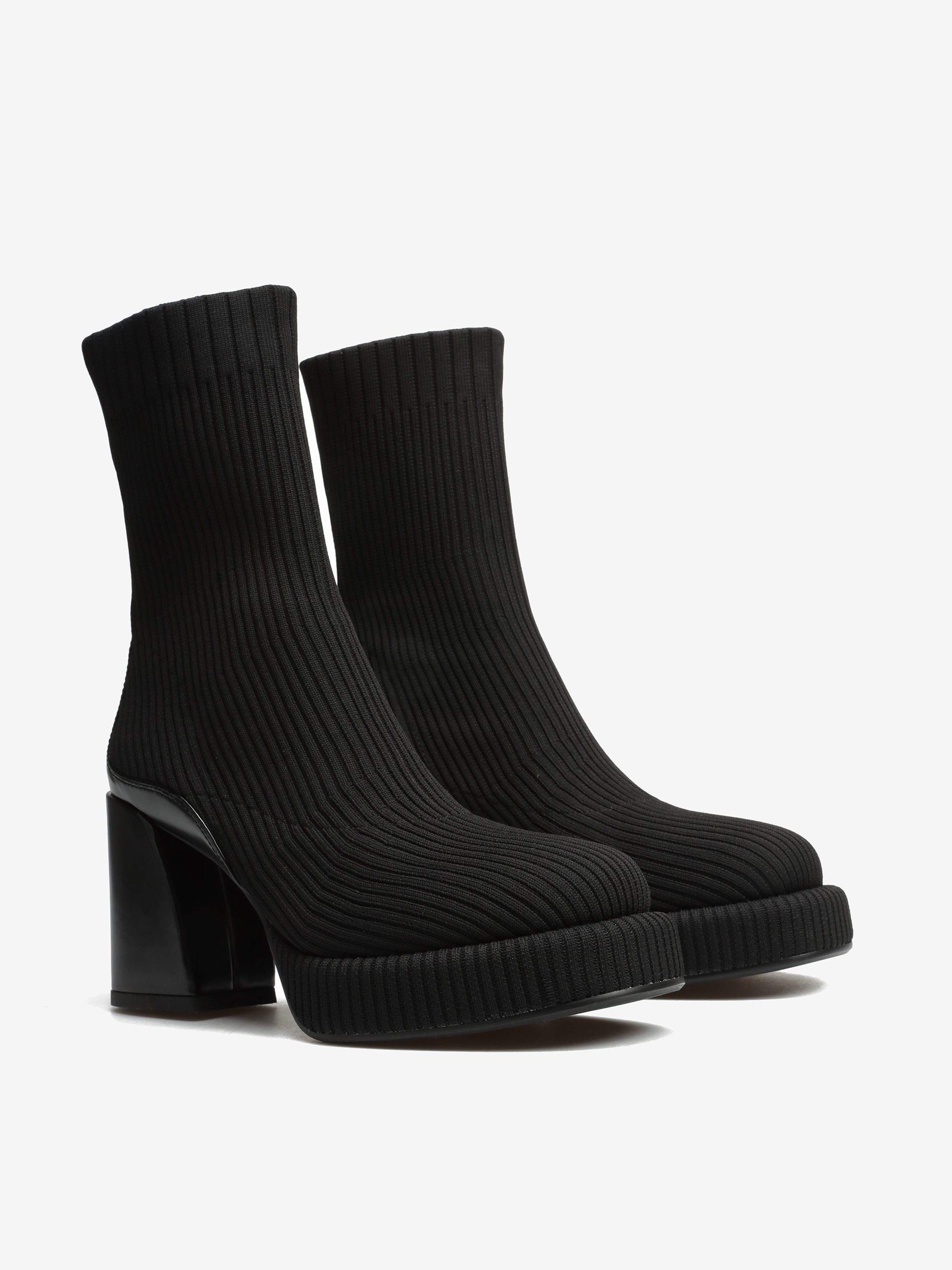 Wsuwane botki z elastyczną cholewką w stylu "Socks boots" przylegają do nogi jak druga skóra. Model za kostkę z wygodnym, stabilnym obcasem na słupku oraz podeszwą na platformie. Modne połączenie faktur oraz kolorów wpisuje się w Trendy sezonu.
