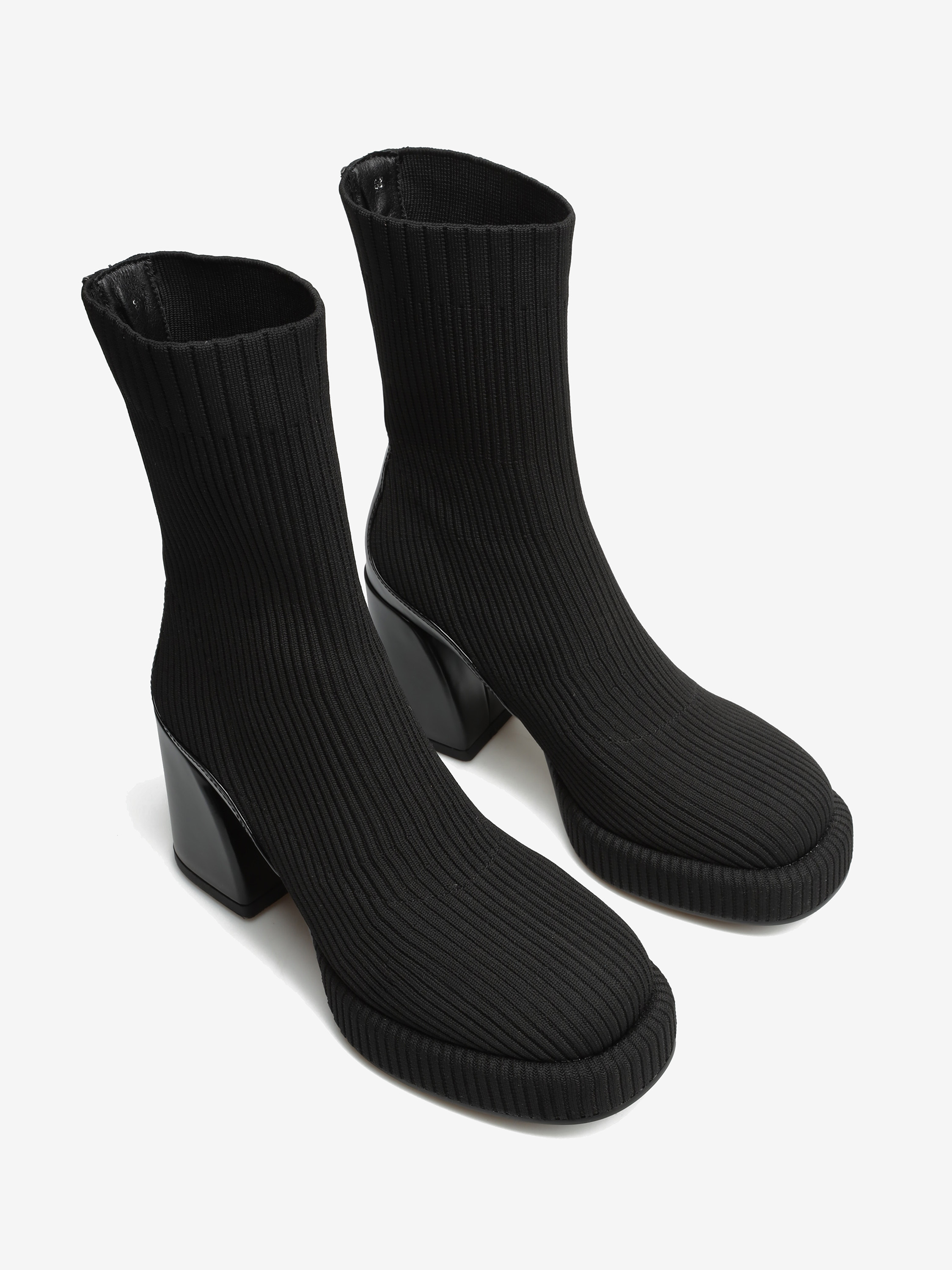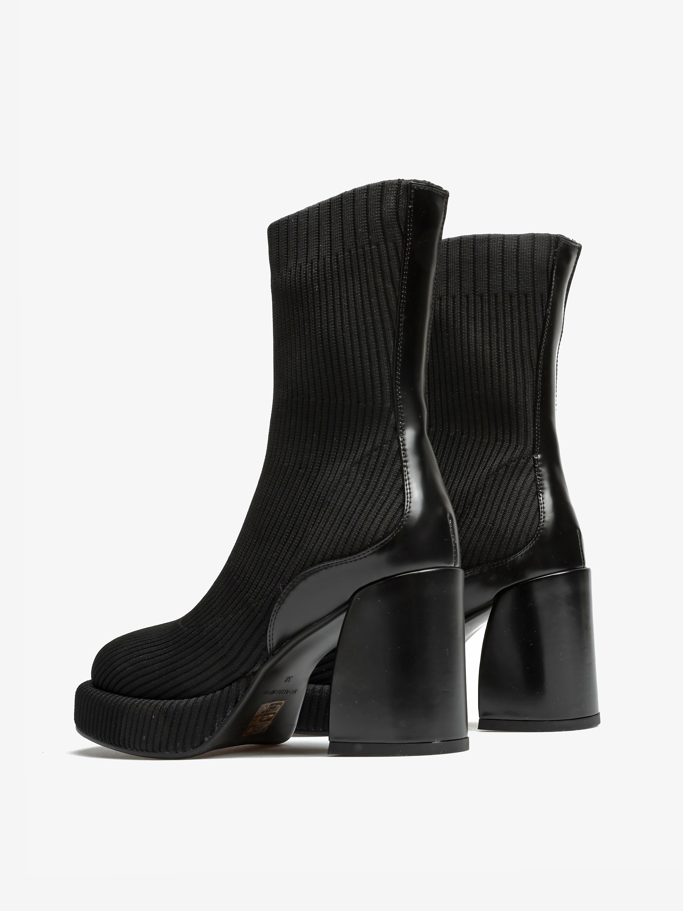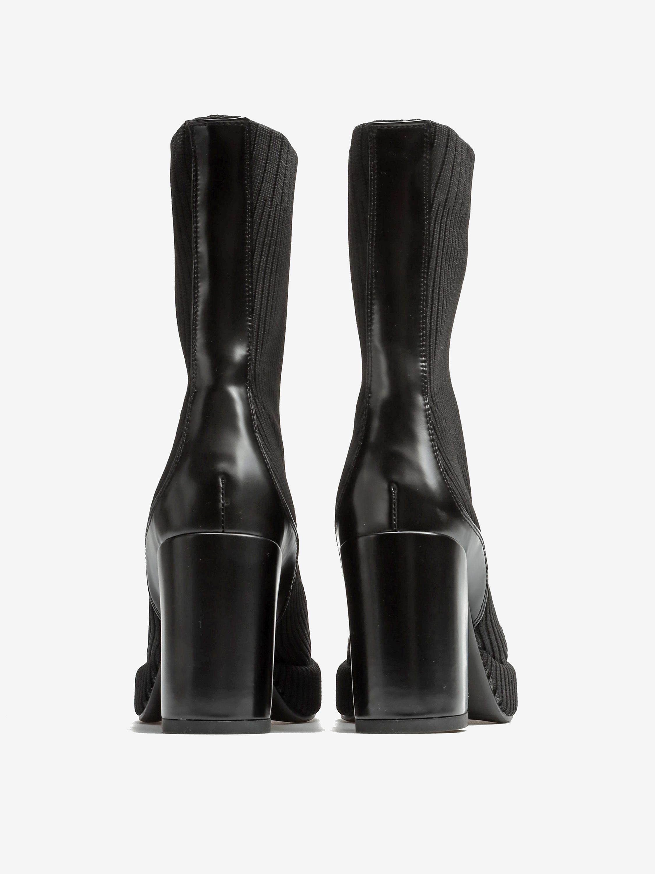 Wsuwane botki z elastyczną cholewką w stylu "Socks boots" przylegają do nogi jak druga skóra. Model za kostkę z wygodnym, stabilnym obcasem na słupku oraz podeszwą na platformie. Modne połączenie faktur oraz kolorów wpisuje się w Trendy sezonu.