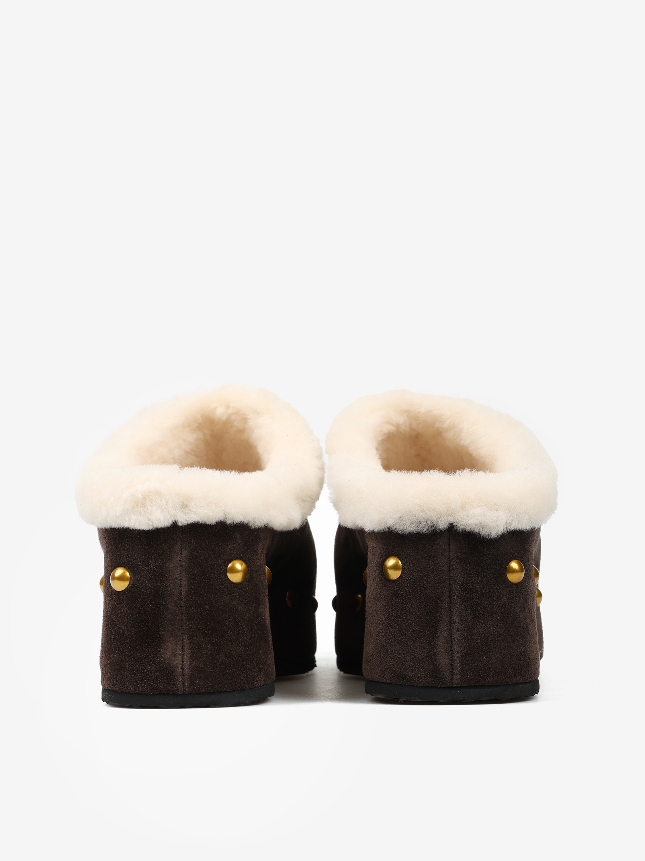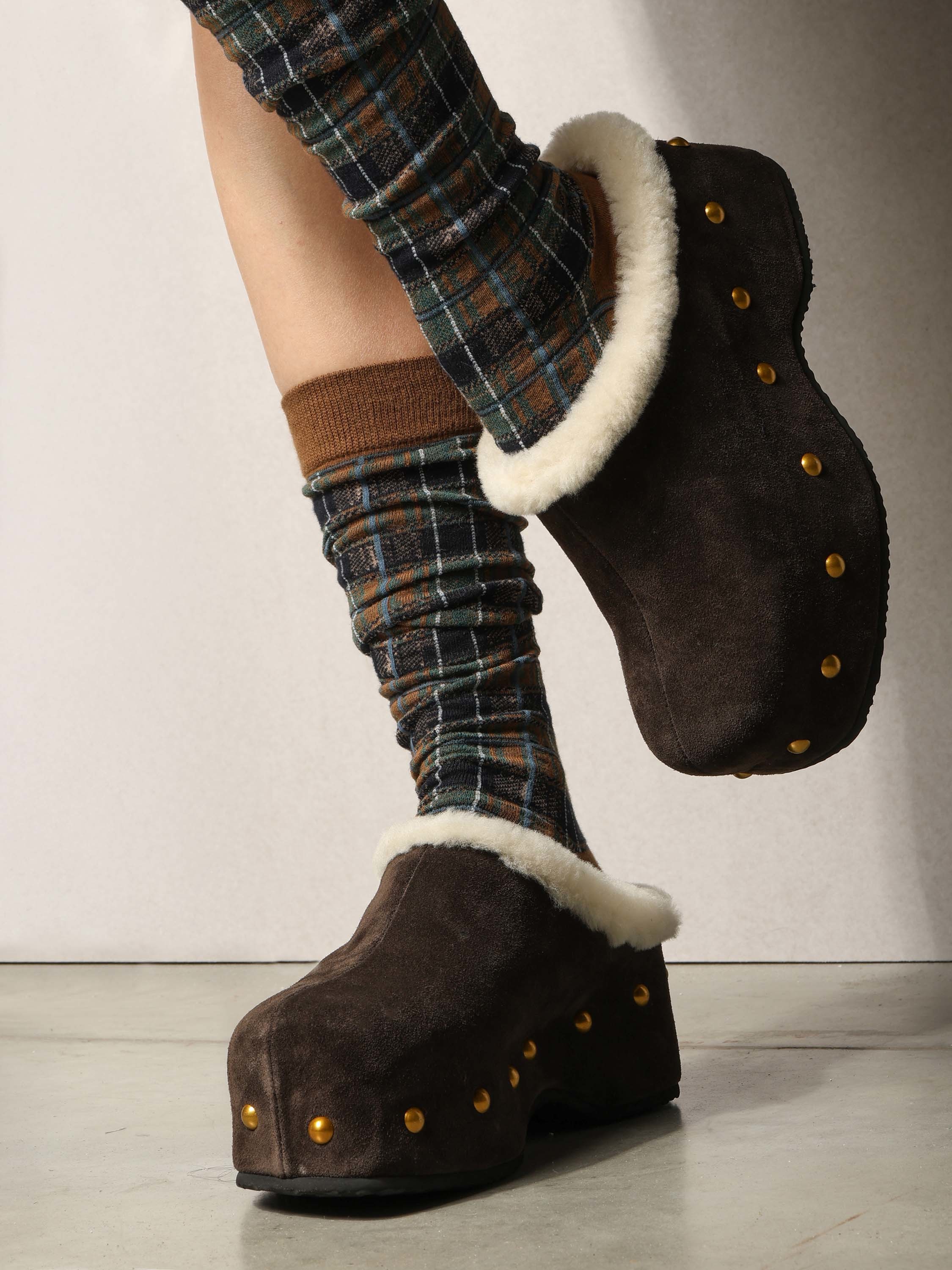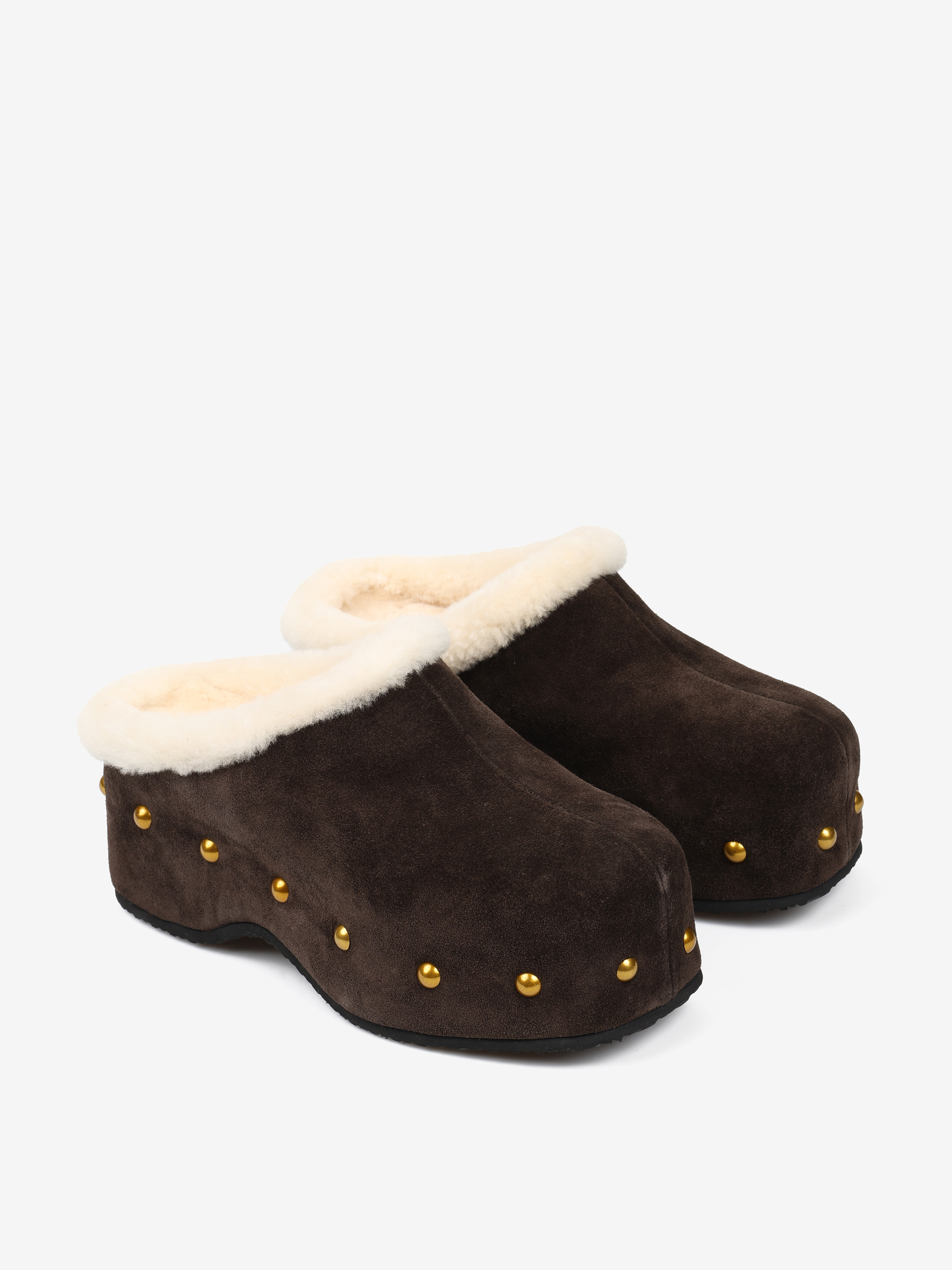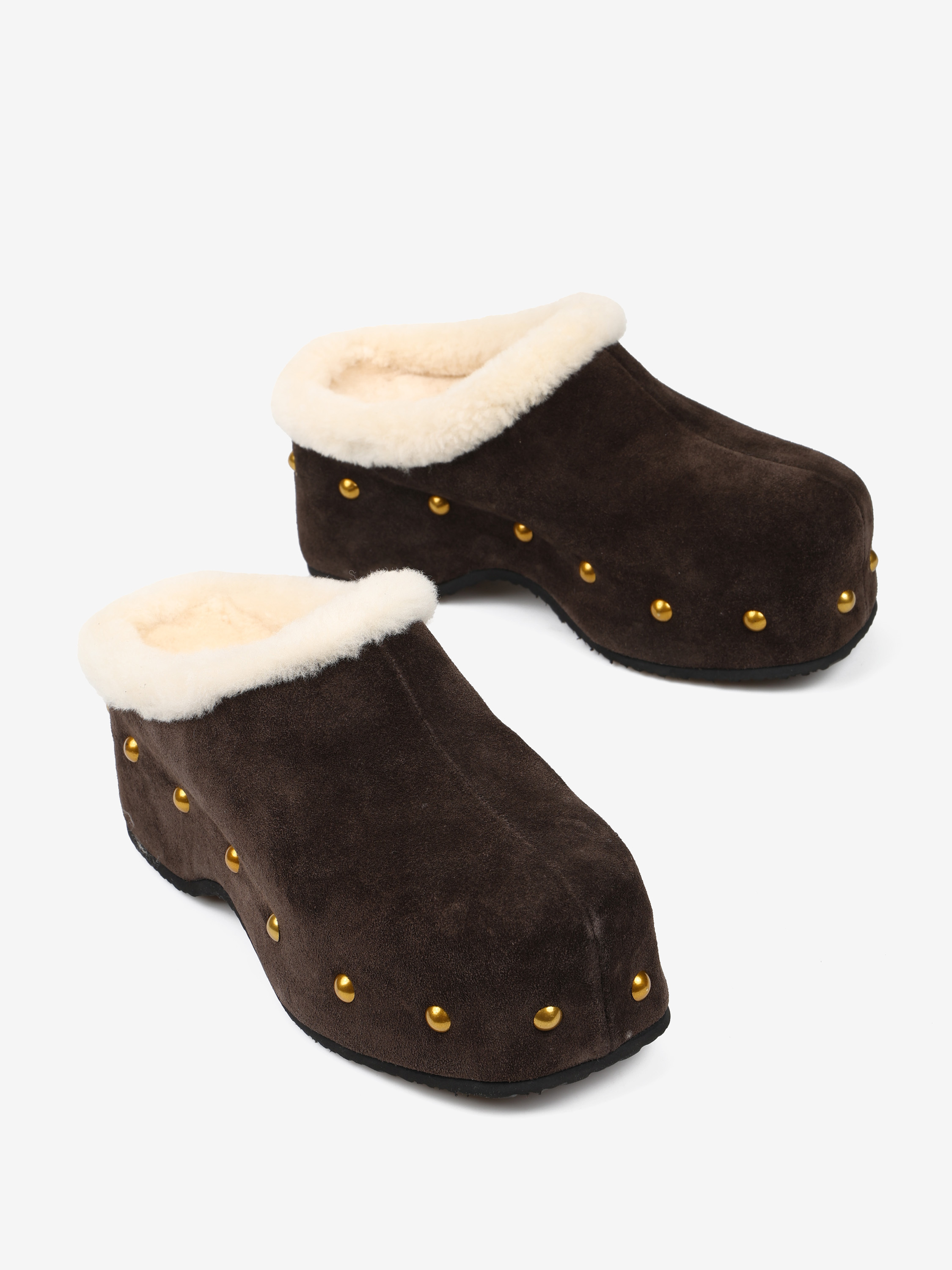Chodaki na platformie z ozdobnymi ćwiekami. Wyściółka z naturalnej wełny owczej.