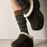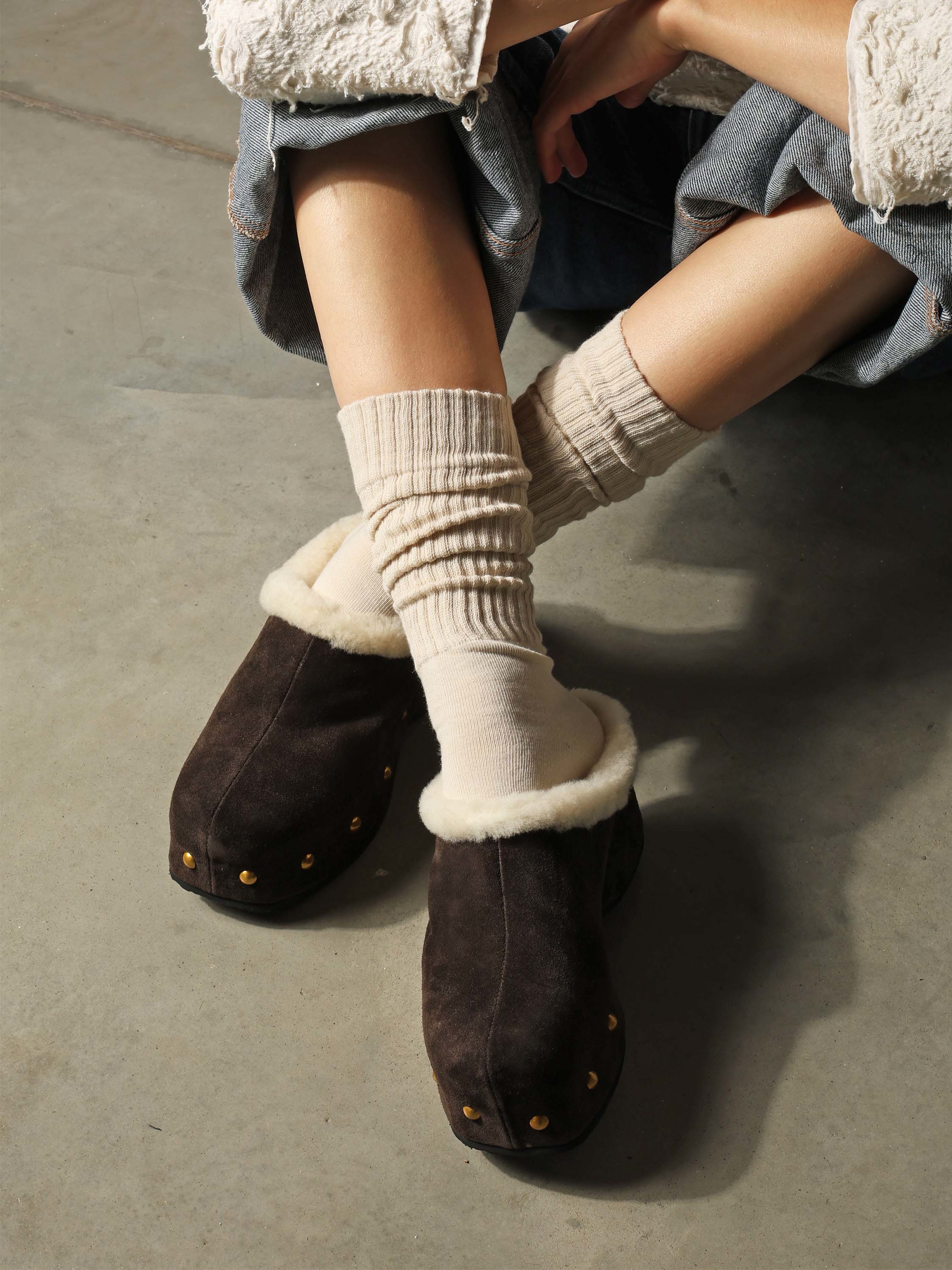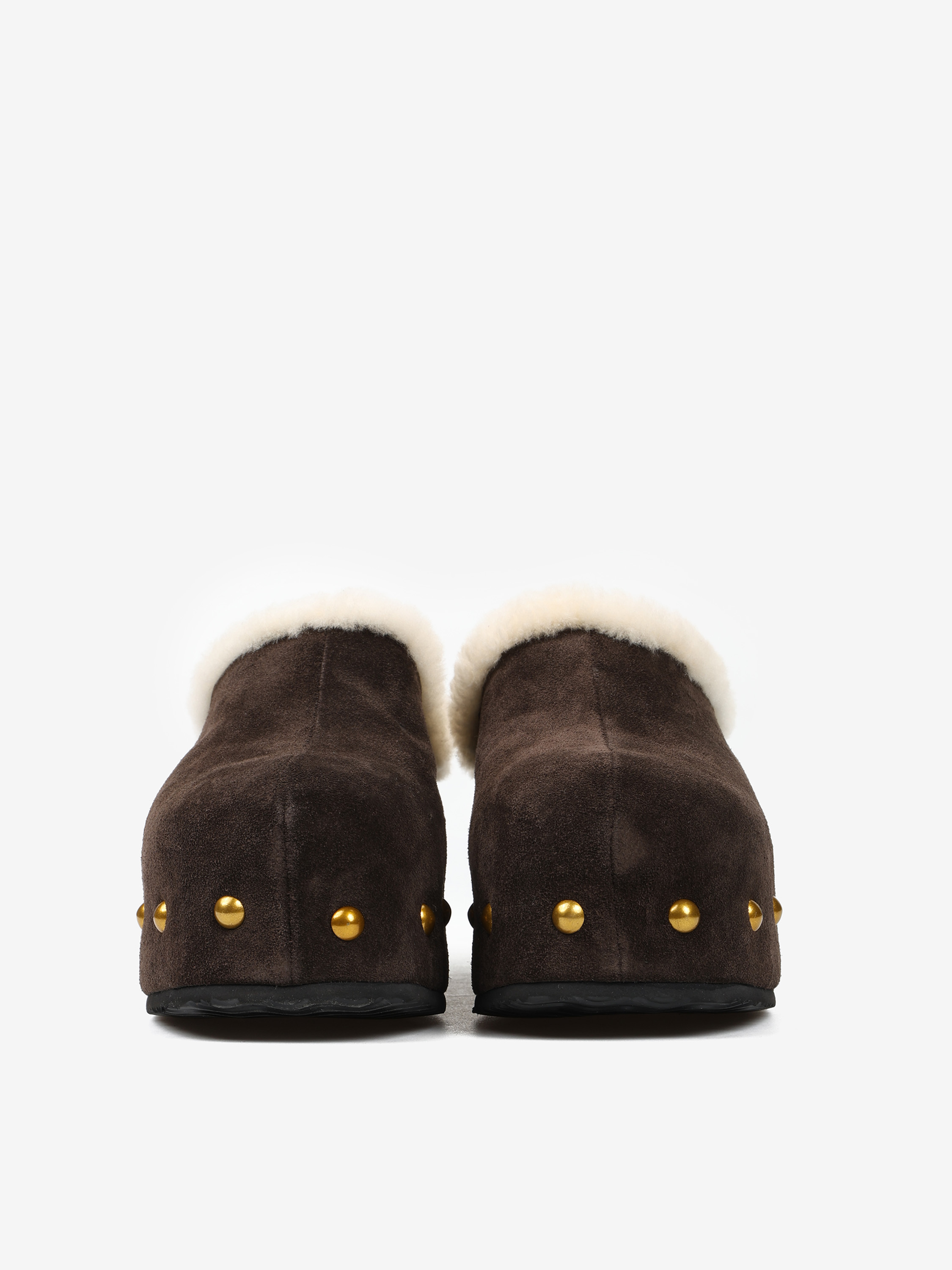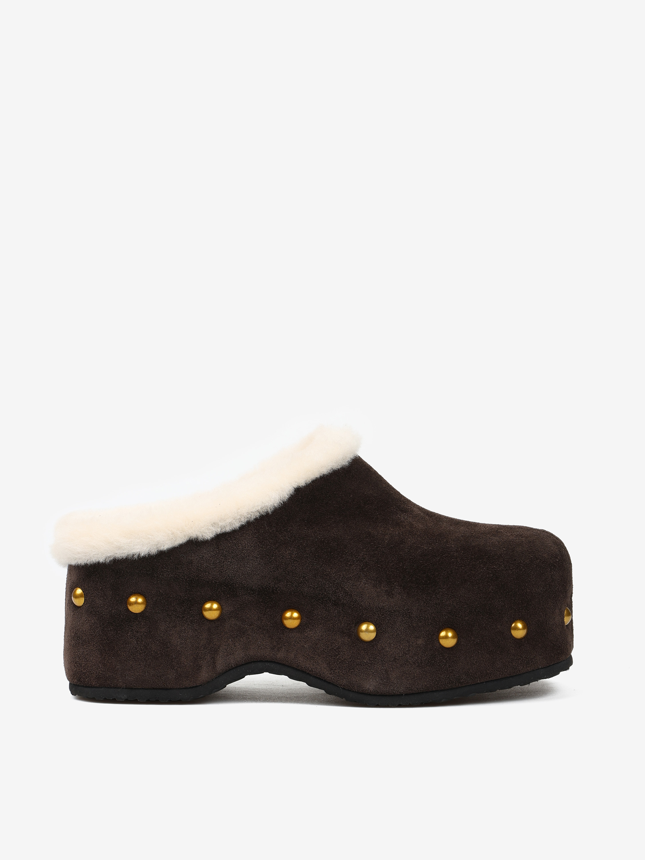 Chodaki na platformie z ozdobnymi ćwiekami. Wyściółka z naturalnej wełny owczej.