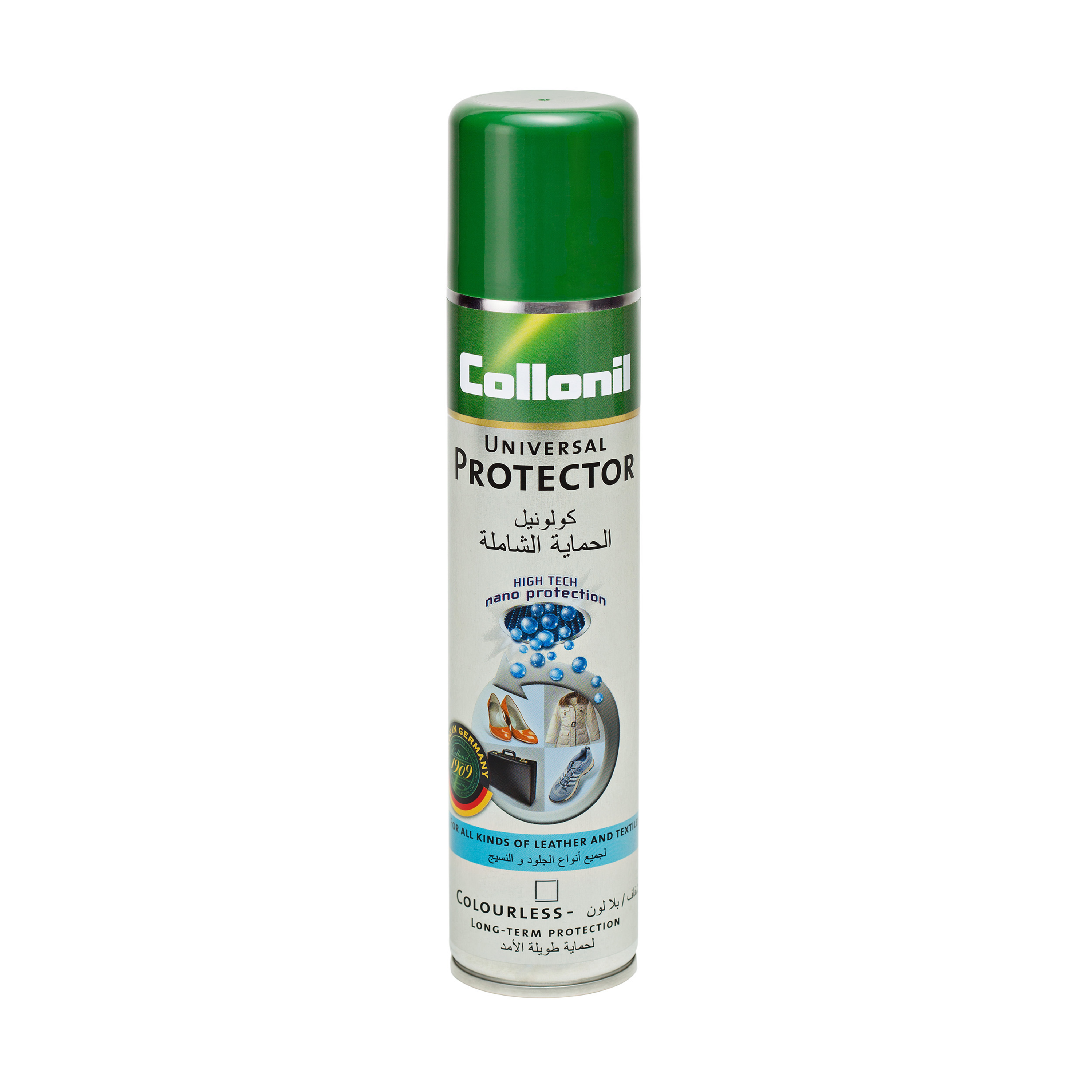 Uniwersalny impregnat z formułą ochrony przez nanocząsteczki skutecznie zabezpiecza przed wilgocią obuwie, torby i odzież ze skóry, materiałów tekstylnych i syntetycznych.