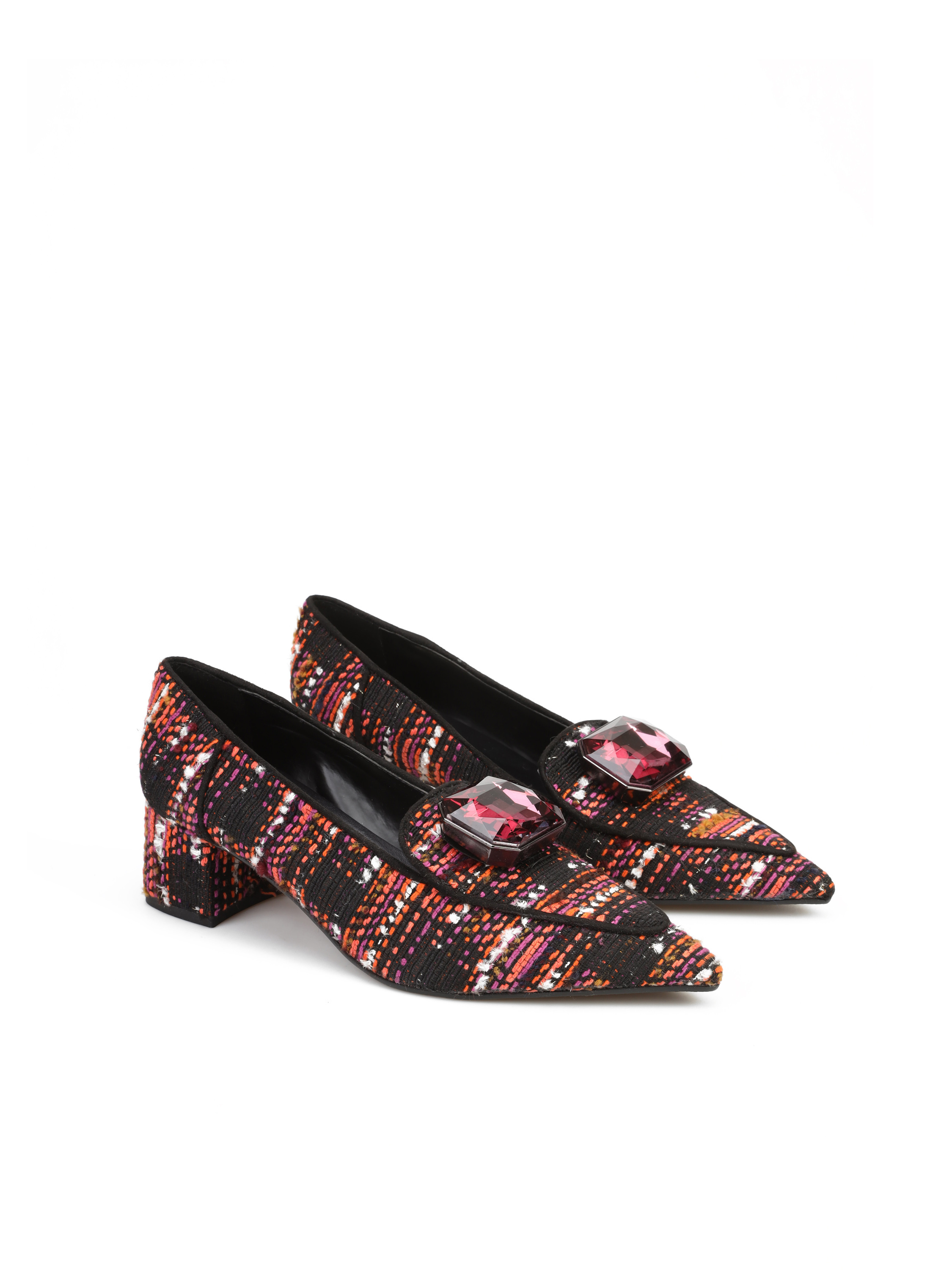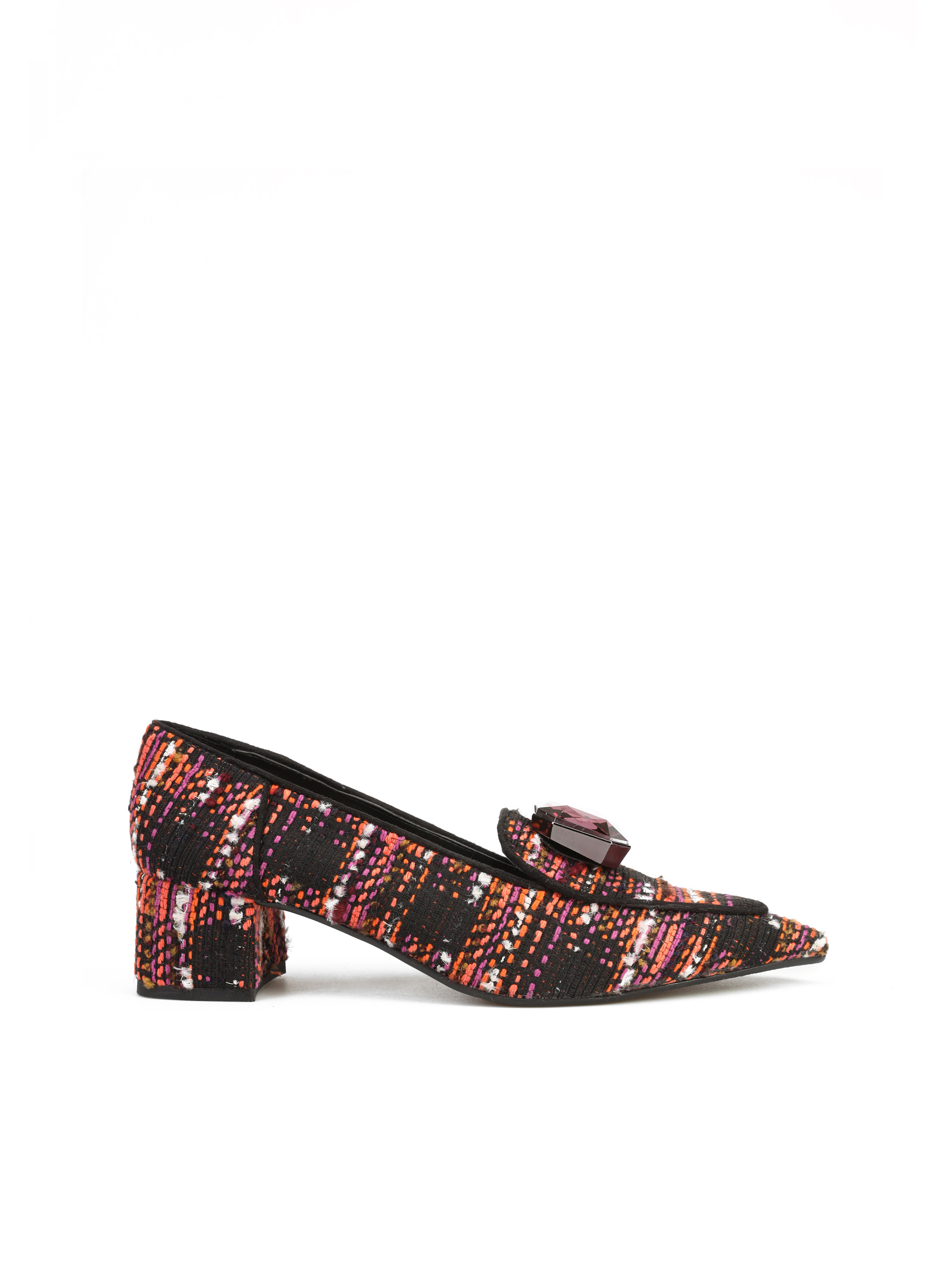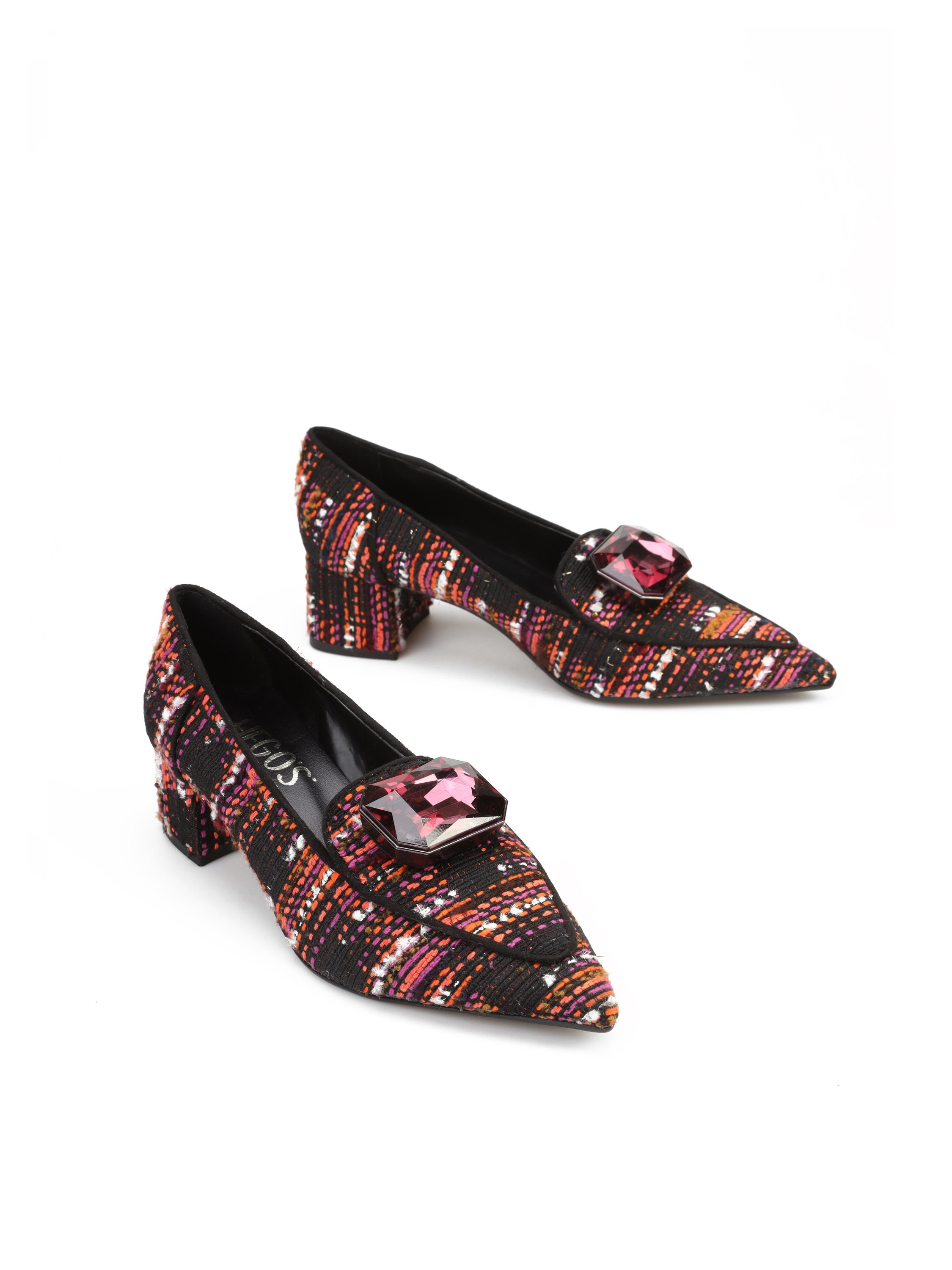 Czółenka na słupku to model dla kobiet łączących wygodę i aktualne Trendy. Cholewka z tkaniny w modnym połączeniu kolorystycznym ozdobiona została broszką z kamieniem. Model w szpic na niskim obcasie na słupku. Posiada skórzaną wkładkę.