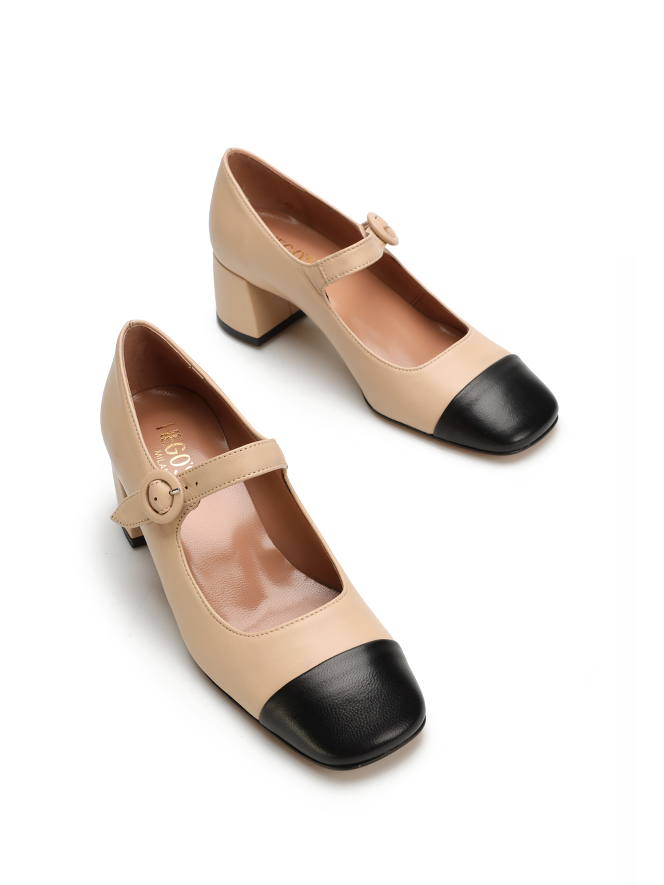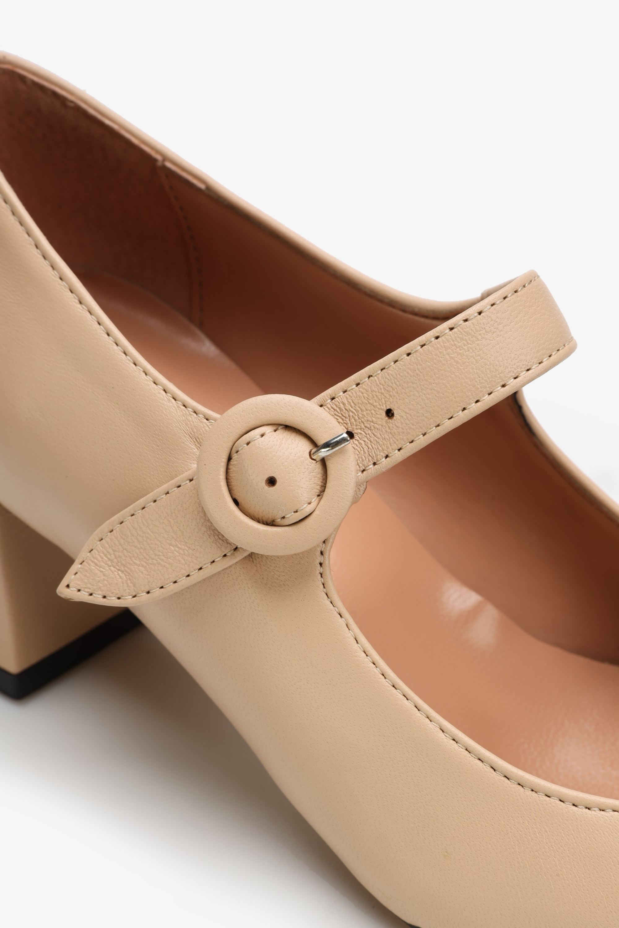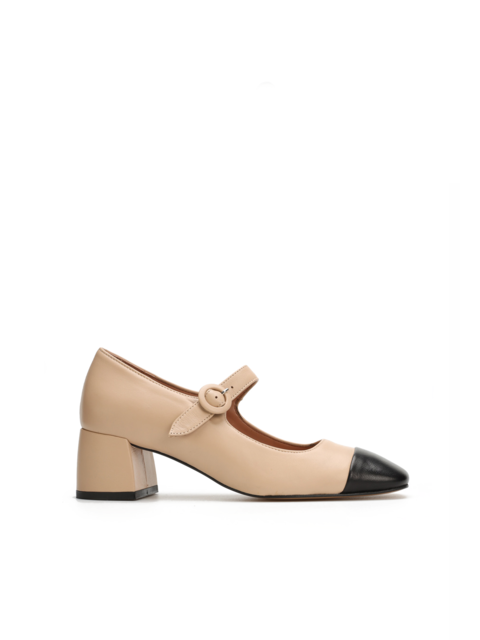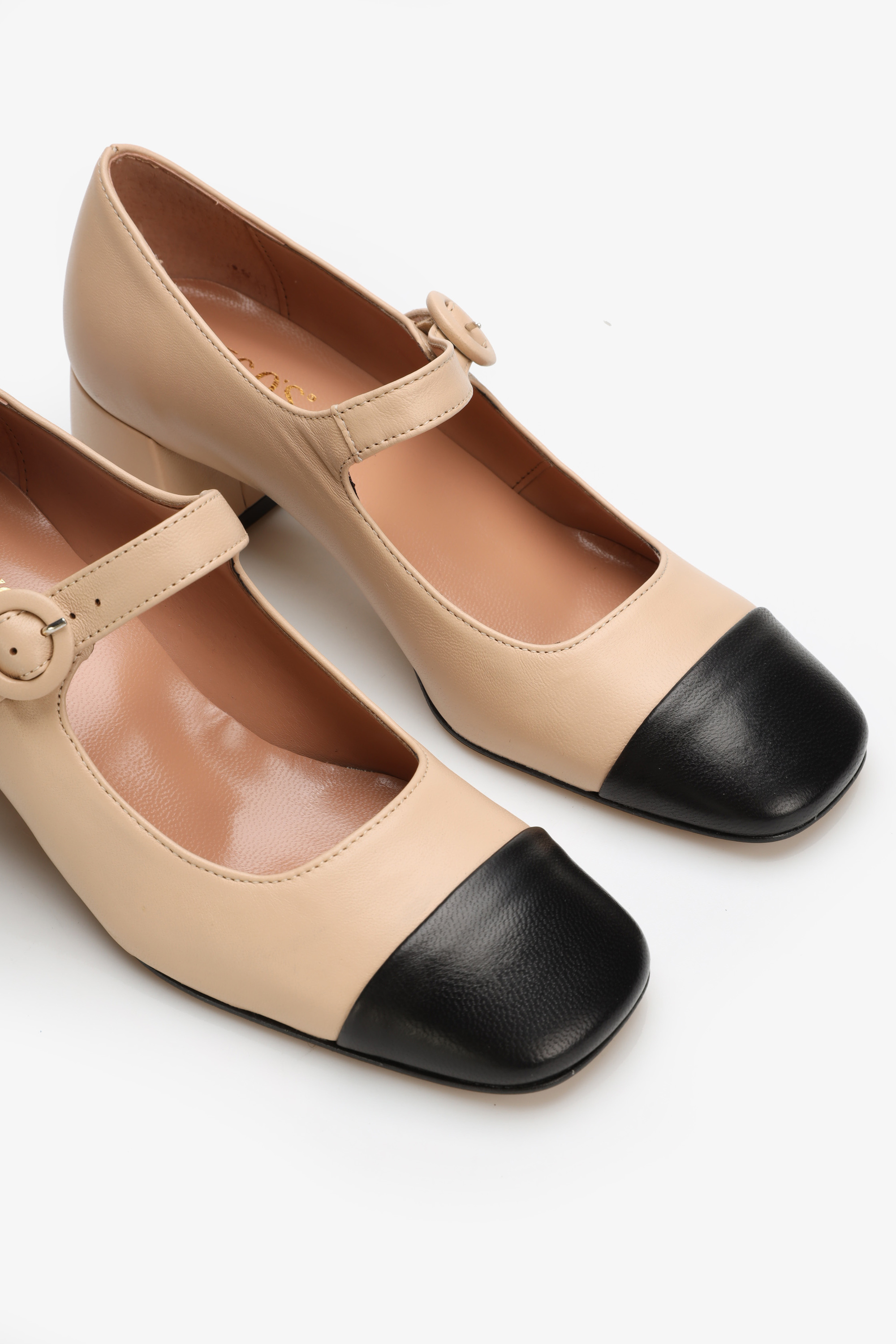 Wykonane z najwyższej jakości ,włoskiej skóry nappa,posiadają ponadczasowy krój wpisujący się w najnowsze trendy.Zapinane na wąski paseczek z kwadratowym ,czarnym noskiem w stylu Chanel.Wygodny,niewysoki obcas sprawdzi się nawet podczas wielogodzinnego użytkowania.