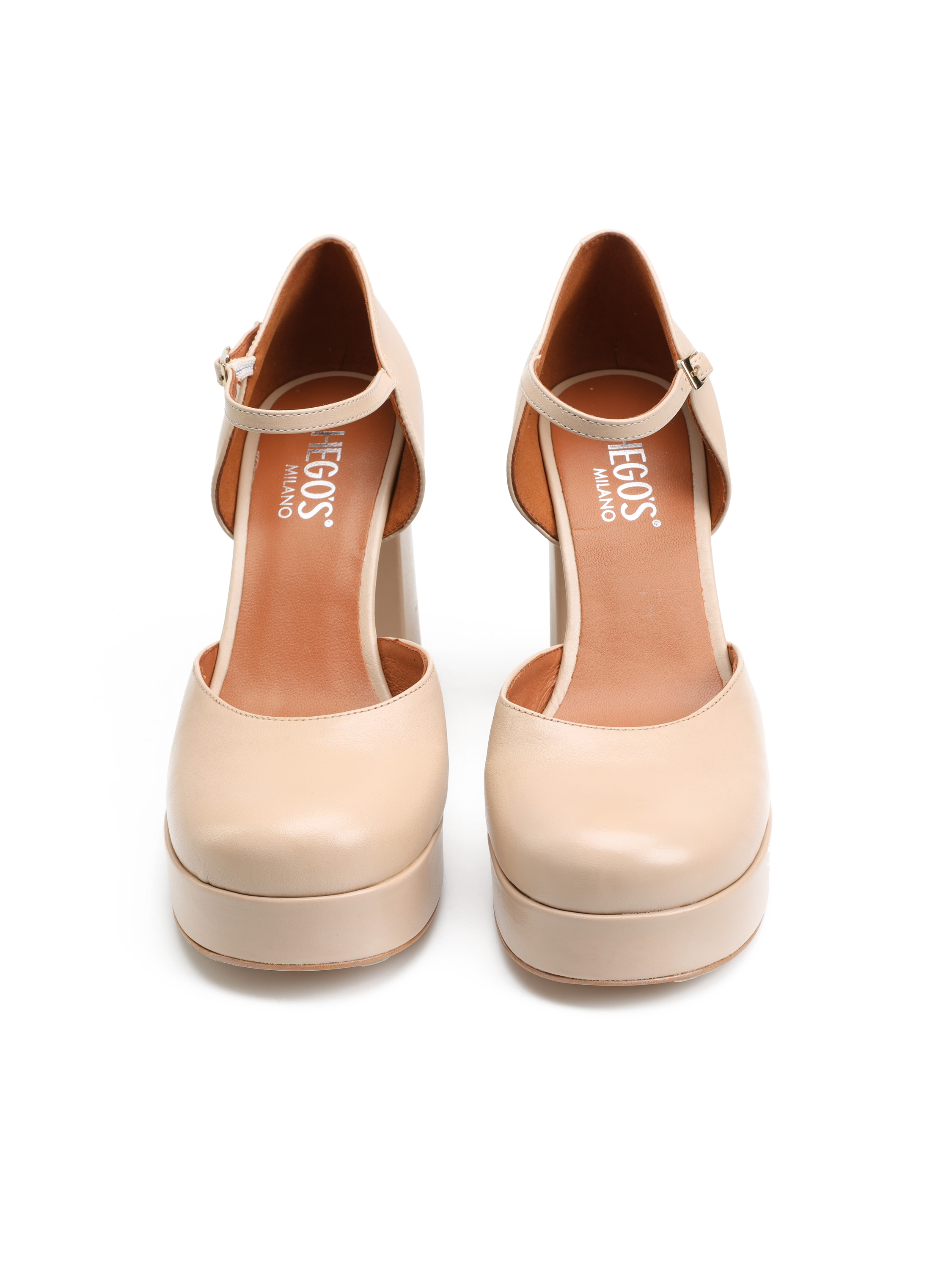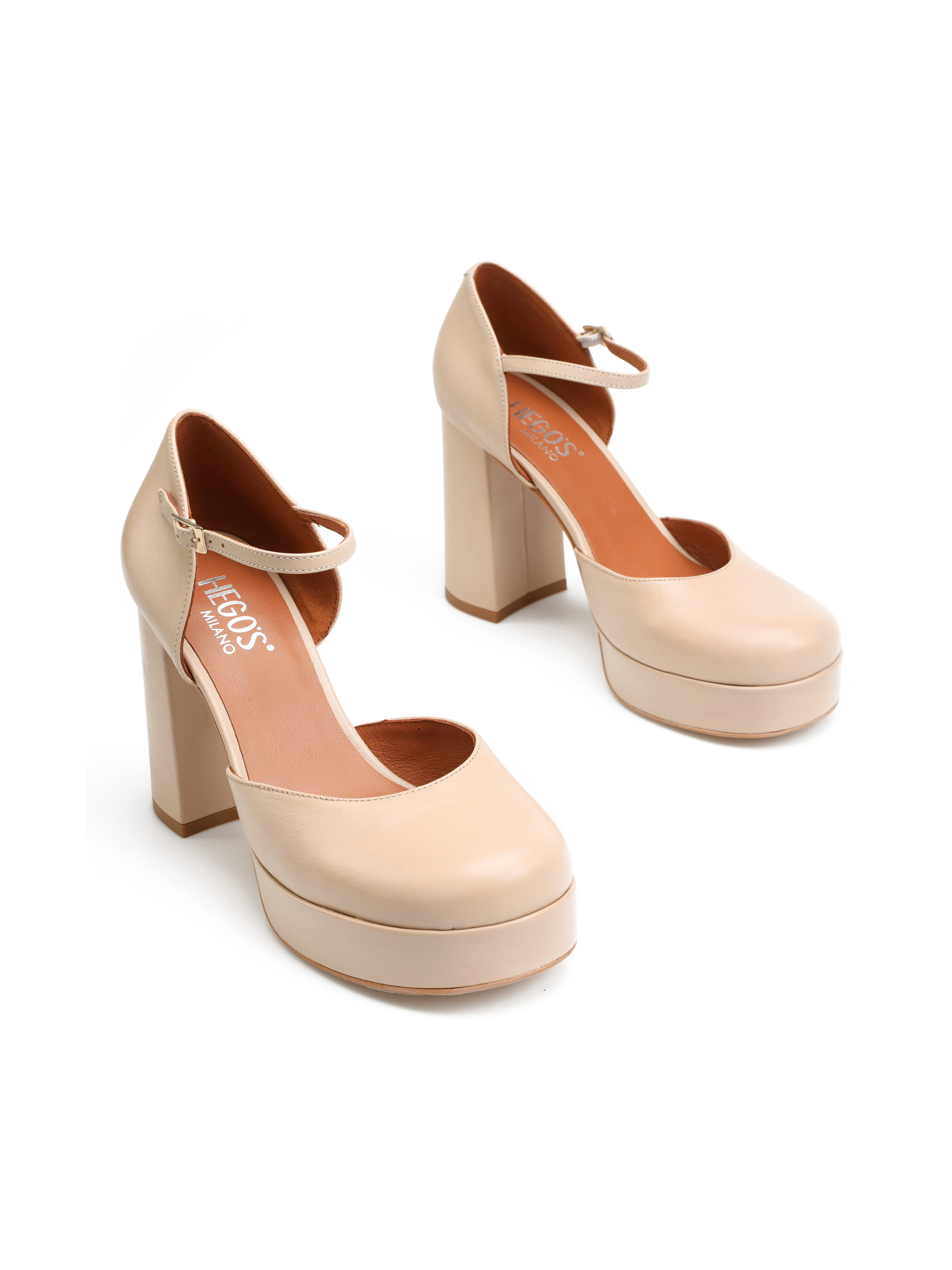 Czółenka w stylu Mary Jane w beżowym kolorze w całości wykonane są z naturalnej skóry Nappa. Najmodniejsza w tym sezonie wysoka platforma i stabilny obcas na słupku to fason zaprojektowany przez włoskich projektantów HEGO'S Milano. Delikatny paseczek zapiany wokół kostki odpowiada za stabilny krok. Czółenka HEGO'S Milano stworzone zostały z myślą o kobietach , które w stylizacjach stawiają na oryginalny design.