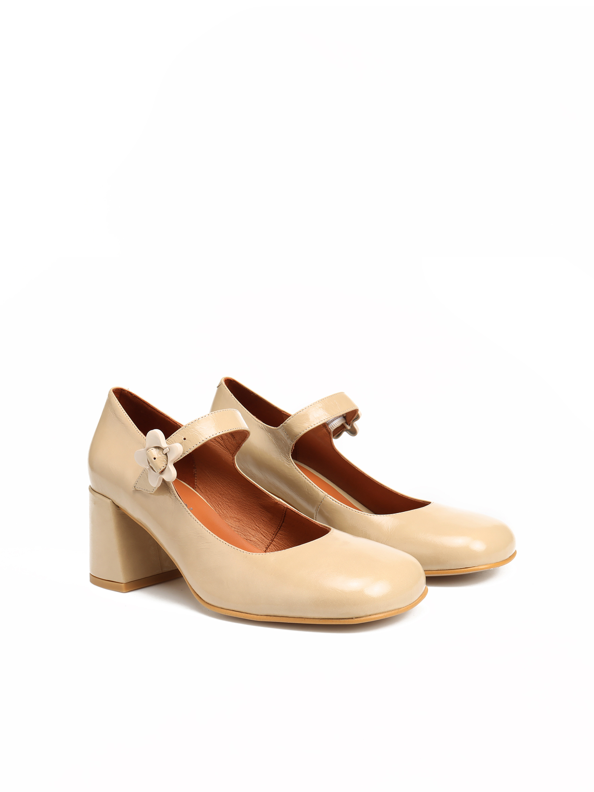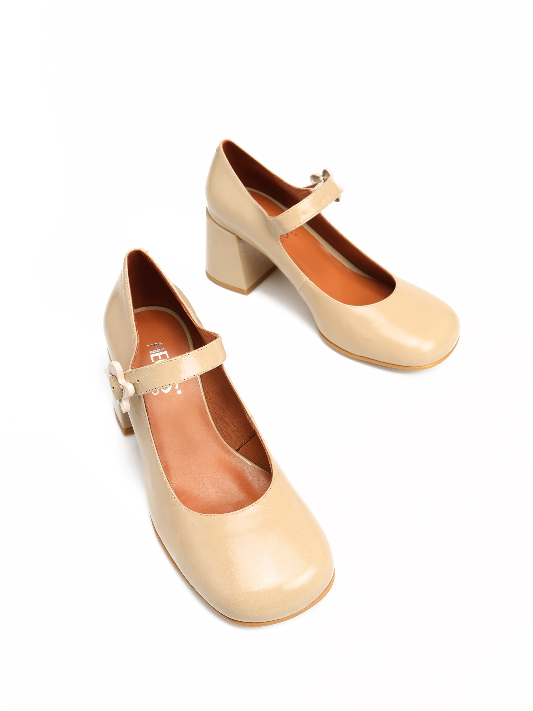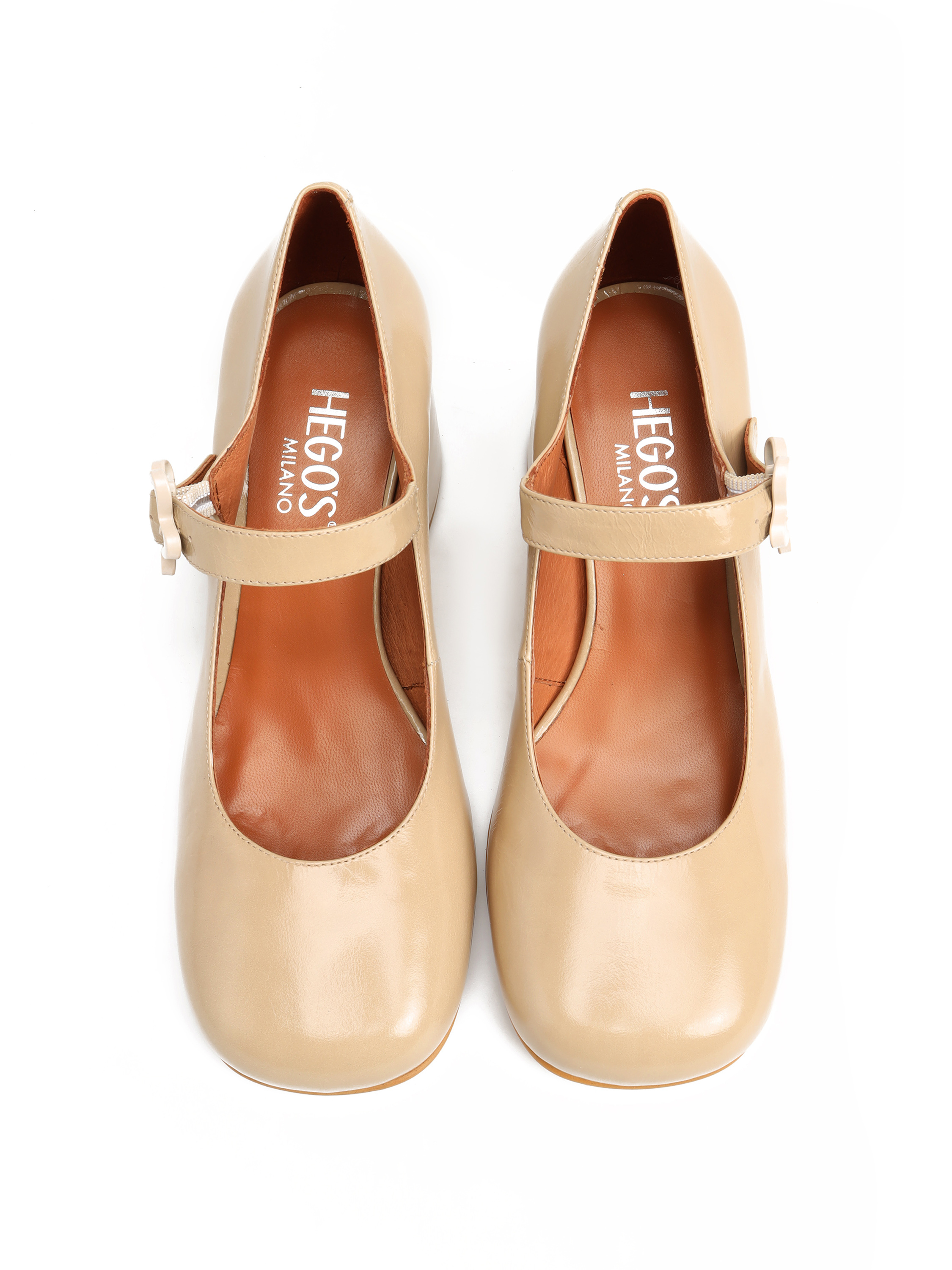 Czółenka na słupku HEGO'S Milano to gorący Trend sezonu. Fason w stylu Mary Jane. Cholewka w kolorze taupe wykonana jest z lakierowanej skóry. Posiada regulowany pasek zapinany na sprzączkę. Ozdobiony został stylowym kwiatkiem w białym kolorze. Czółenka HEGO'S Milano stworzone zostały z myślą o kobietach, które w stylizacjach stawiają na oryginalny design.