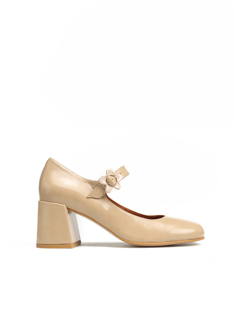 Czółenka na słupku HEGO'S Milano to gorący Trend sezonu. Fason w stylu Mary Jane. Cholewka w kolorze taupe wykonana jest z lakierowanej skóry. Posiada regulowany pasek zapinany na sprzączkę. Ozdobiony został stylowym kwiatkiem w białym kolorze. Czółenka HEGO'S Milano stworzone zostały z myślą o kobietach, które w stylizacjach stawiają na oryginalny design.