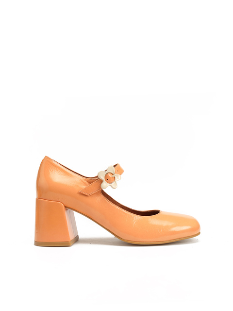 Czółenka na słupku HEGO'S Milano wykonane są z lakierowanej skóry. Fason w stylu Mary Jane. Cholewka w najmodniejszym kolorze sezonu posiada regulowany pasek zapinany na sprzączkę. Ozdobiony został stylowym kwiatkiem w białym kolorze. Czółenka HEGO'S Milano stworzone zostały z myślą o kobietach, które w stylizacjach stawiają na oryginalny design.