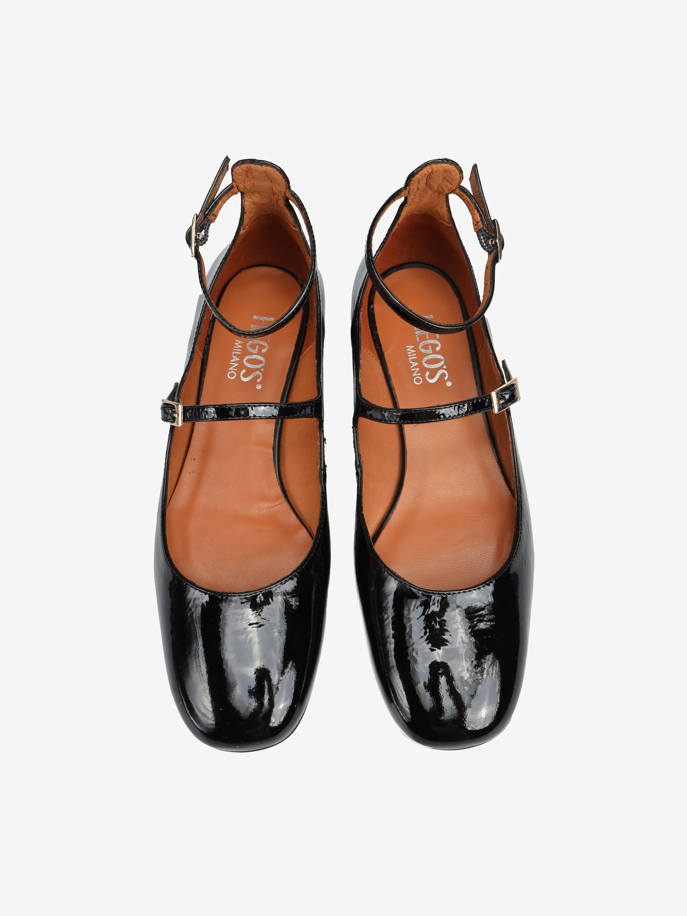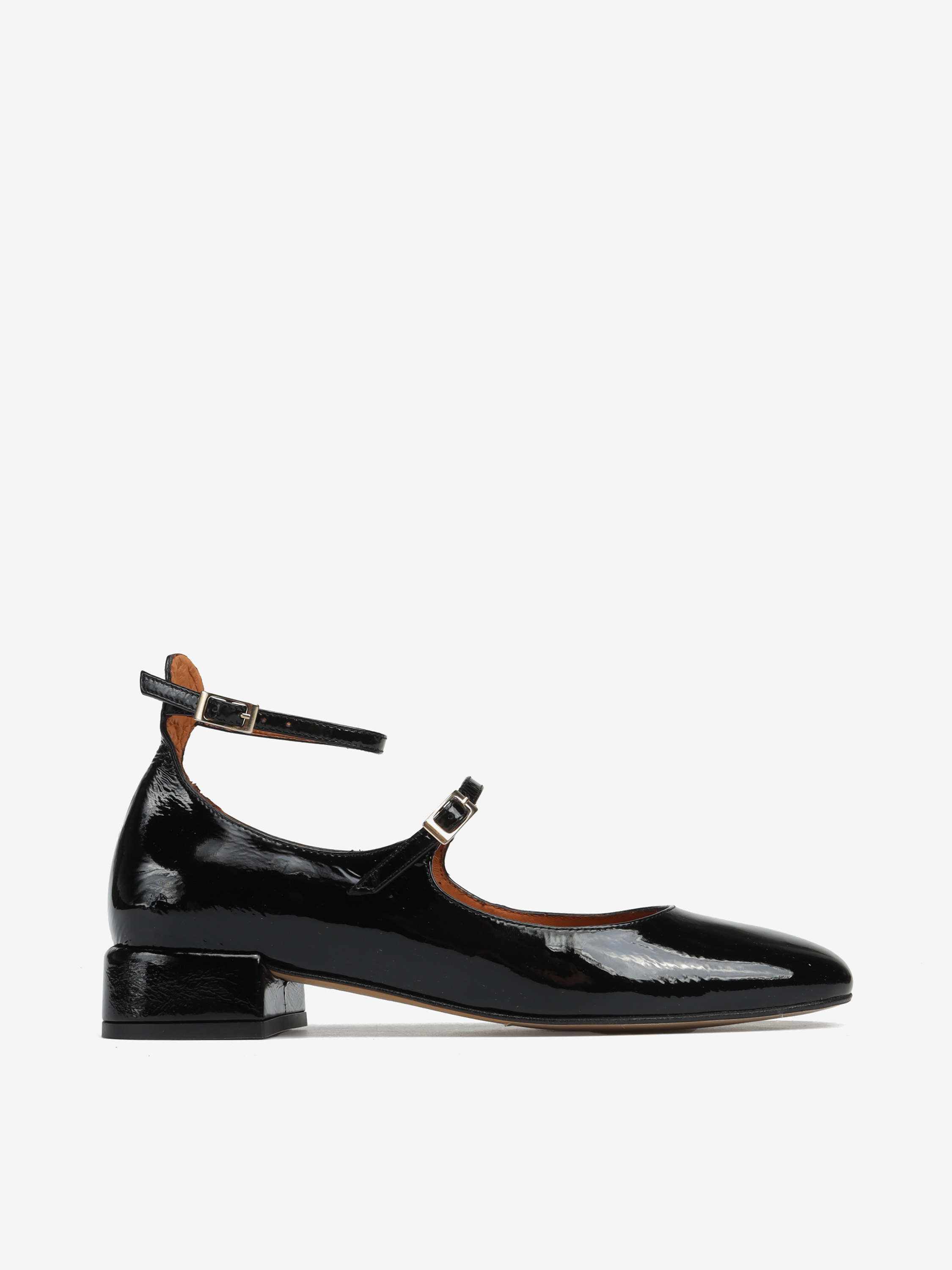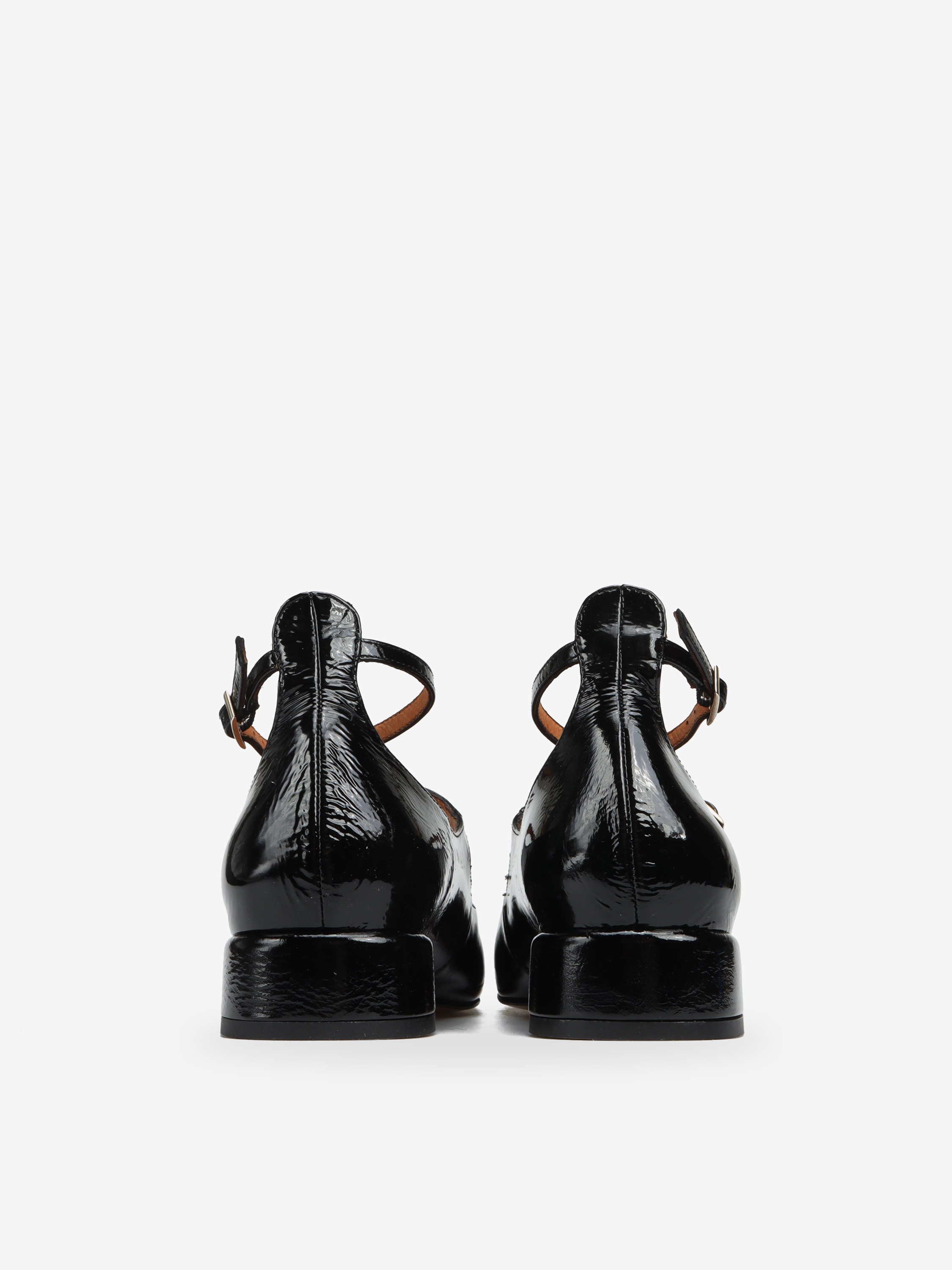 Mary jane wykonane ze skóry lakierowanej w czarnym kolorze na 3 cm obcasie.
