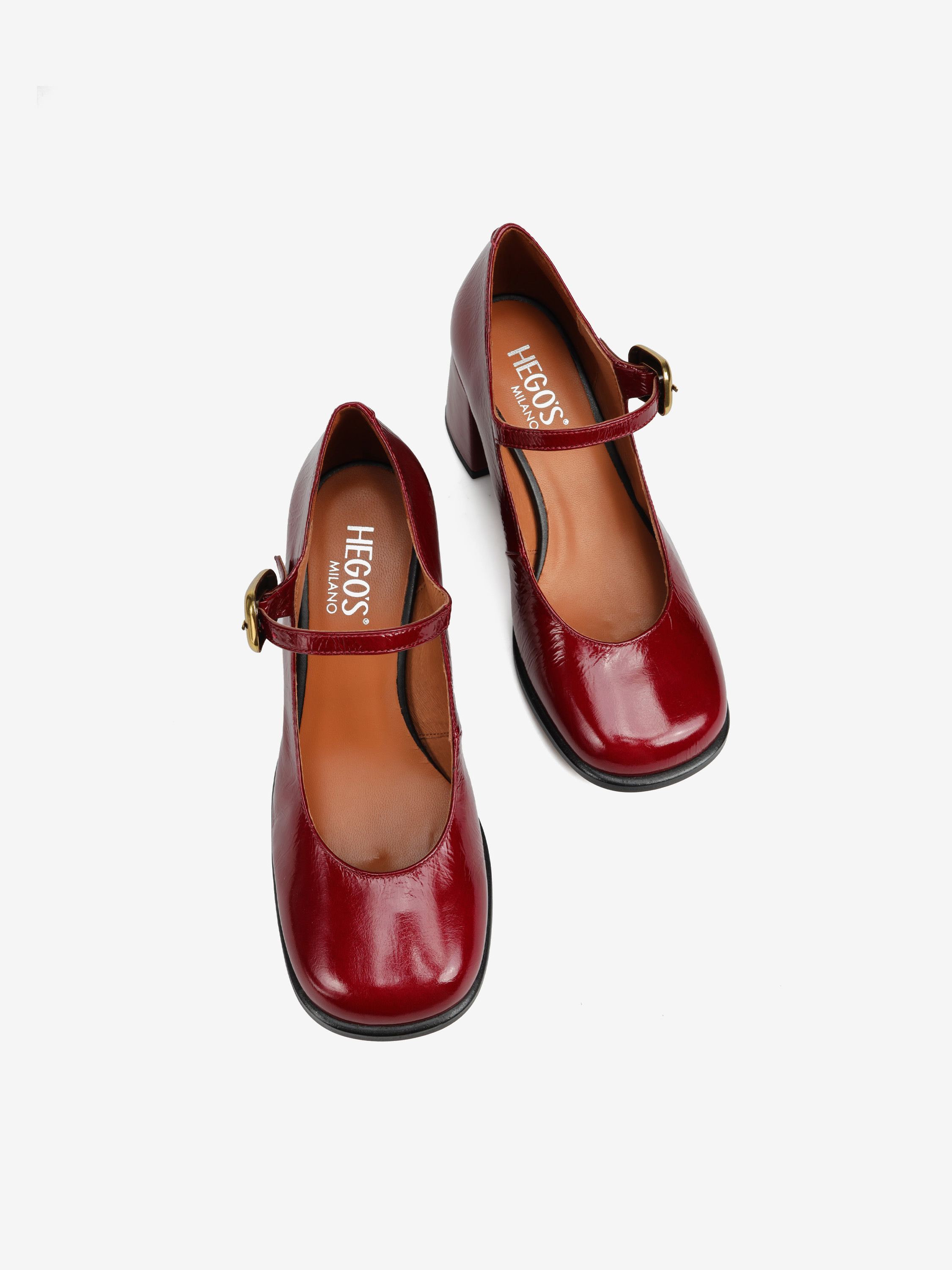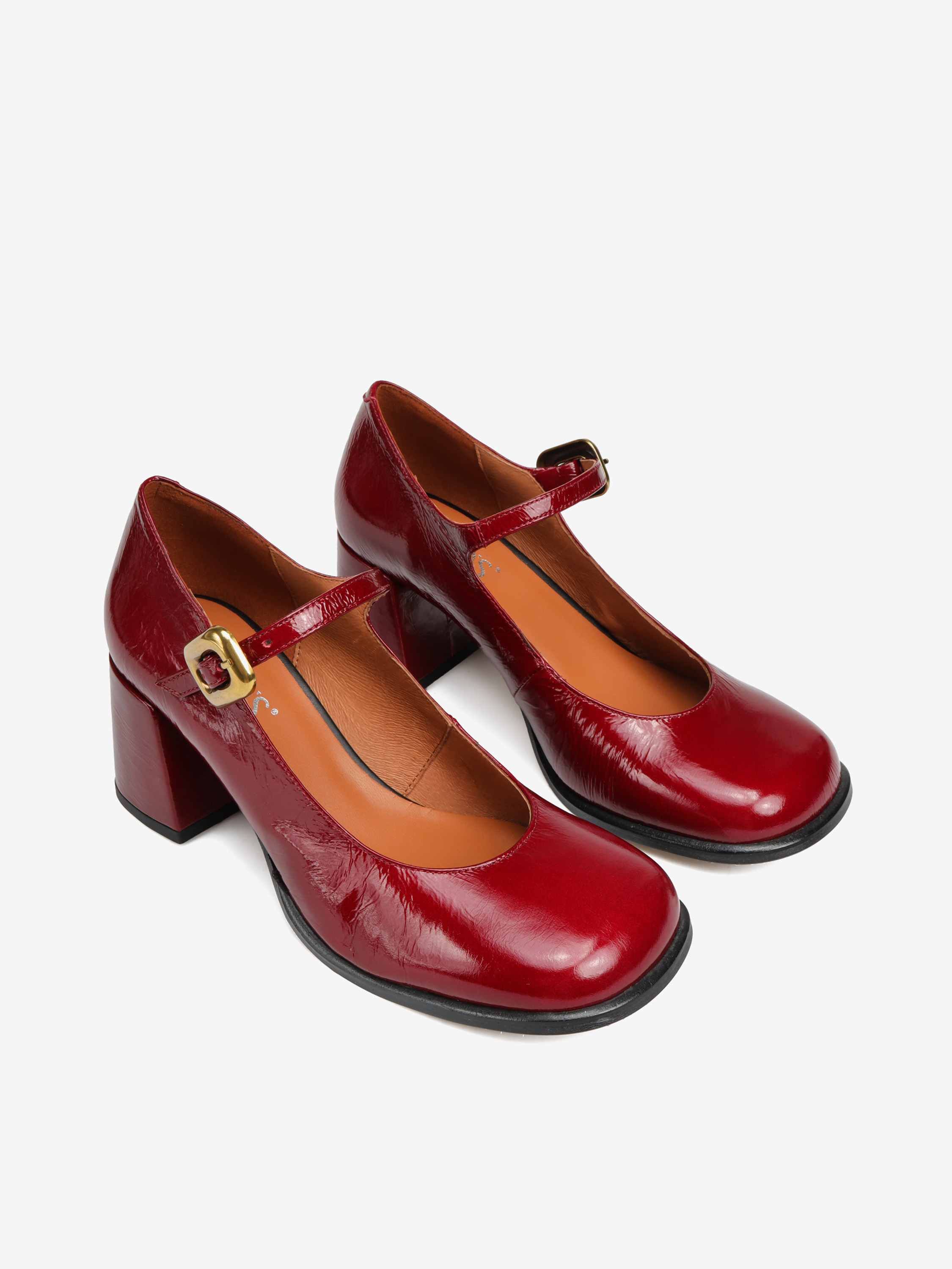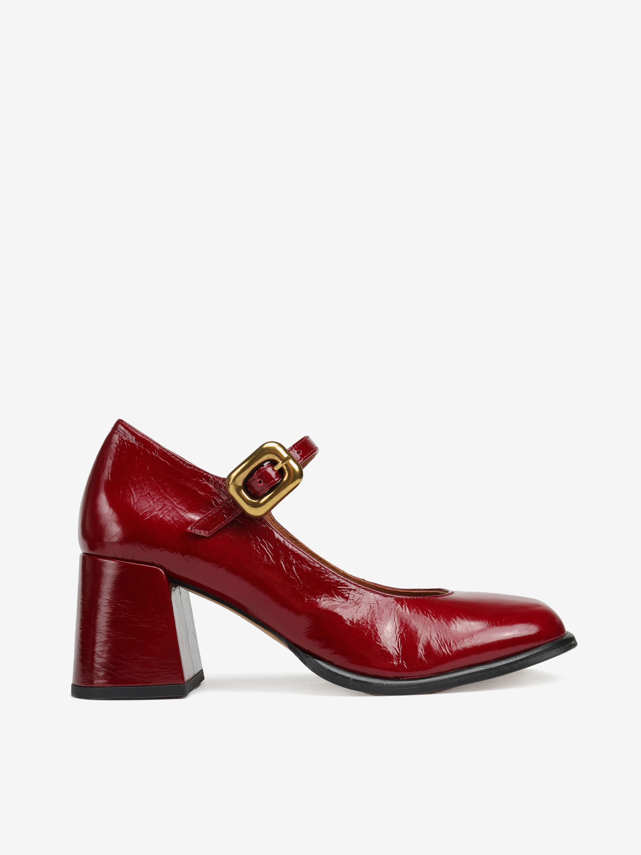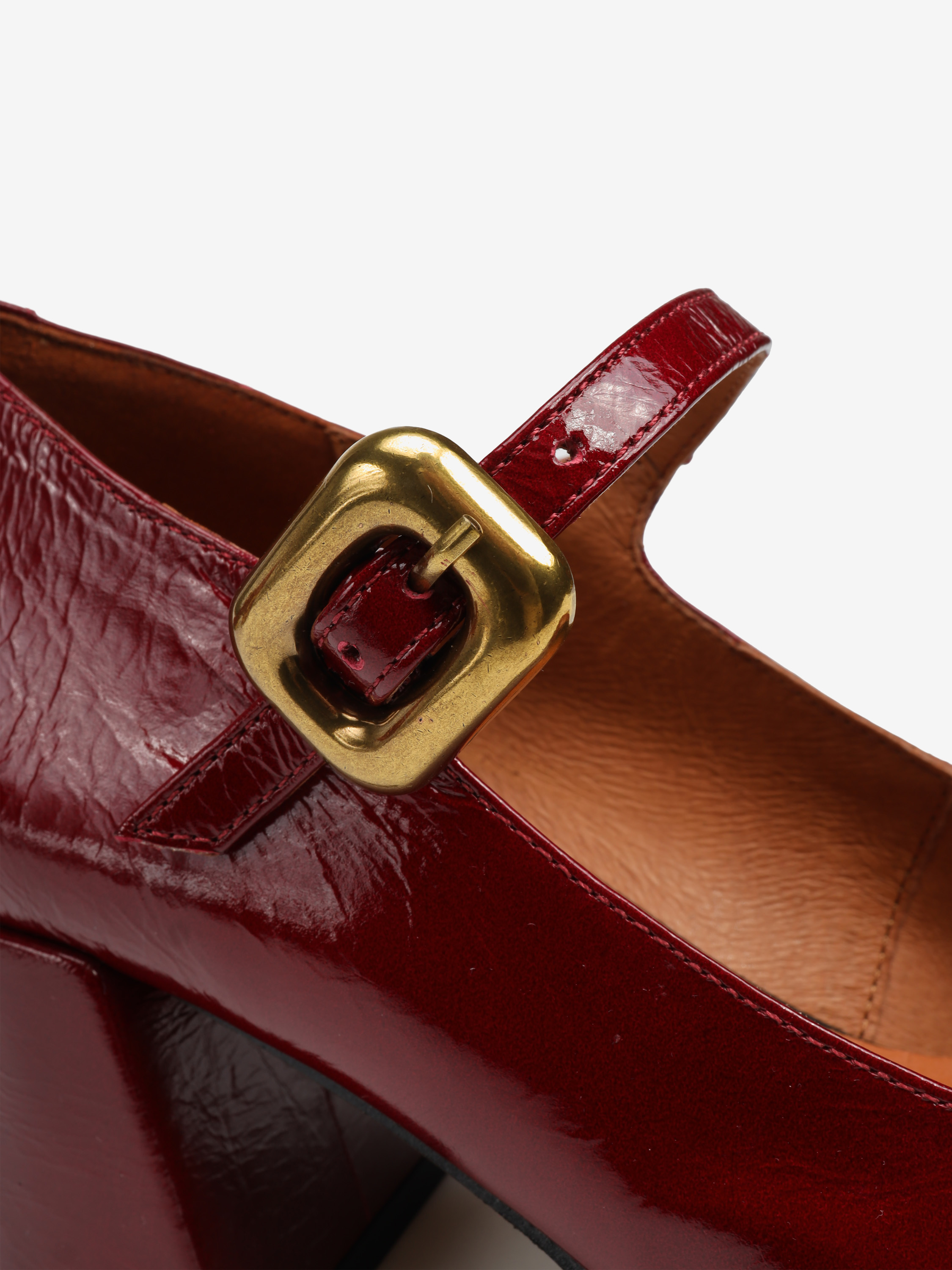 Model mary jane wykonany z włoskiej skóry lakierowanej w wydaniu rubinowym.