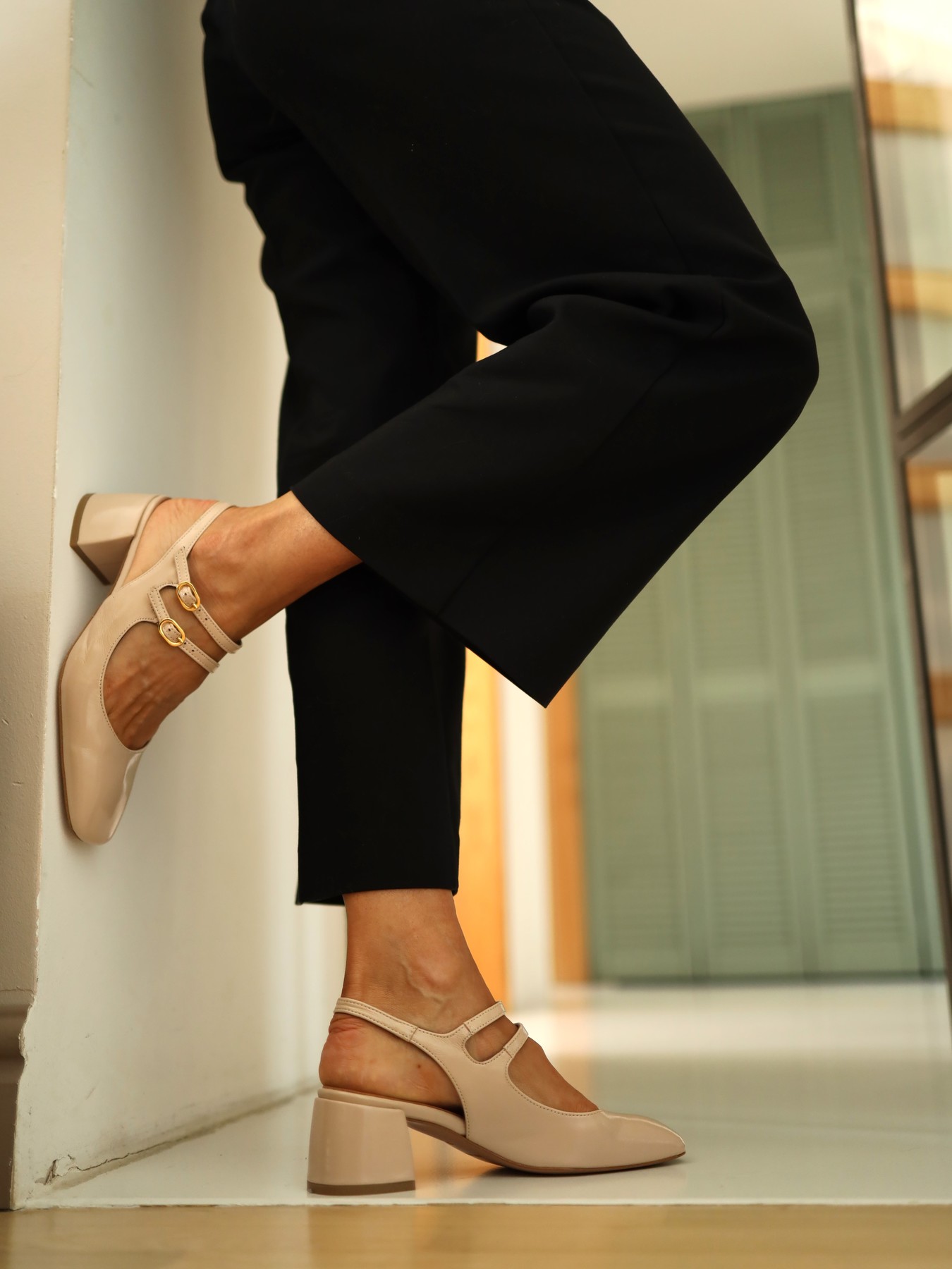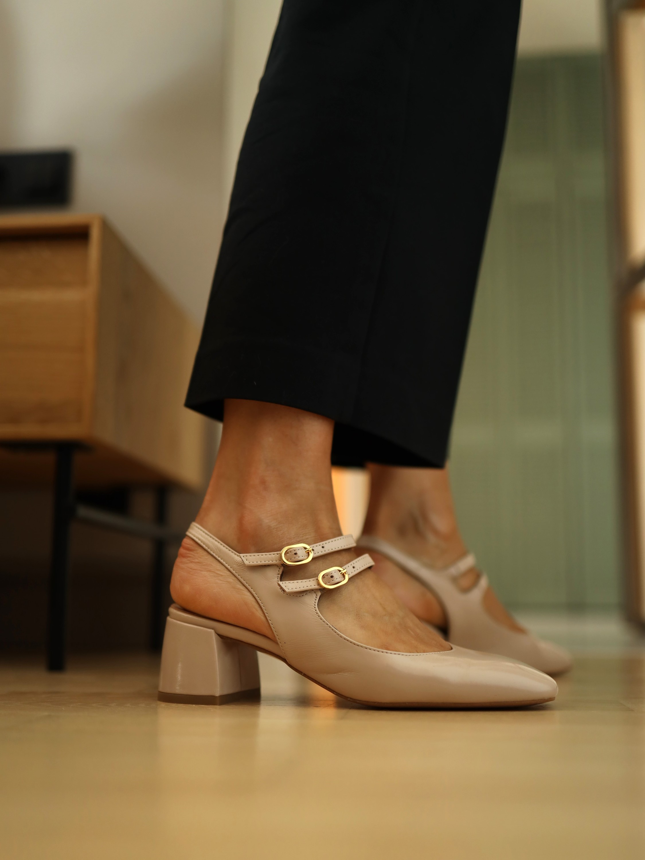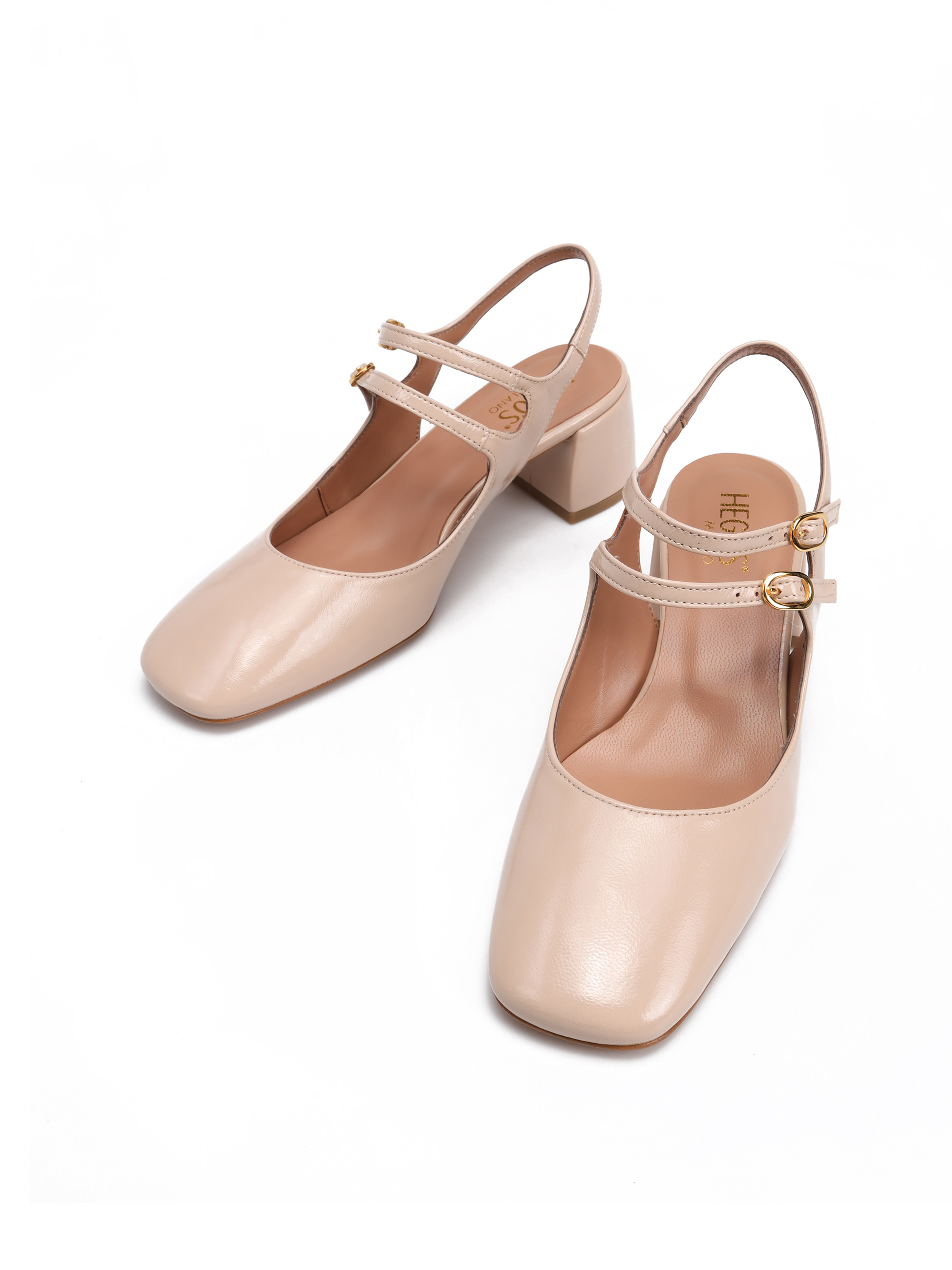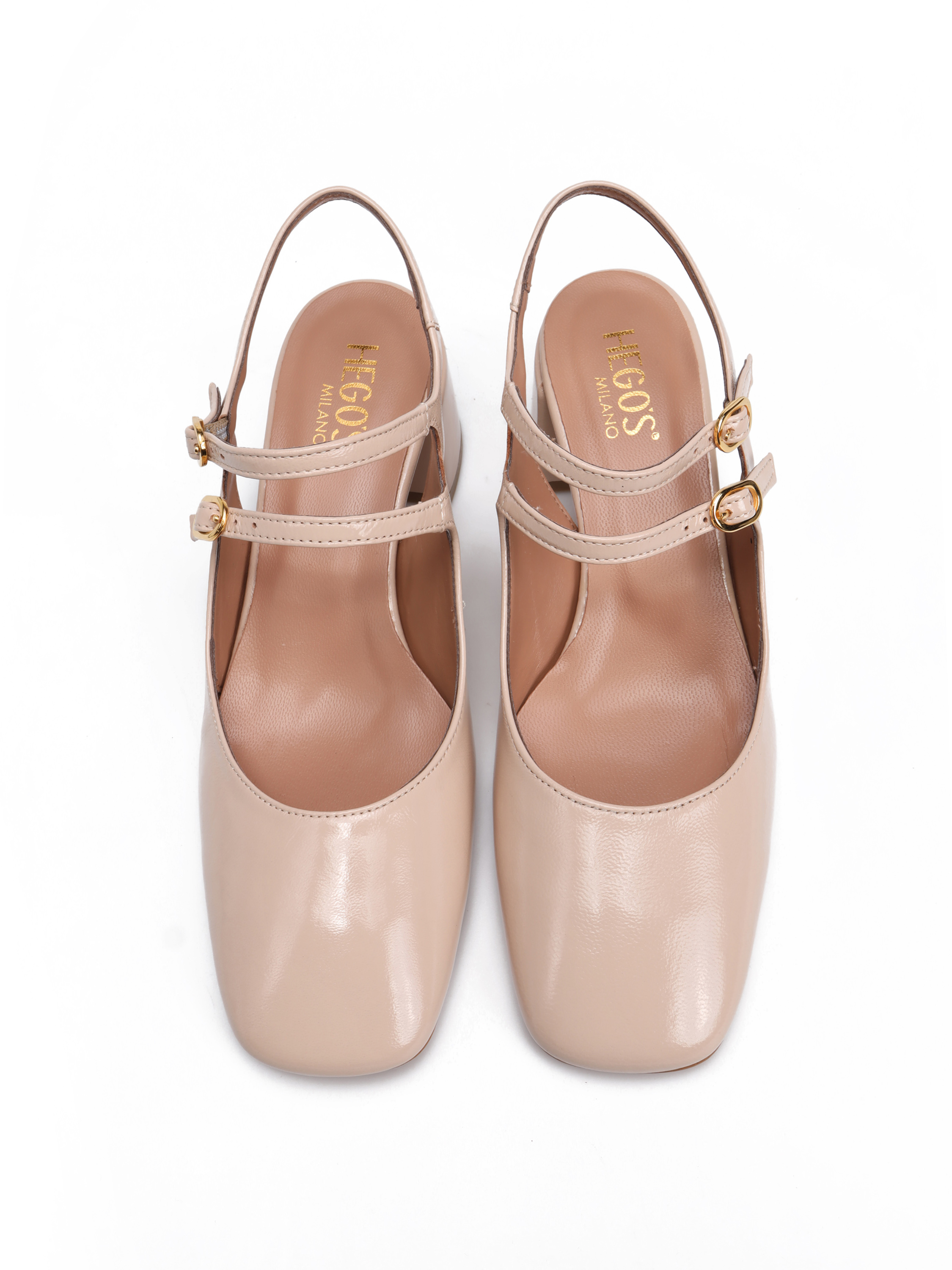 BEŻOWE CZÓŁENKA NA NISKIM OBCASIE HEGO'S Milano