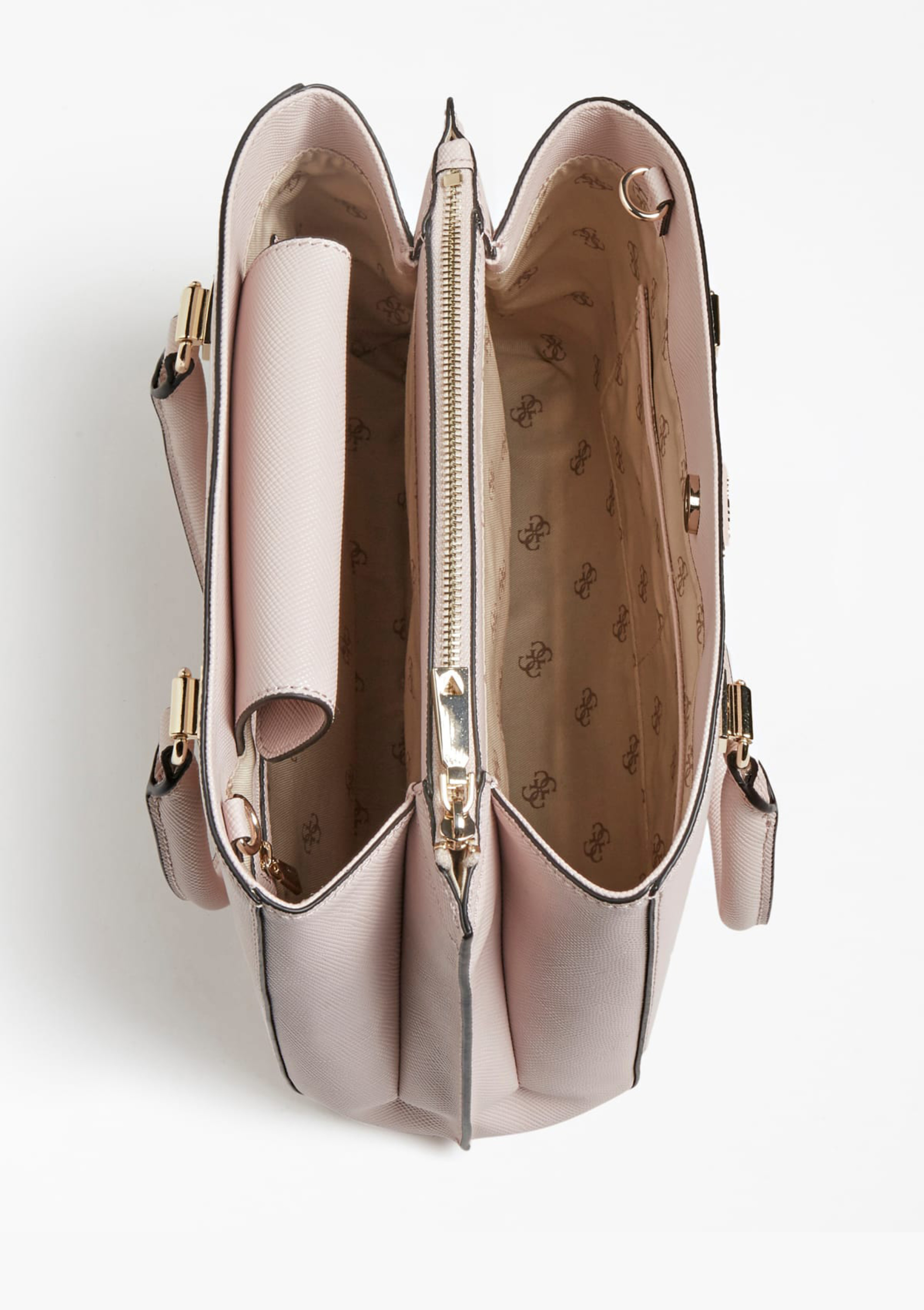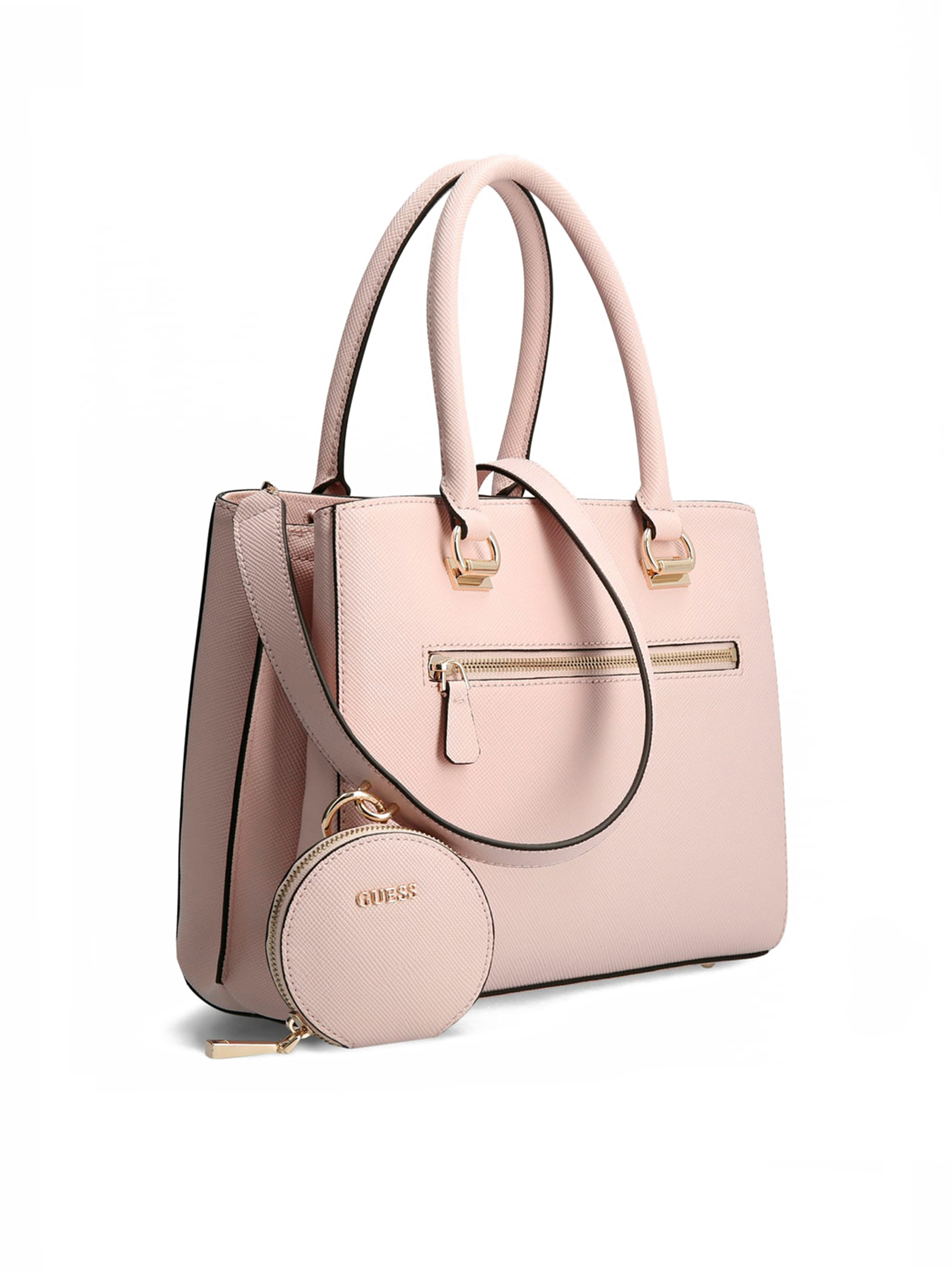 Dwukomorowa torebka GUESS zauroczy każdą kobietę, która ceni sobie funkcjonalność oraz niebanalny wygląd. Wyposażona w dwie komory oraz dużą zapinaną kieszeń sprawi, że zawartość Twojej torebki zawsze będzie bezpieczna. Neutralny kolor w połączeniu z delikatnym logotypem marki sprawia, że można się w niej zakochać na zabój! Długie uszy torebki pozwalają na użytek jako handbag, dołączony pasek pozwoli na noszenie jej na ramieniu. Niezwykle przydatna oraz zachwycająca!