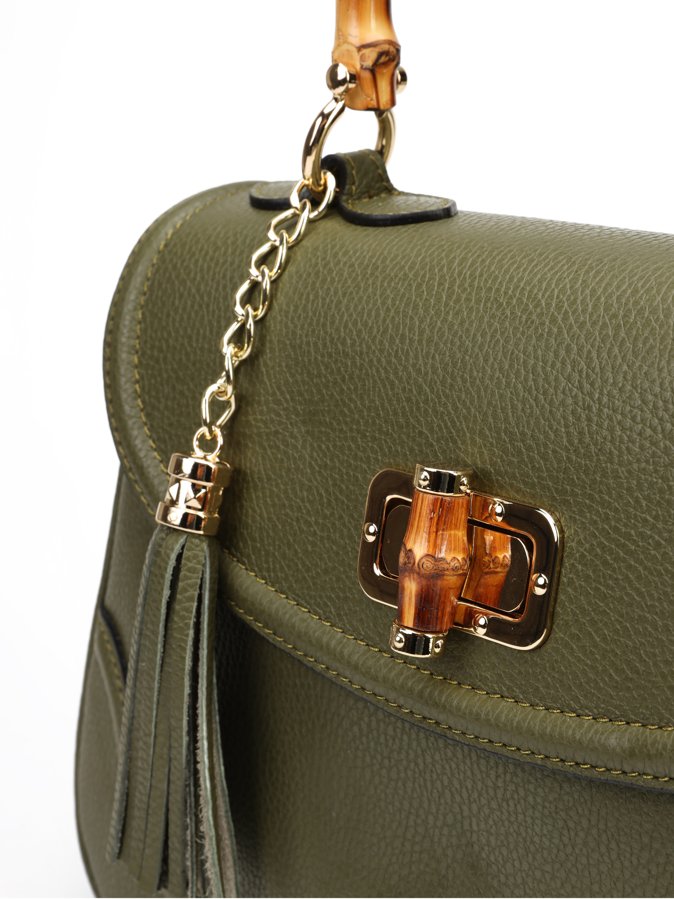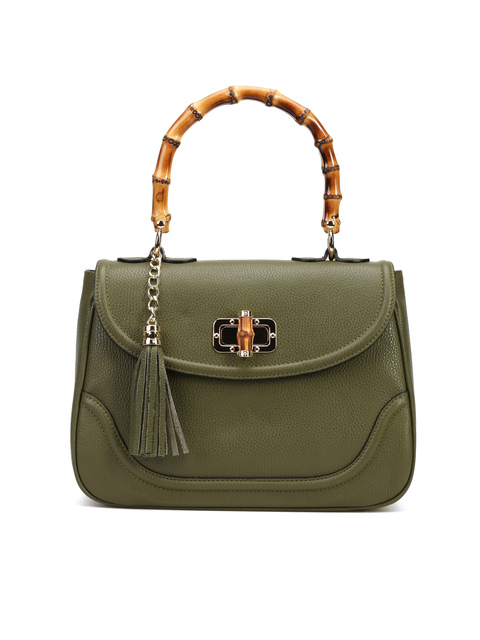 Torebka damska z kolekcji HEGO'S Milano w całości wykonana jest z włoskiej naturalnej skóry. Wykończona została złotymi detalami oraz bambusową, stylową rączką. Zapinana na zatrzask. Środek torebki pokryty jest materiałem. Posiada małą kieszonkę zapinaną na zamek błyskawiczny. Cienki, regulowany pasek na ramię pozwala dopasować ją do swoich potrzeb.